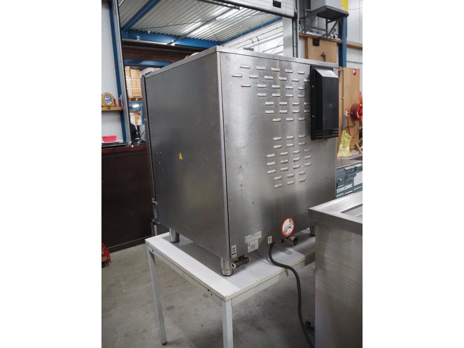 Metos combi steamer, type: ICEM071E, serial number: LA020169810, year of construction: 2021, 230-400 V, 3 PH, 50 Hz, 12.5 kW, 8 floors, floor dimensions: (8x) 540 mm x 420 mm, total dimensions: 780 mm x 730 mm x 950 mm.