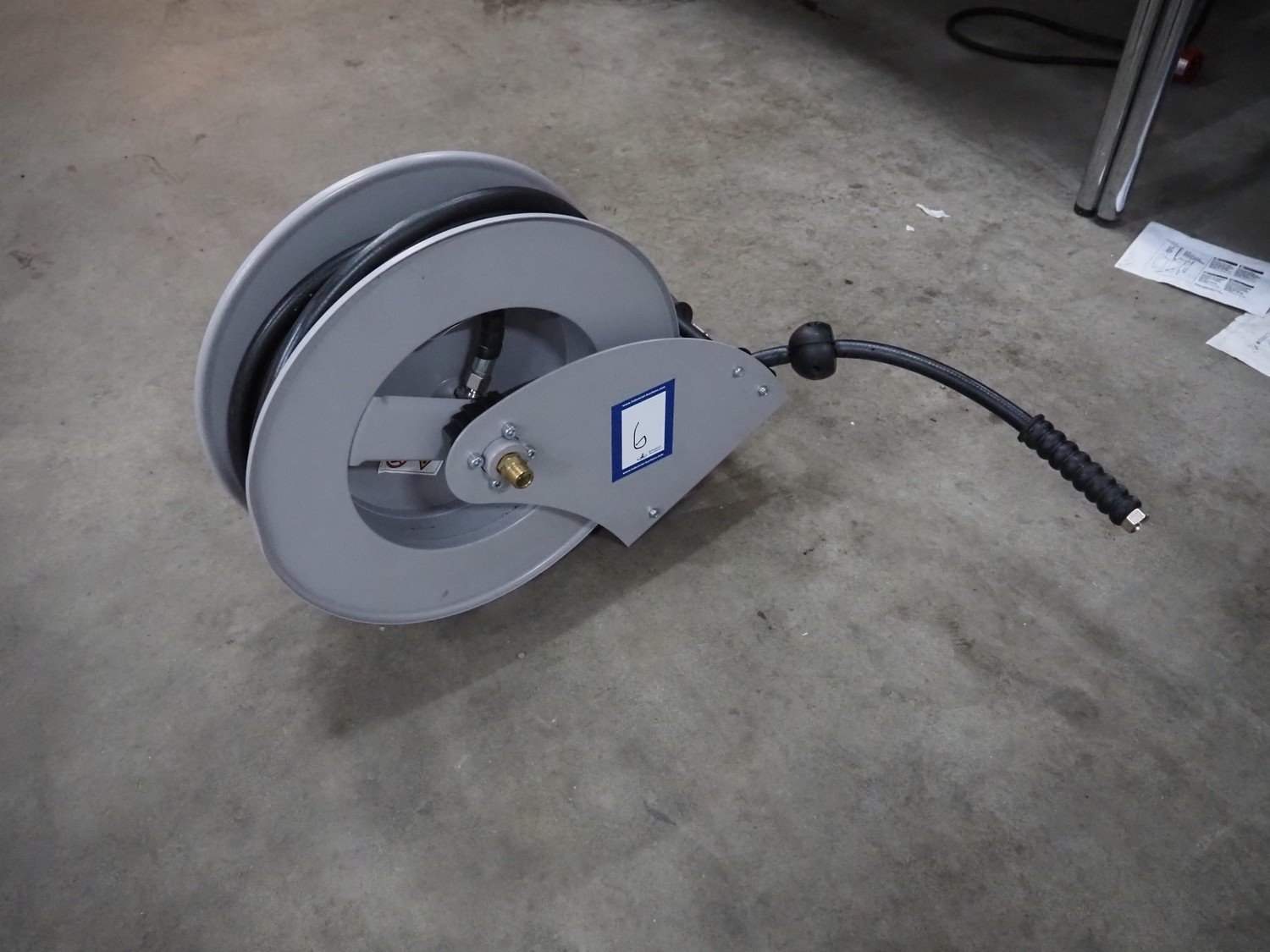 Saro hose reel with Nito pistol, dimensions: 470 mm x 490 mm x 180 mm. New with damage.