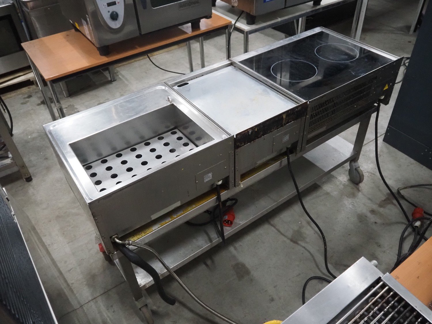 Metos cooking counter with induction plate and au bain-marie, dimensions: 1700 mm x 620 mm x 910 mm.