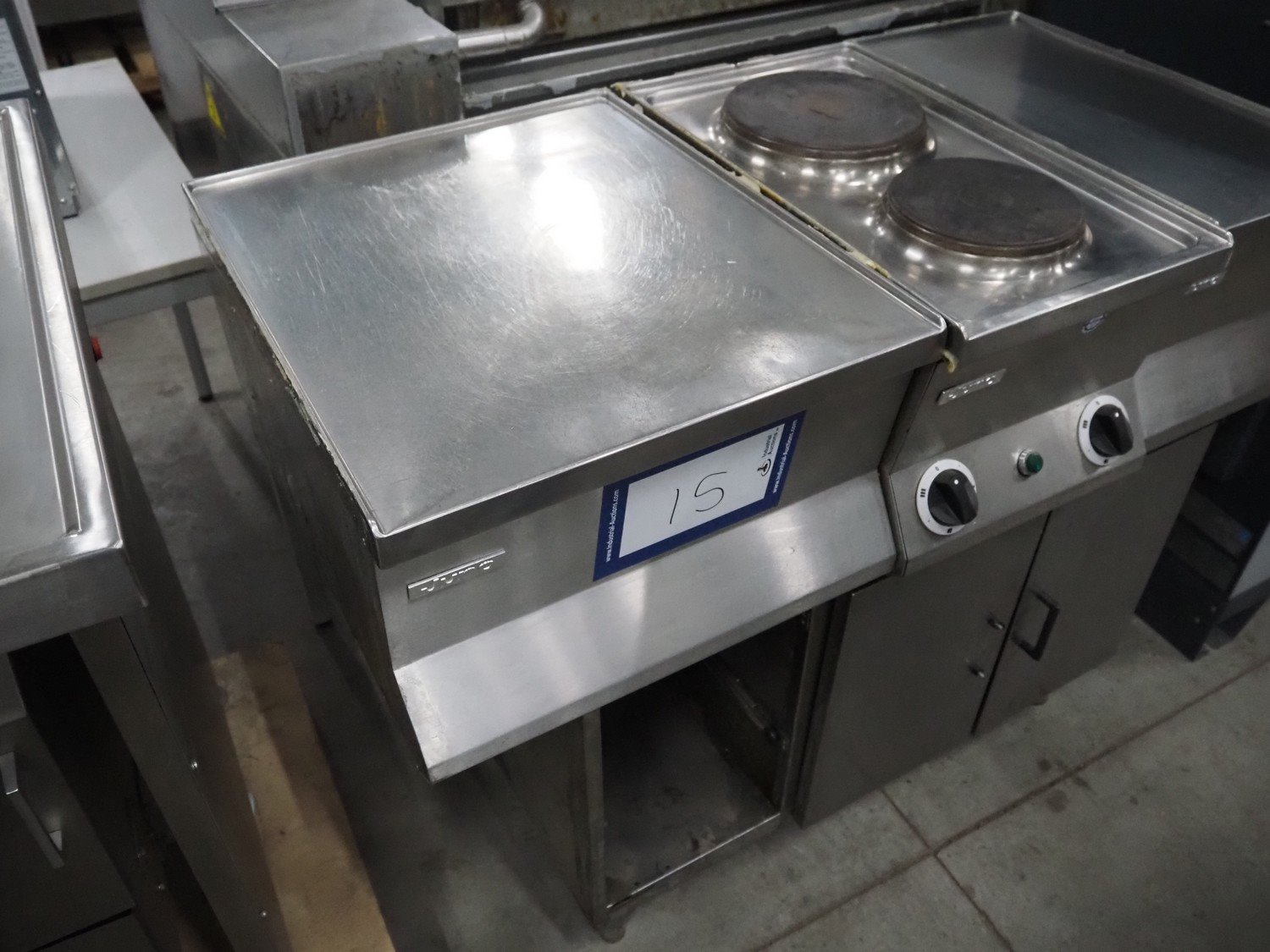 Juno Großküchen GmbH 2-pits stove, dimensions: 1180 mm x 600 mm x 940 mm.