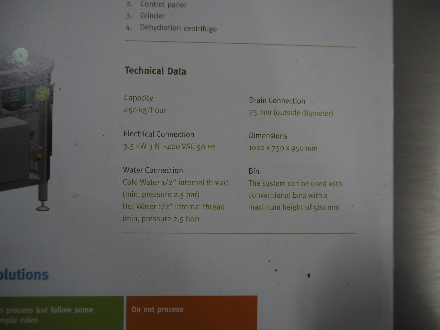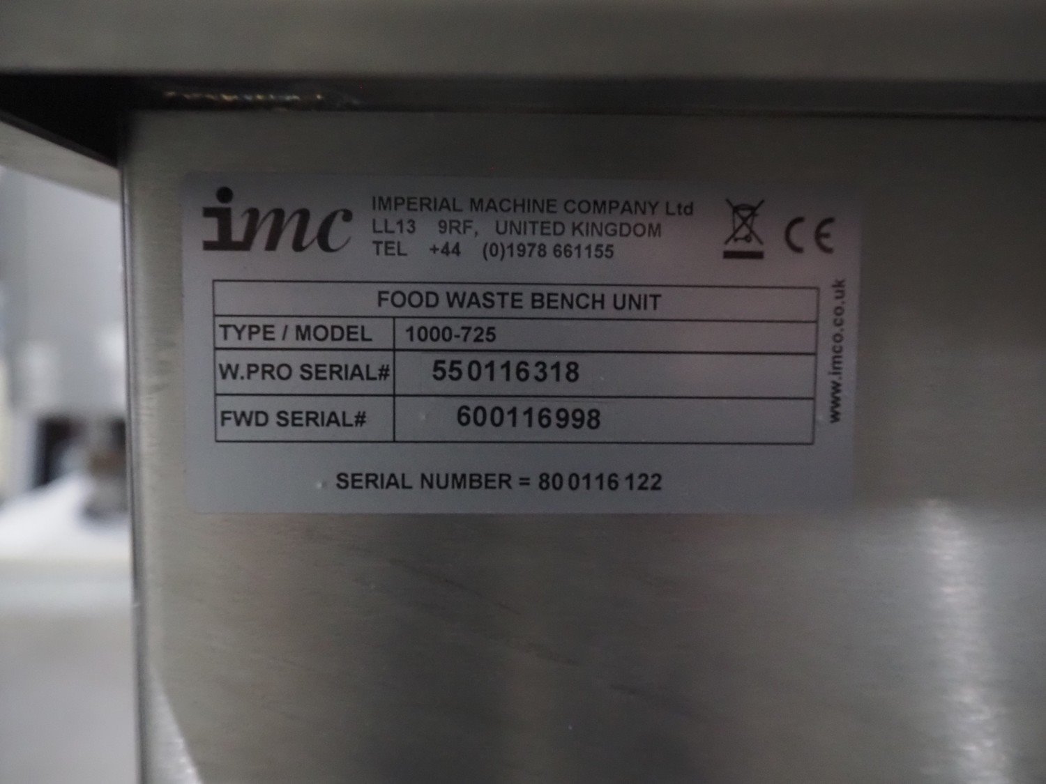 IMC food waste processor, dimensions: 700 mm x 1000 mm x 900 mm.
