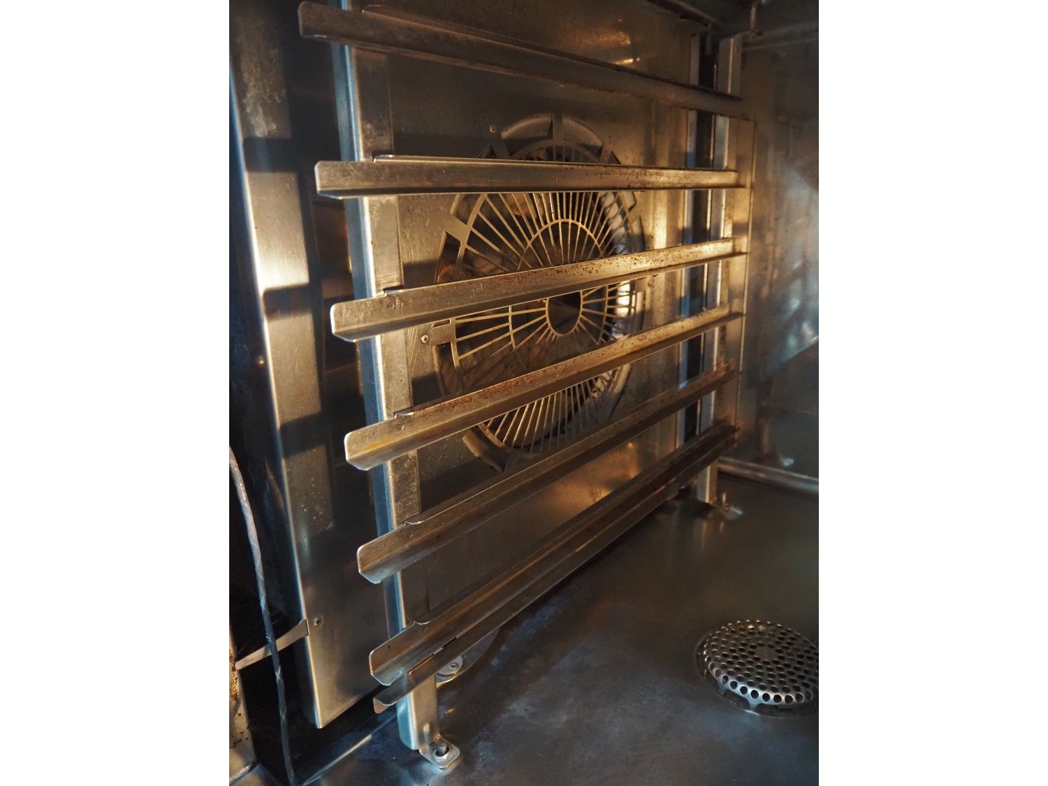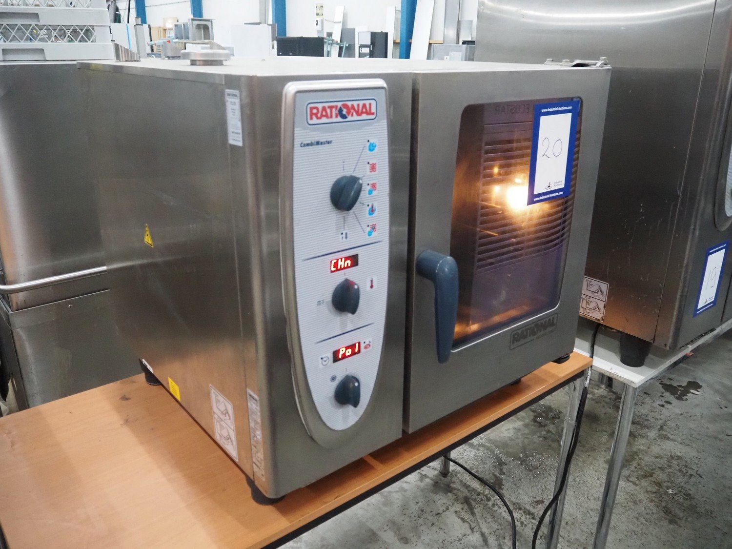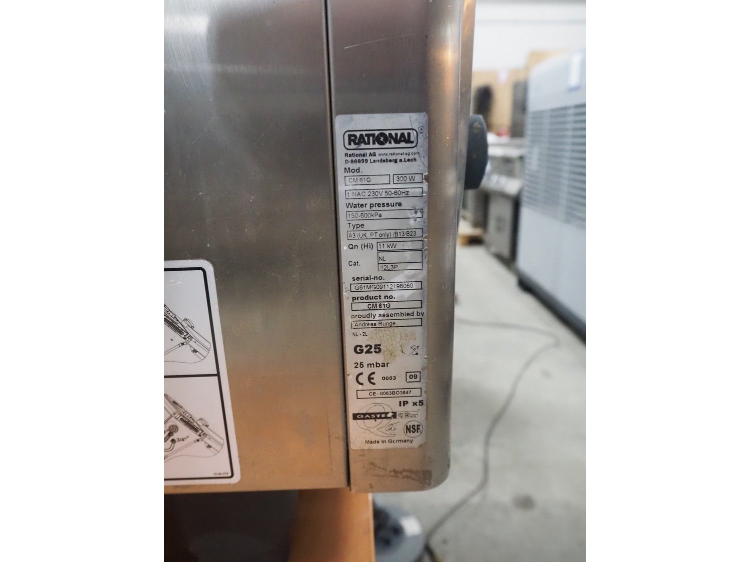Rational combi steamer, model: CM 61G, serial number: G61MG09112198060, year of construction: 2009, 230 V, 3 Ph, 50 Hz, 300 W, gas heated, 6 floors, dimensions floors: (6x) 540 mm x 330 mm, total dimensions: 850 mm x 800 mm x 800 mm.
