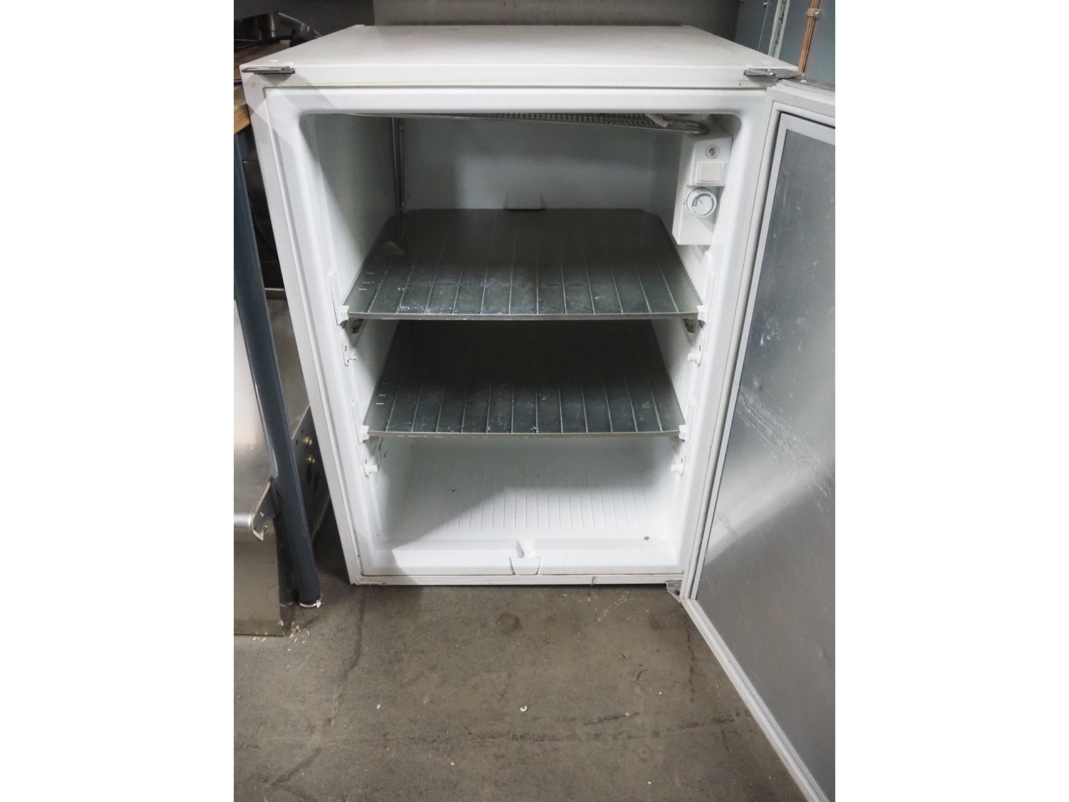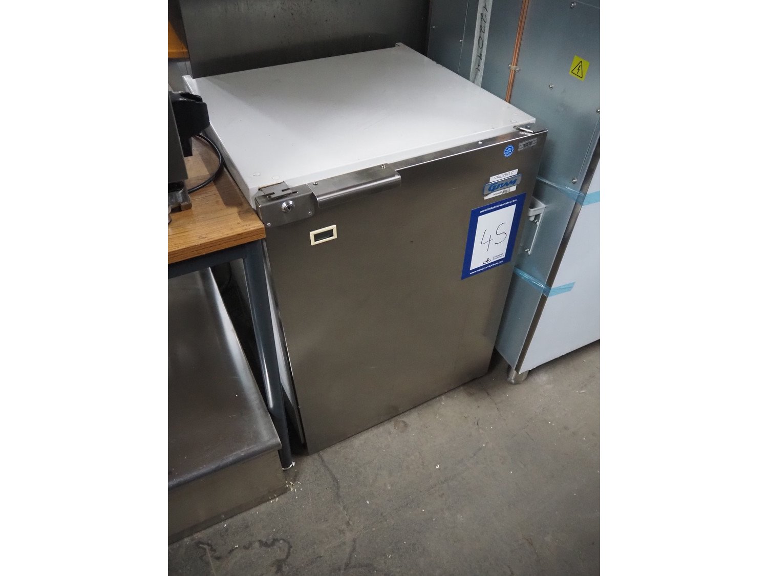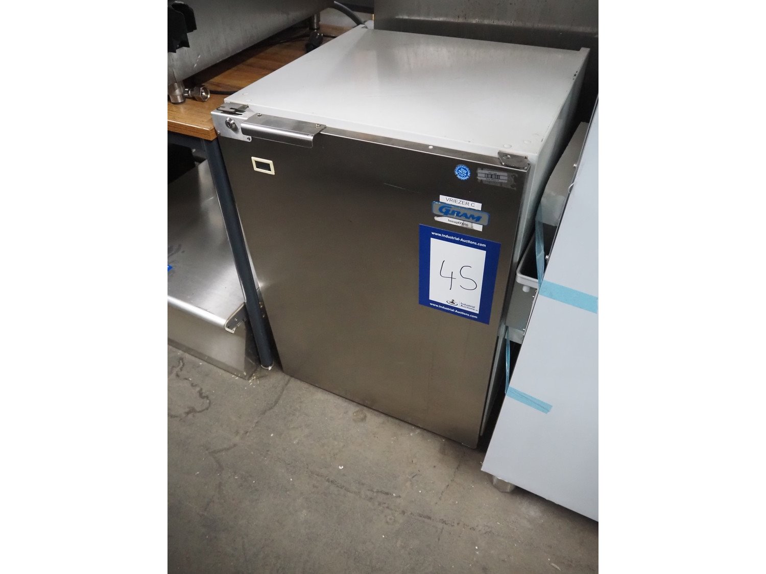 Gram freezer, type: FS 146 CS, serial number: 510/6, 230 V, 50 Hz, 125 W, refrigerant: R134a/0.055 kg, 2 floors, floor dimensions: (2x) 440 mm x 490 mm, total dimensions: 600 mm x 630 mm x 820 mm.