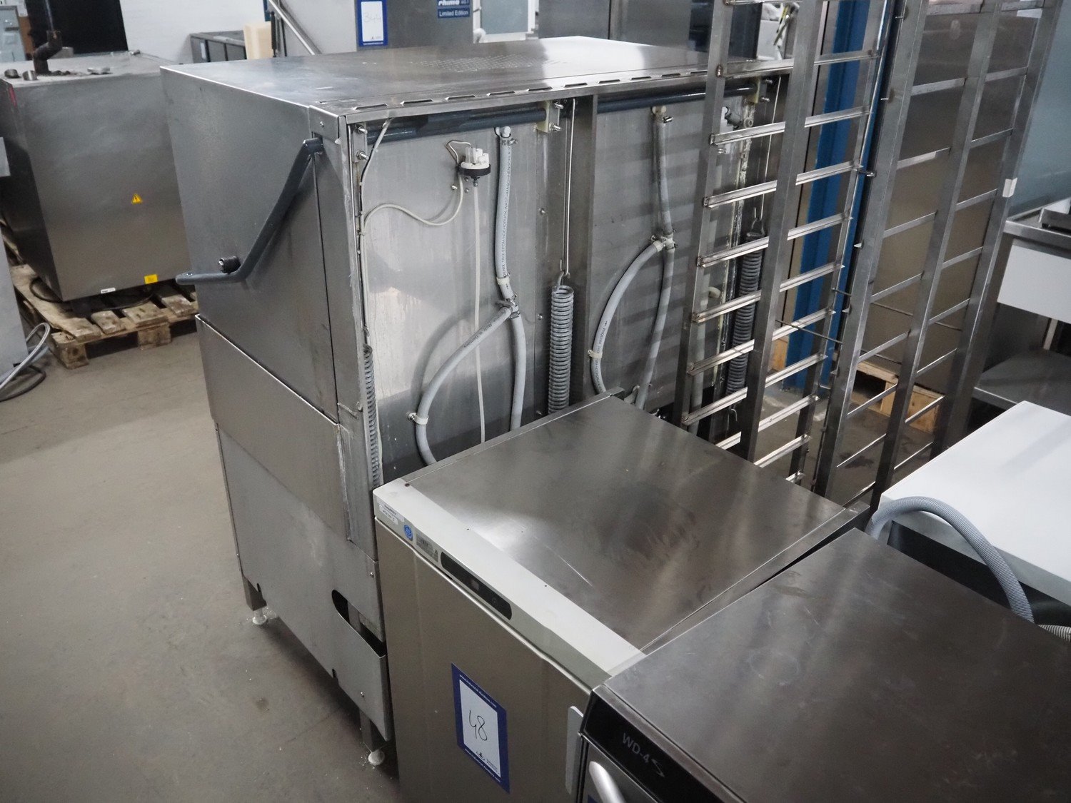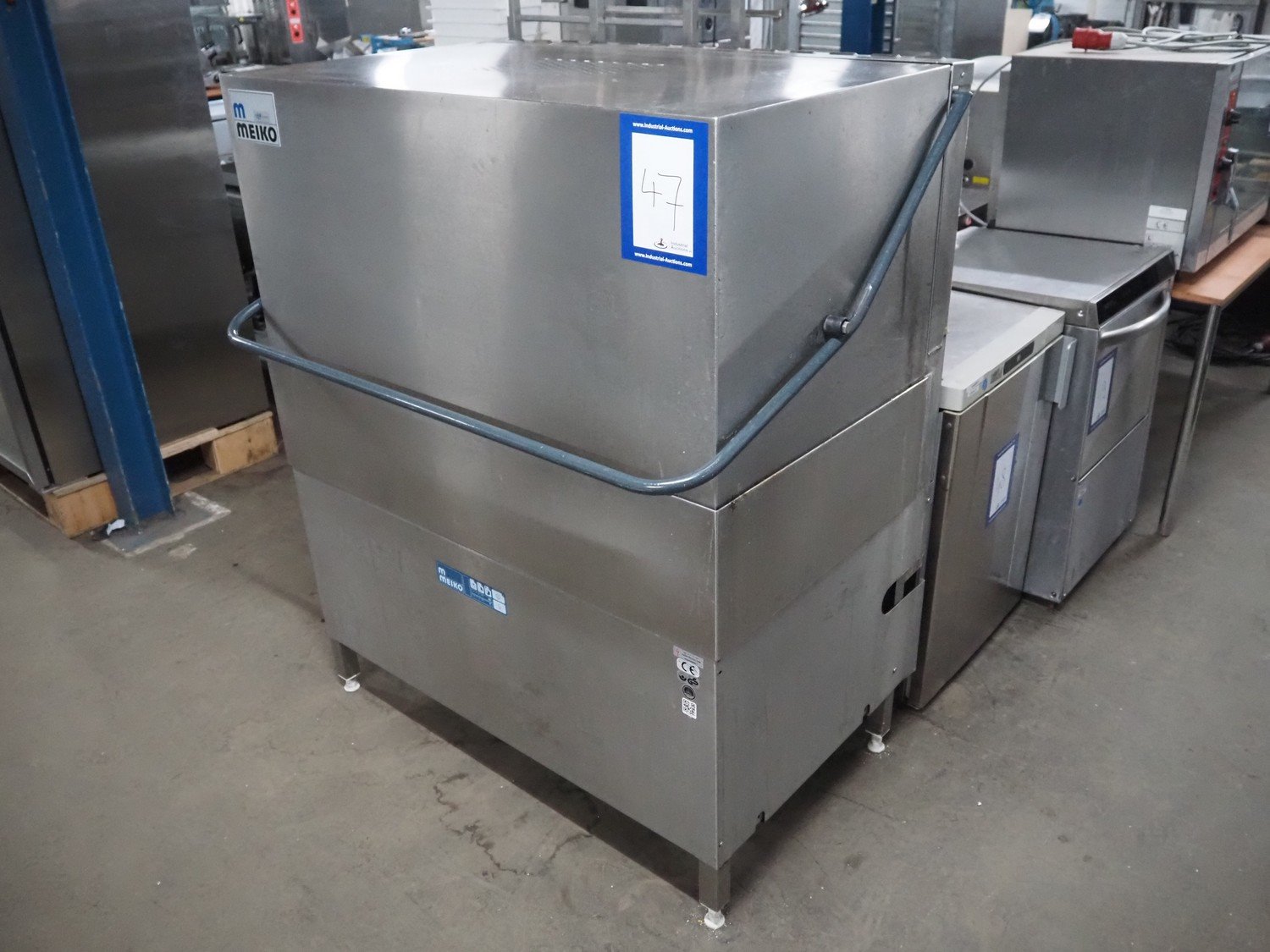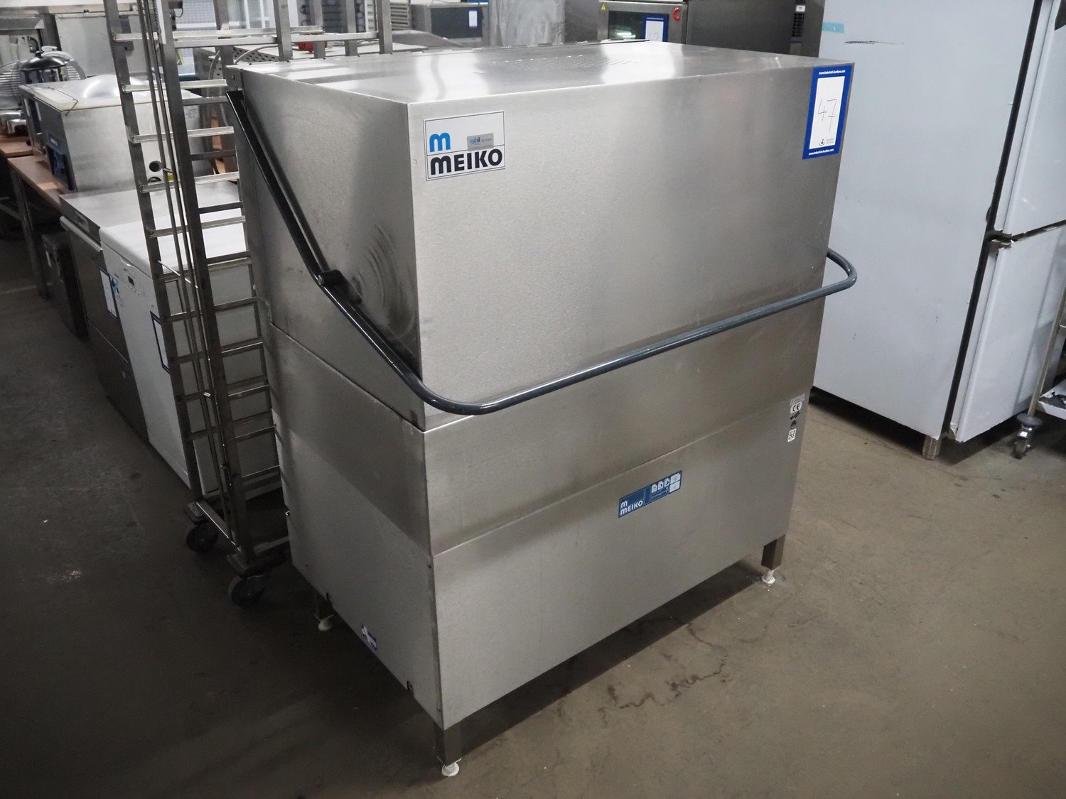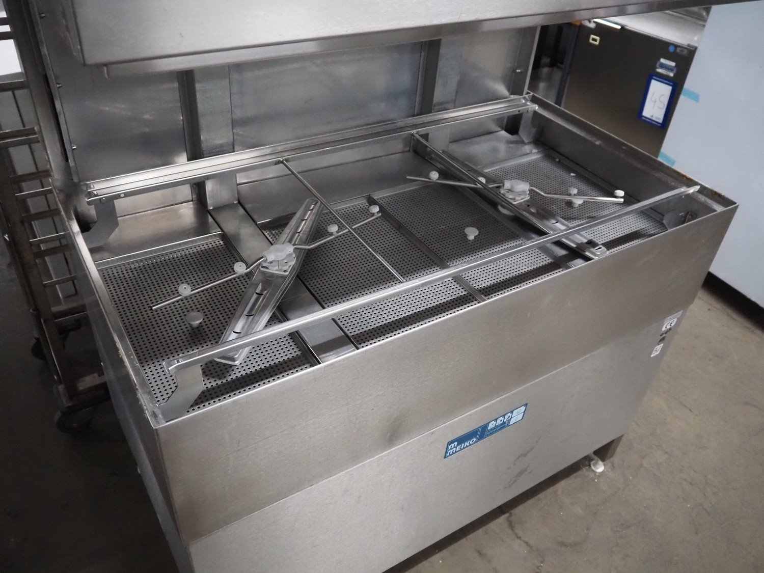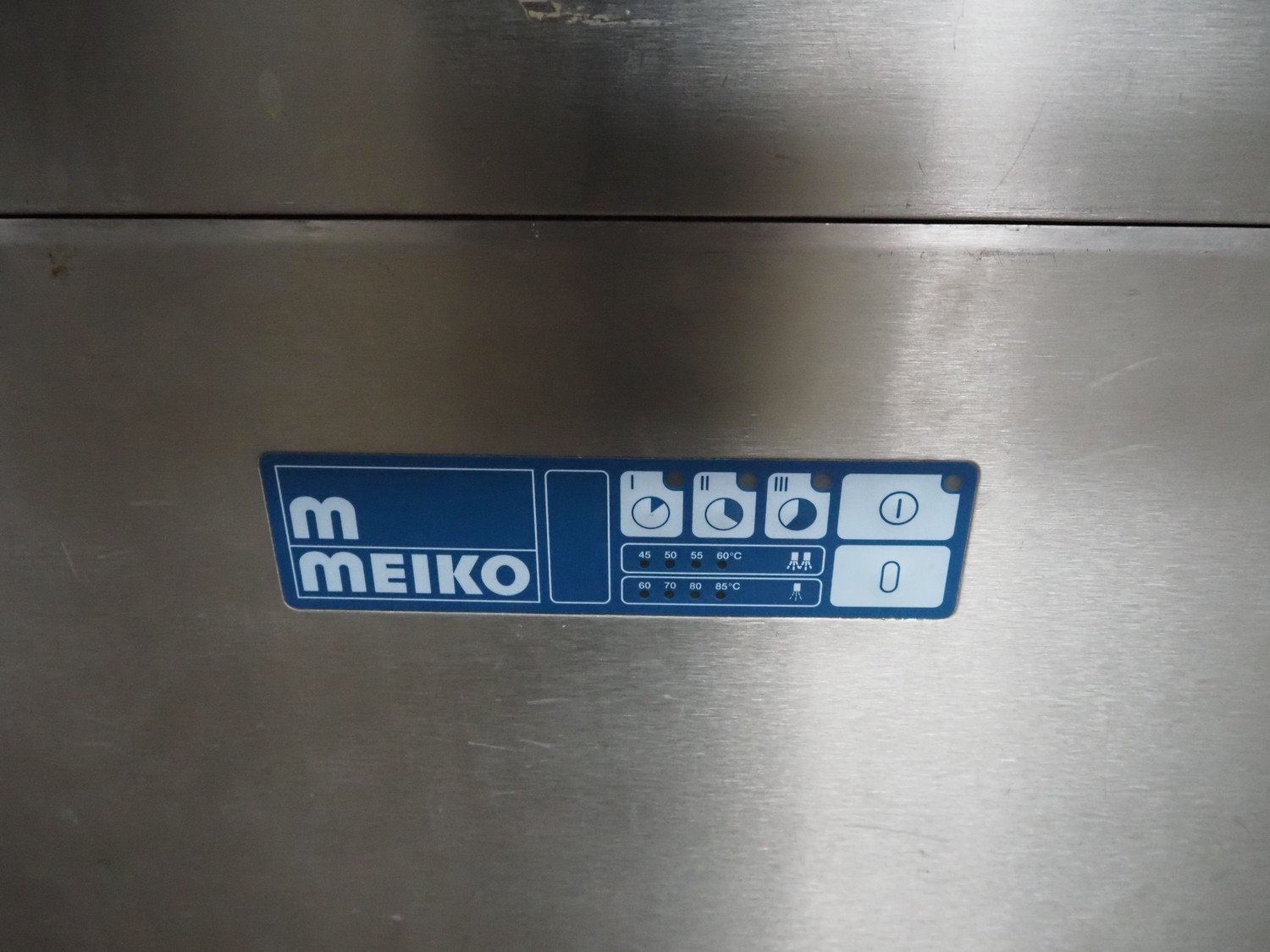 Meiko dishwasher, inside dimensions: 1170 mm x 580 mm, total dimensions: 1180 mm x 860 mm x 1440 mm.