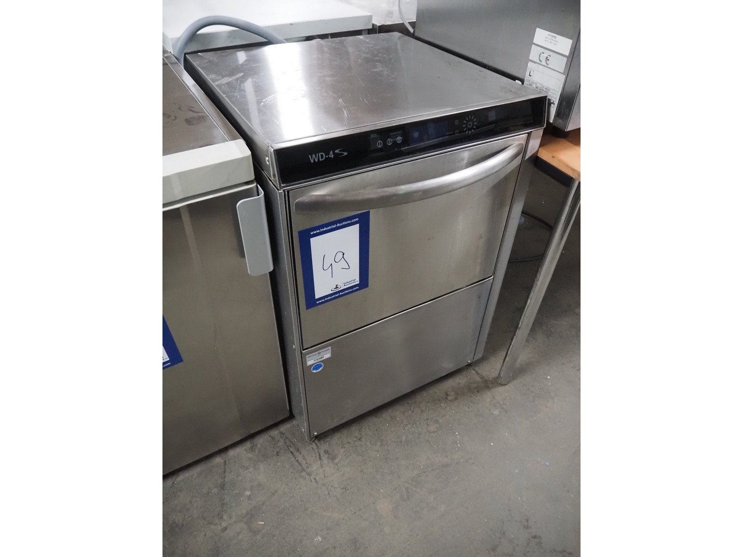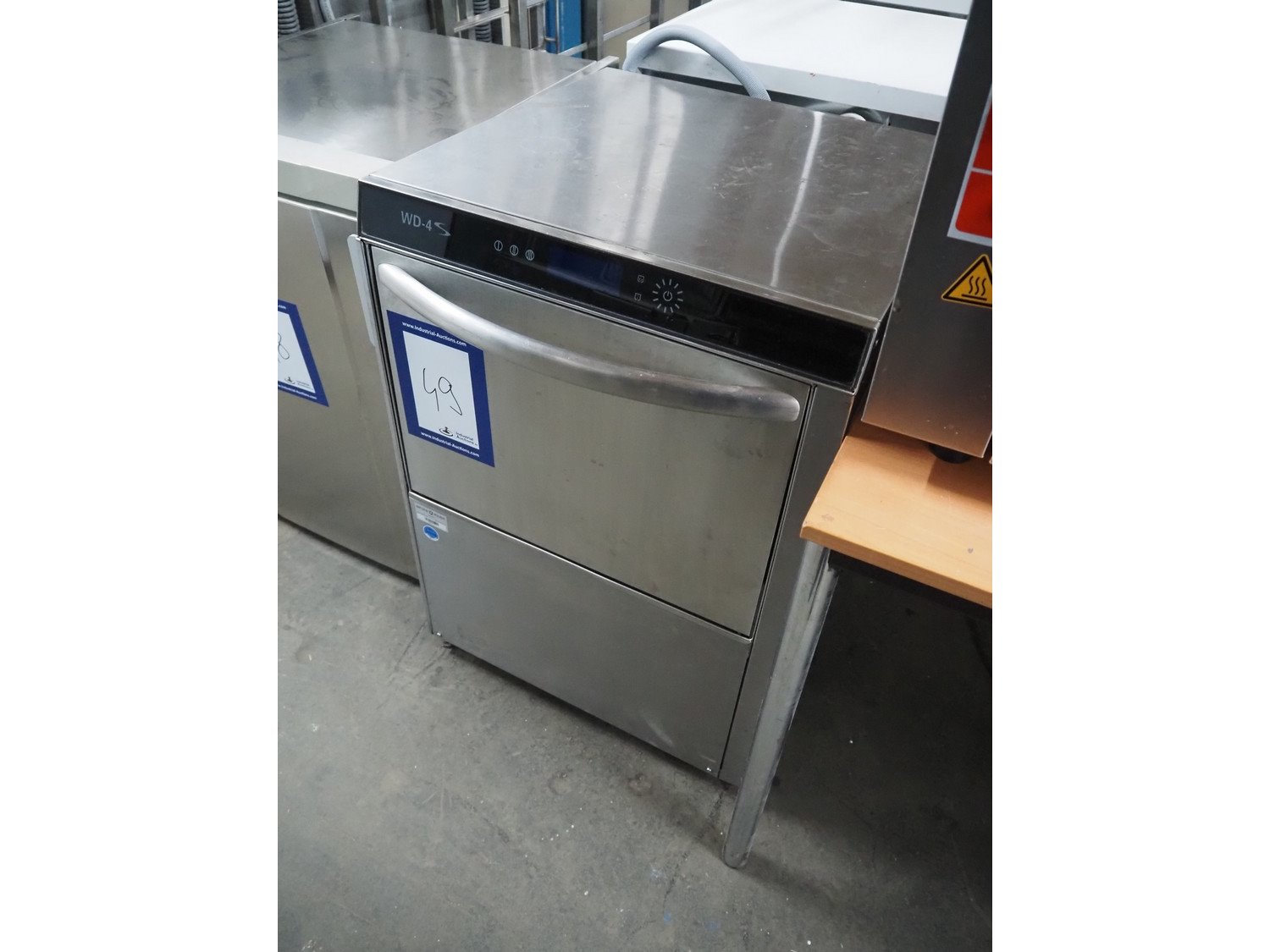 Rhima dishwasher, type: WD-4S, serial number: WD161445, year of construction: 2016, 400 V, 3 Ph, 50 Hz, 16 A, 7.65 kW, inside dimensions: 510 mm x 530 mm, total dimensions: 600 mm x 670 mm x 860 mm.