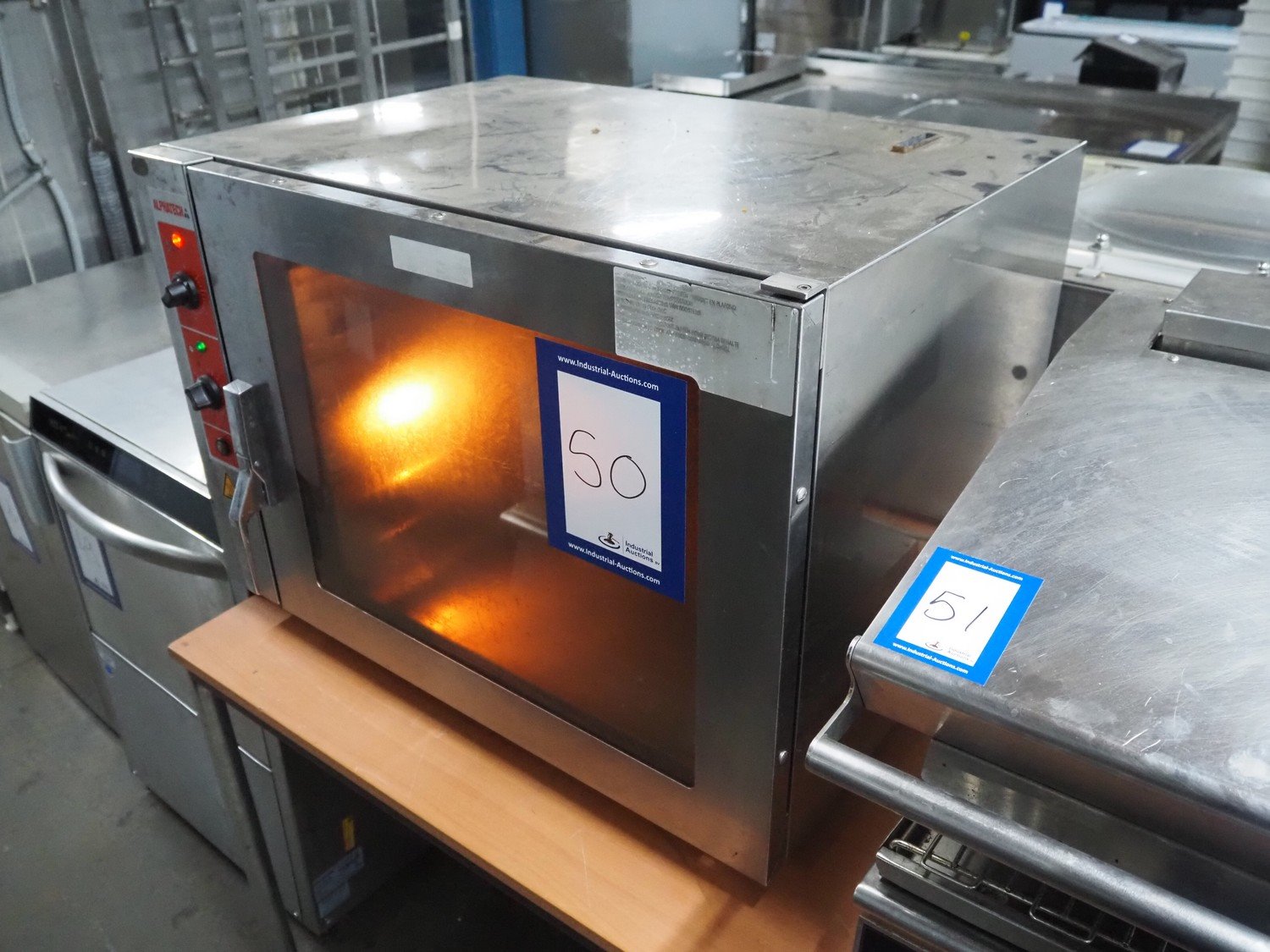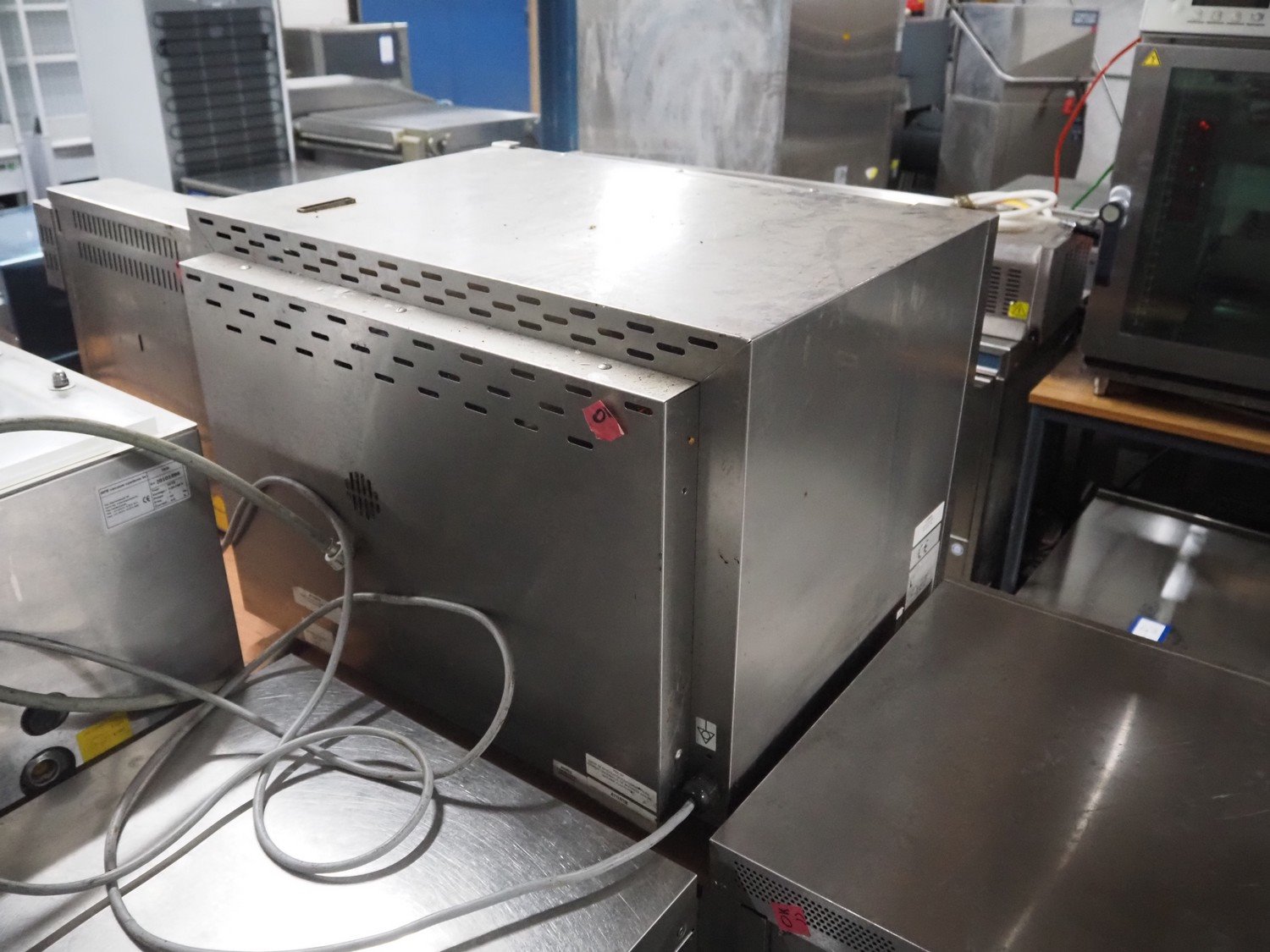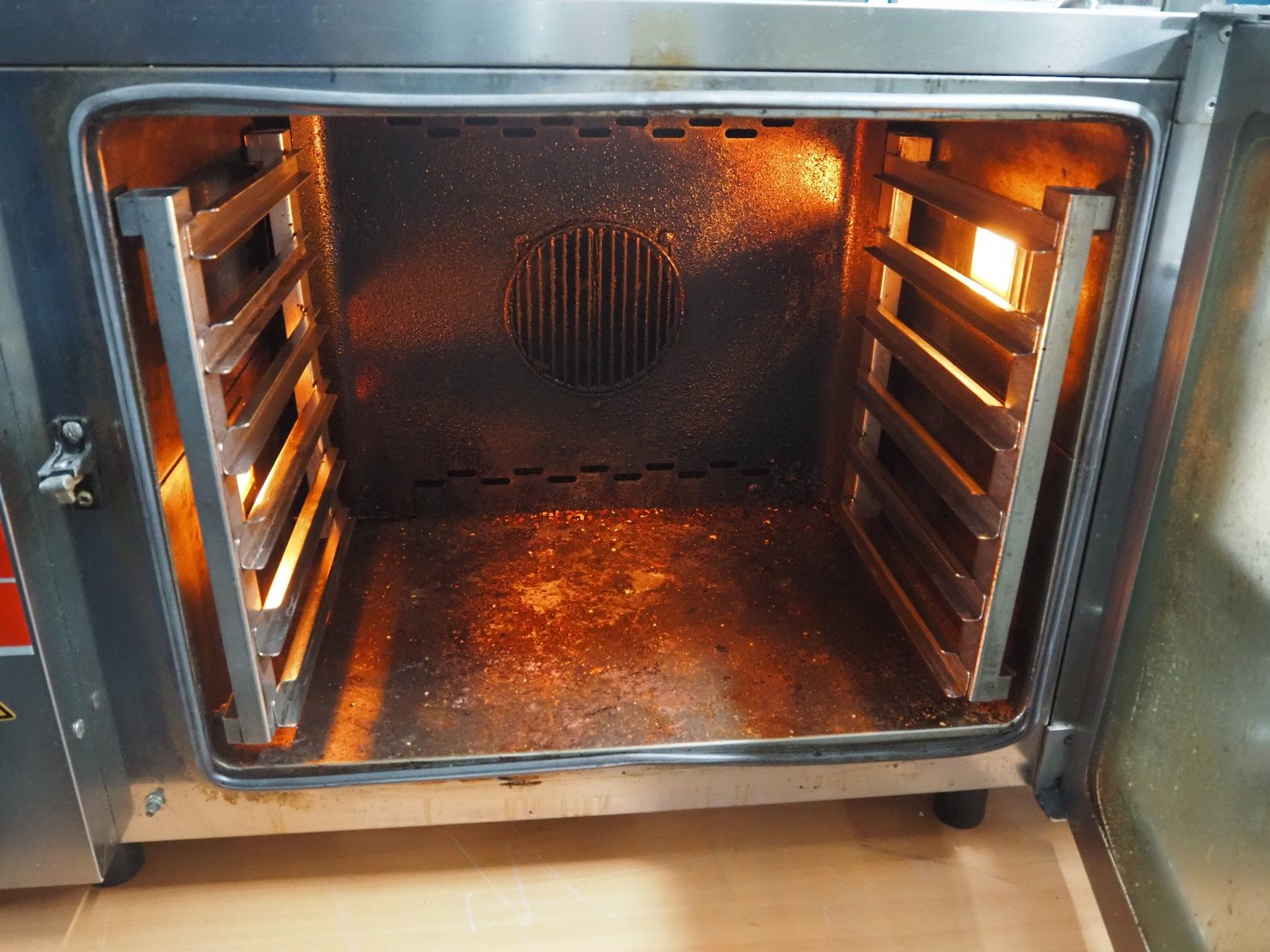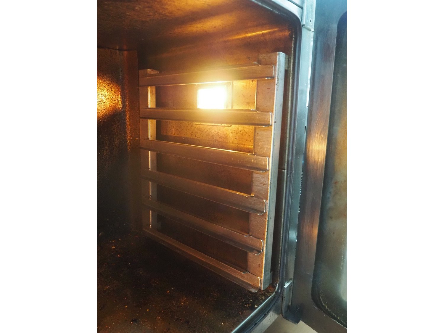 Alphatech combi steamer, type: A05RES, number: LA020035778, year of construction: 2006, 400 V, 3 Ph, 50 Hz, 6.25 kW, 6 floors, floor dimensions: (6x) 500 m x 360 mm, total dimensions: 800 mm x 600 mm x 600 mm.