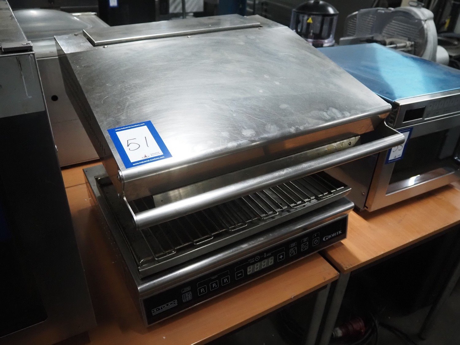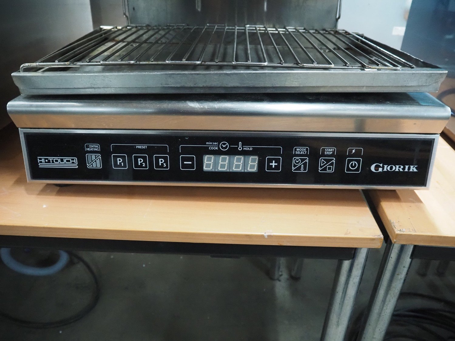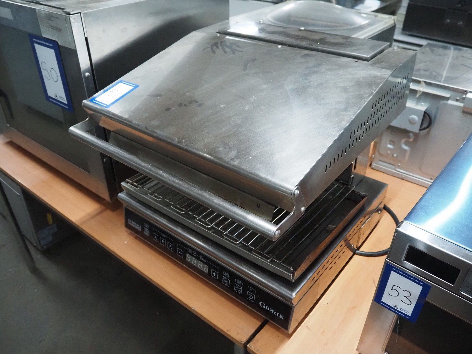 Giorik salamander grill, dimensions grill: 540 mm x 360 mm, total dimensions: 570 mm x 580 mm x 530 mm.