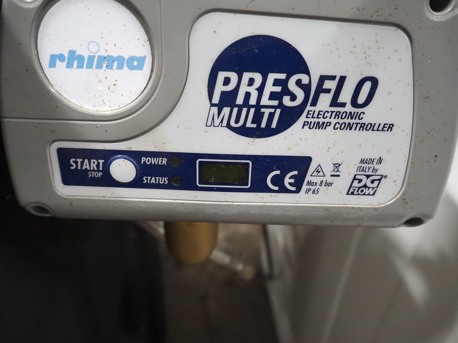 Rhima presflo multi electronic pump controller, type: AB, serial number: 20150189, dimensions: 530 mm x 500 mm x 800 mm.