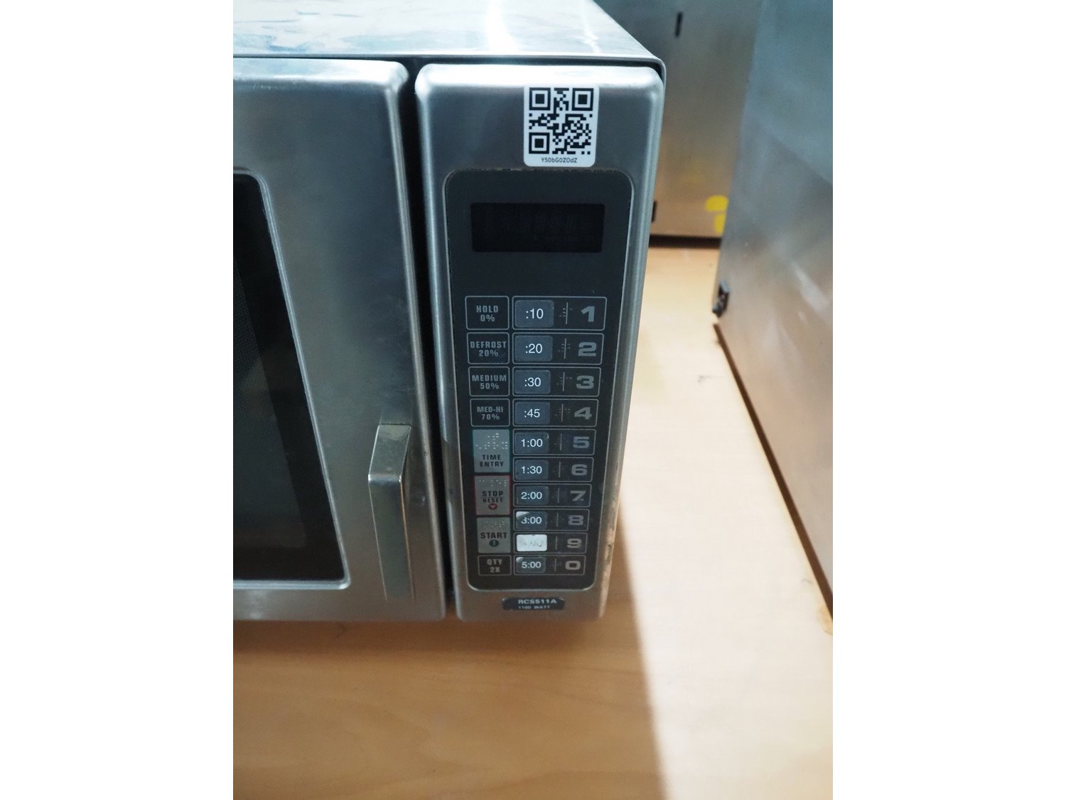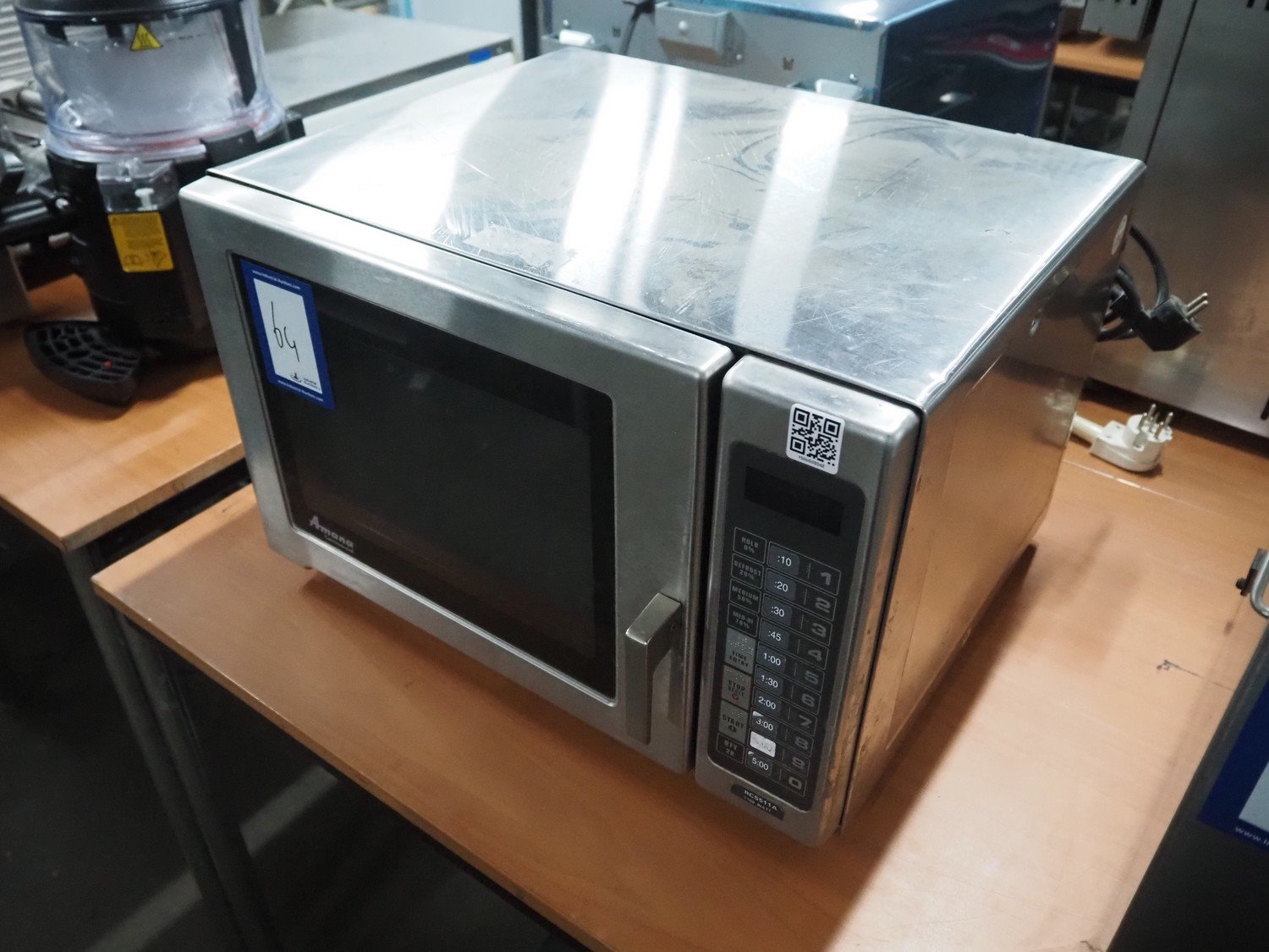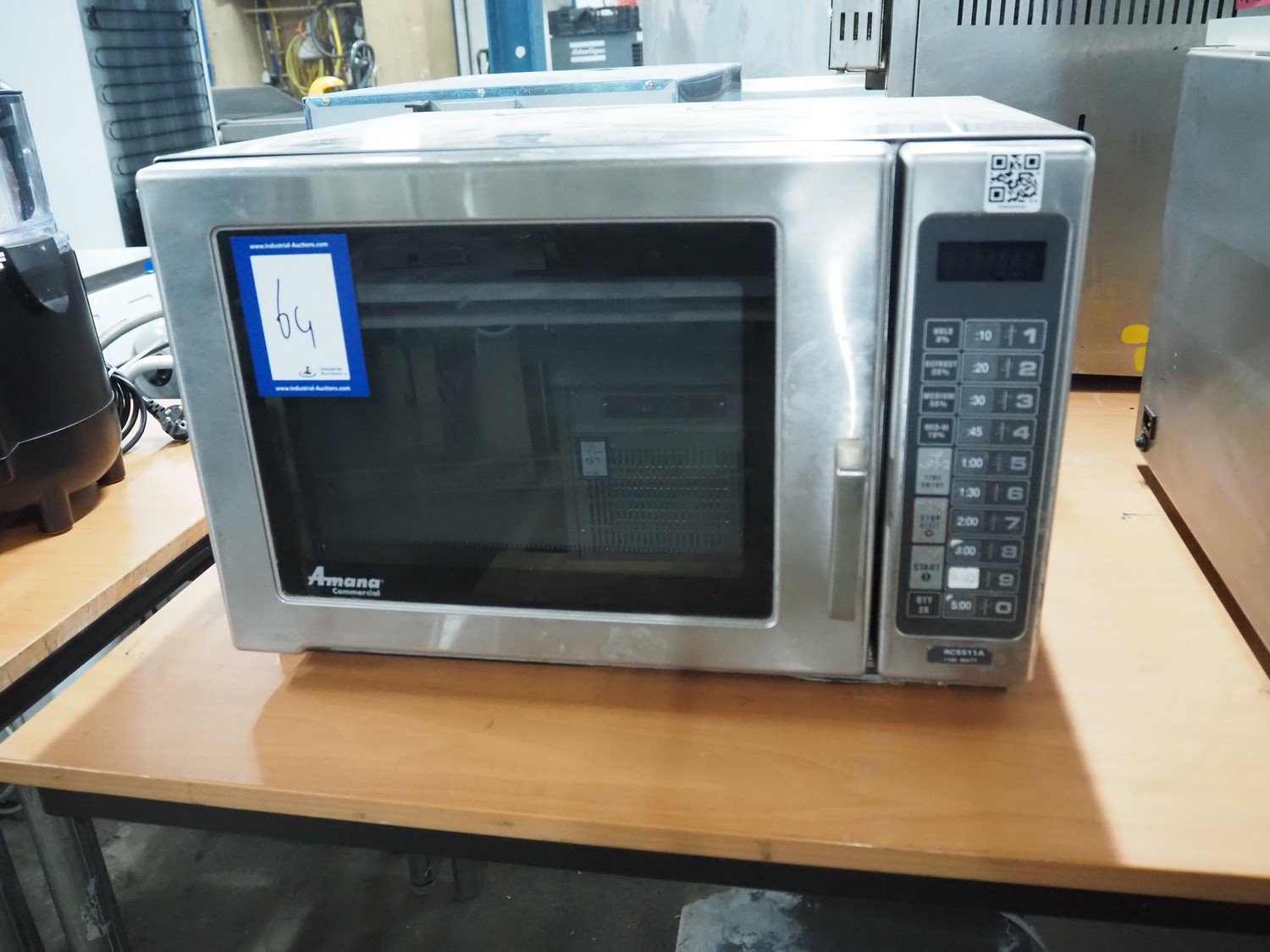 Amana microwave, model: RCS511A, serial number: 0807305333, year of construction: July 2008, 230 V, 1 Ph, 50 Hz, 1.6 kW, inside dimensions: 360 mm x 410 mm x 240 mm, total dimensions: 550 mm x 500 mm x 360 mm.