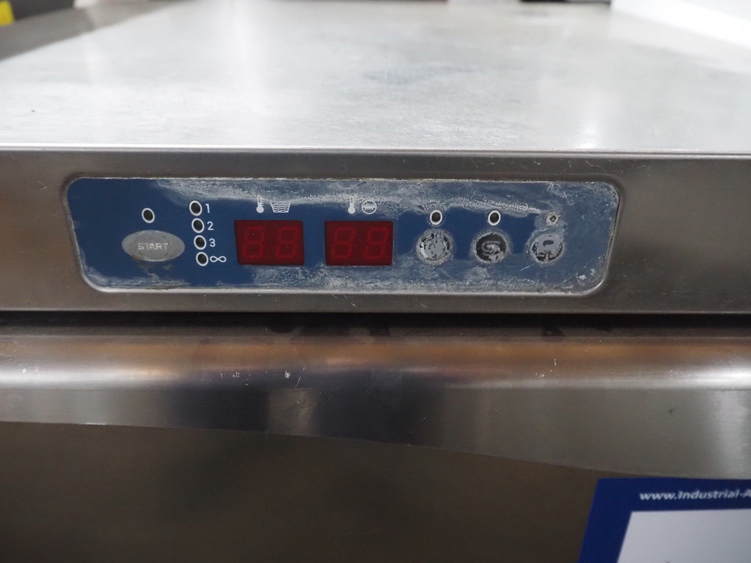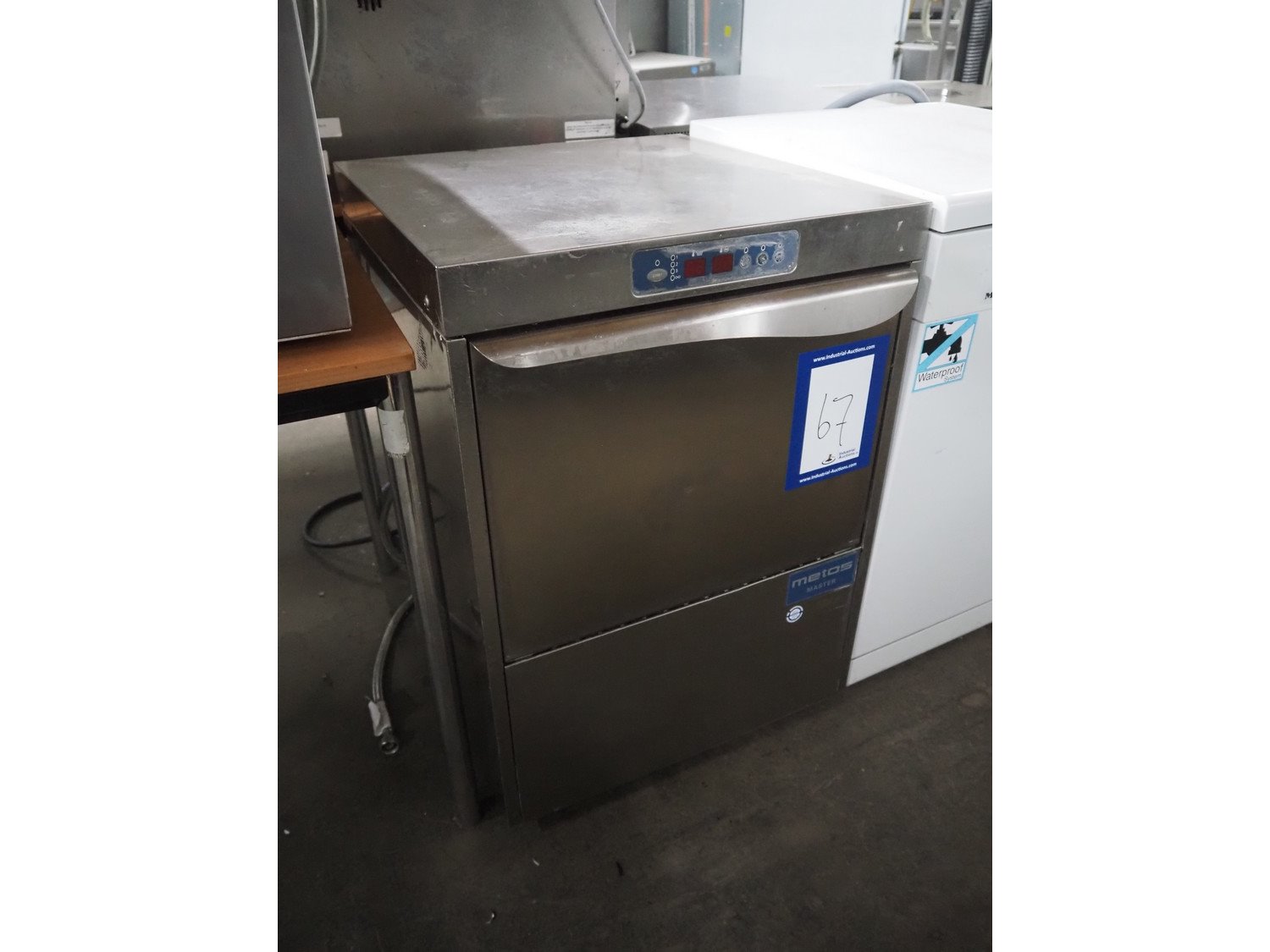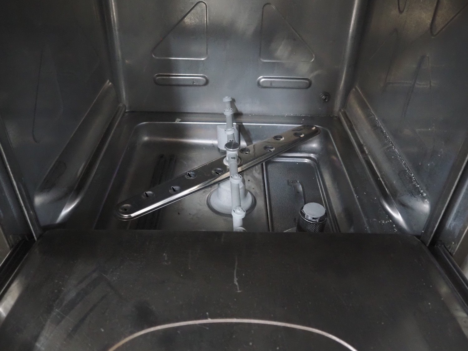 Metos dishwasher, type: DW124E, serial number: DWN1003896, 380-415 V, 3 Ph, 50 Hz, 15.1 A, 5150 W, dimensions: 640 mm x 600 mm x 860 mm.