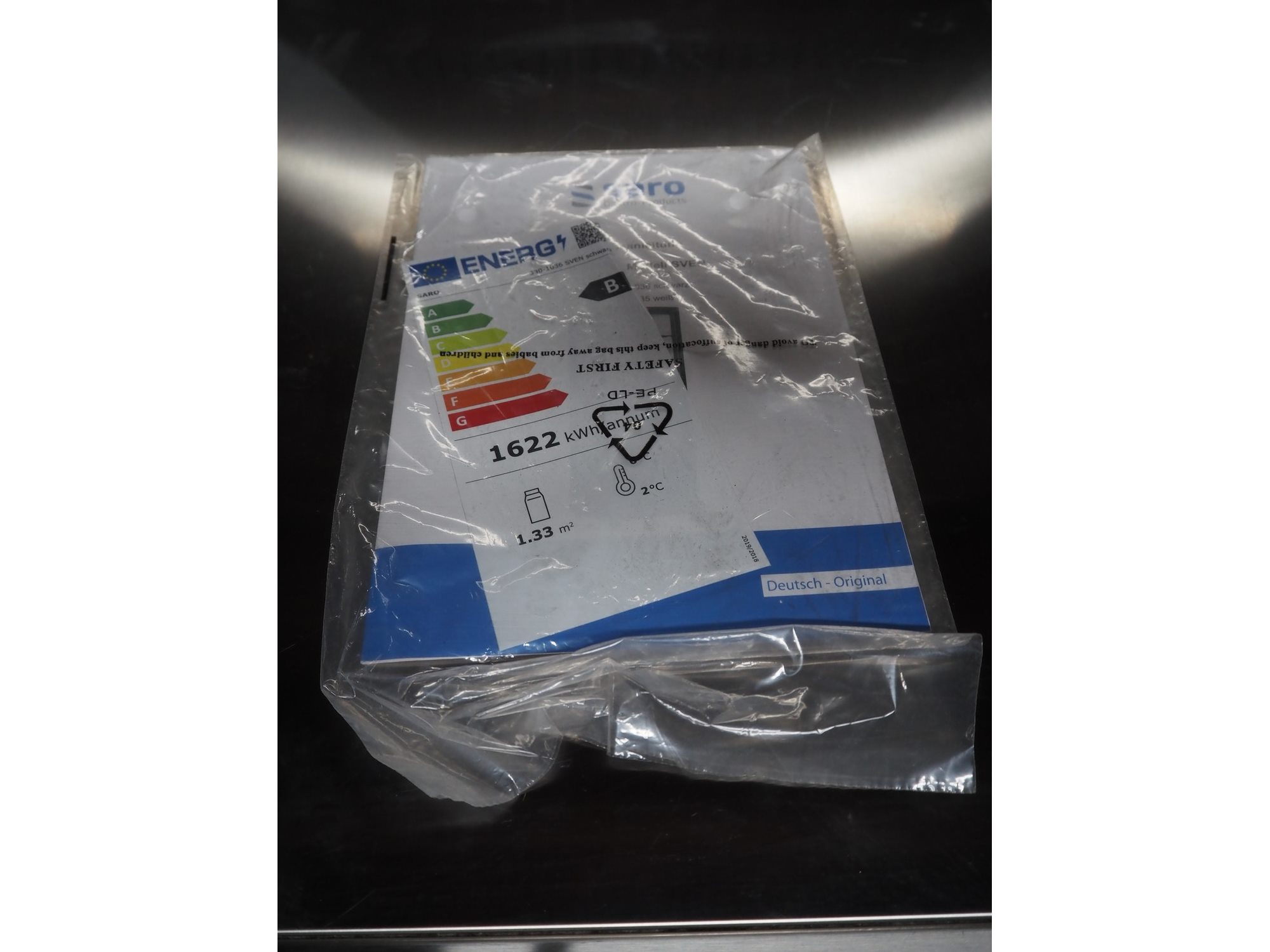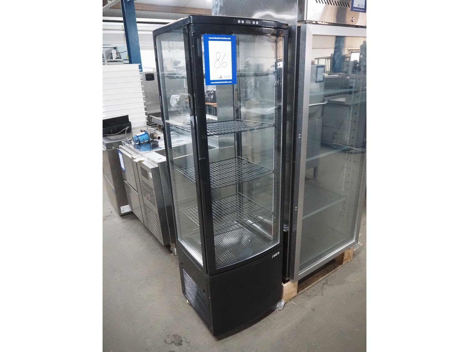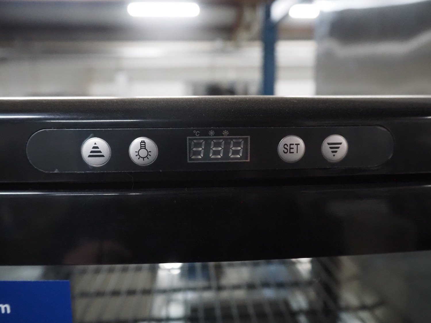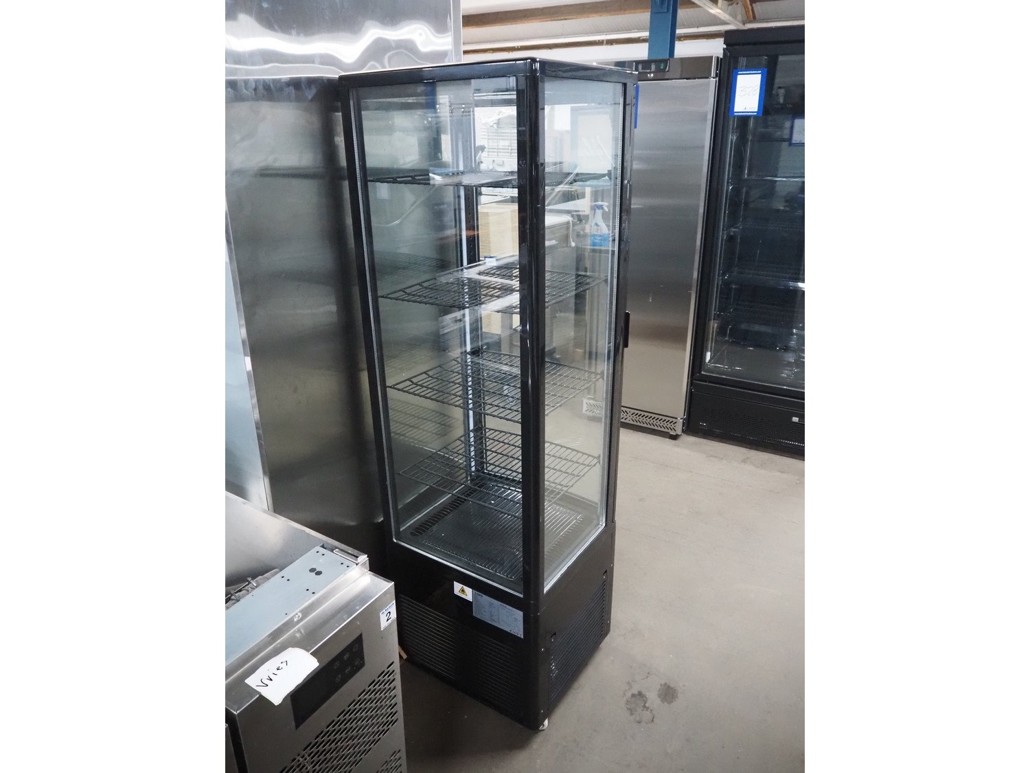 Saro Gastro-Products GmbH refrigerated showcase, model: SVEN, serial number: 1570608200024, year of construction: 20.08.2024, 220-240 V, 50 Hz, 2.3 A, 380 W, volume: 235 liter, refrigerant: R290/90 g, 4 floors, floor dimensions: (4x) 420 mm x 380 mm, total dimensions: 460 mm x 520 mm x 1700 mm.