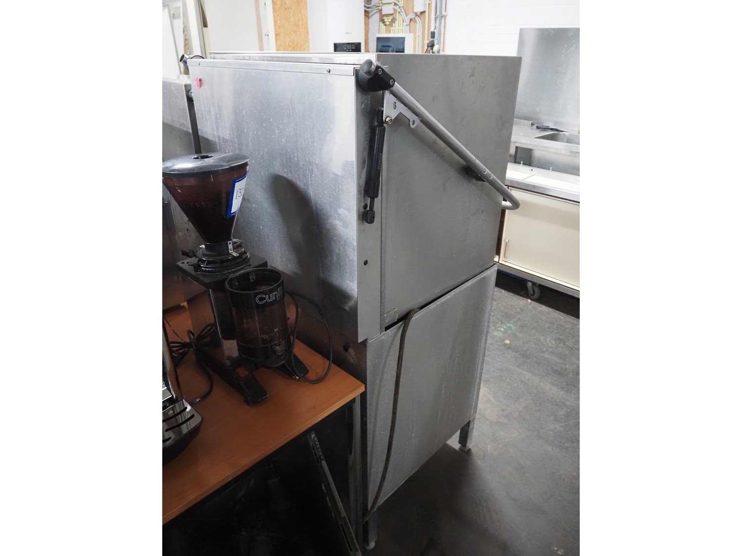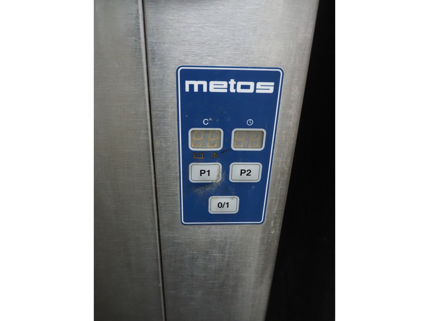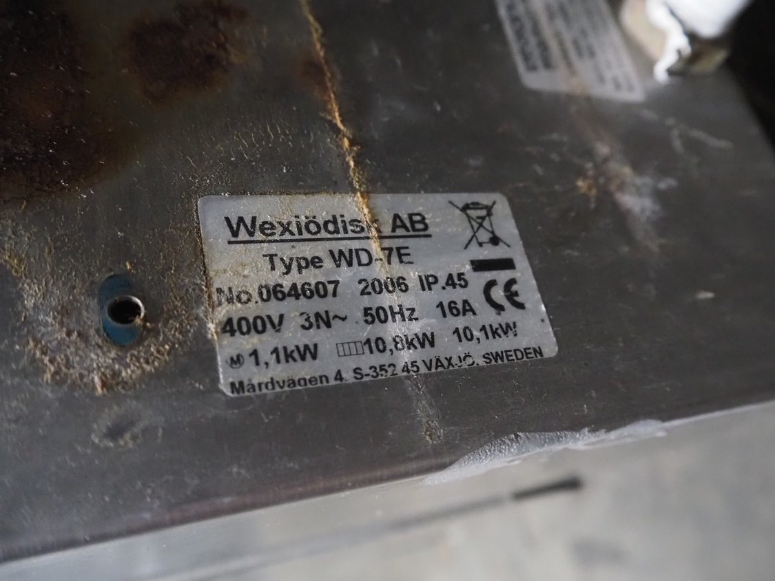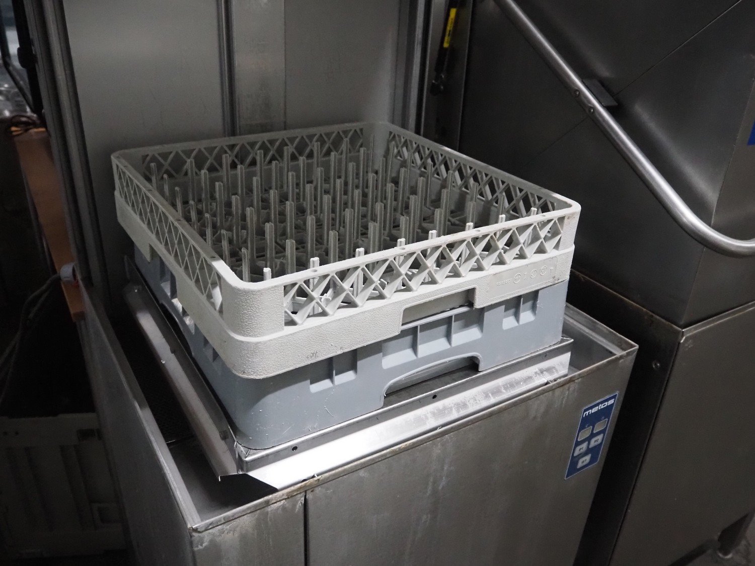 Metos dishwasher, type: WD-7E, number: 064607, year of construction: 2006, 400 V, 3 Ph, 50 Hz, 16 A, 10.1 kW, dimensions: 740 mm x 700 mm x 1500 mm. Including 2 plastic baskets.