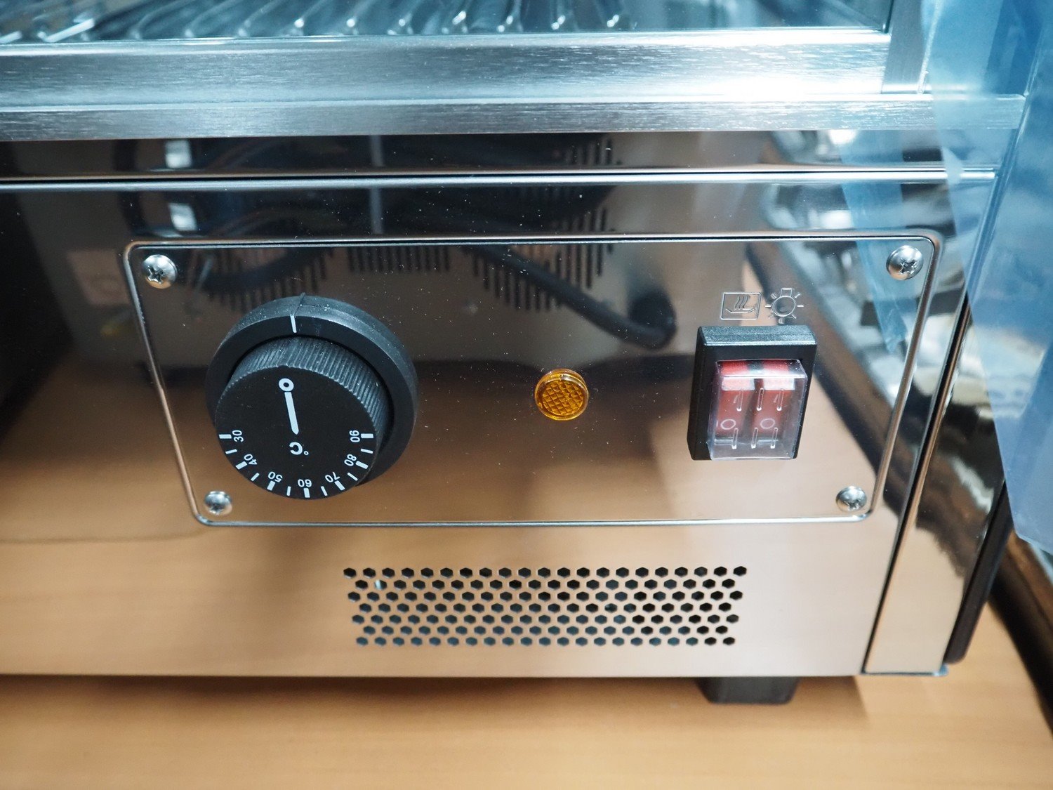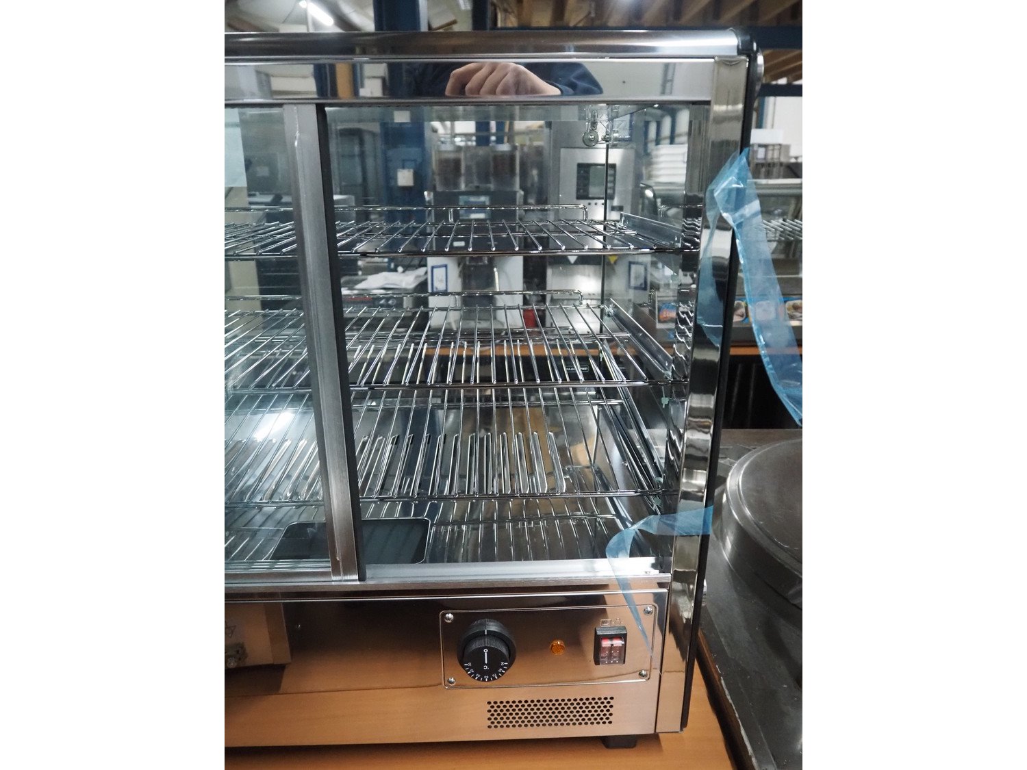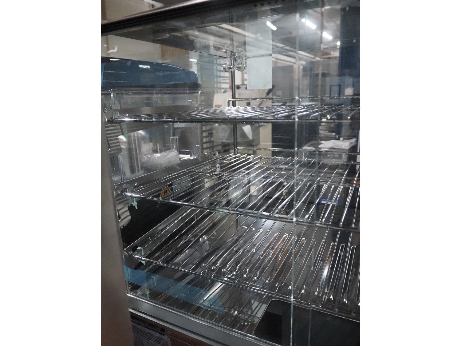 Metro heated showcase, 3 floors, floor dimensions: (3x) 640 mm x 340 mm, total dimensions: 680 mm x 560 mm x 680mm.