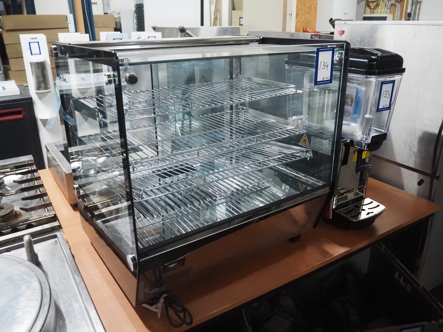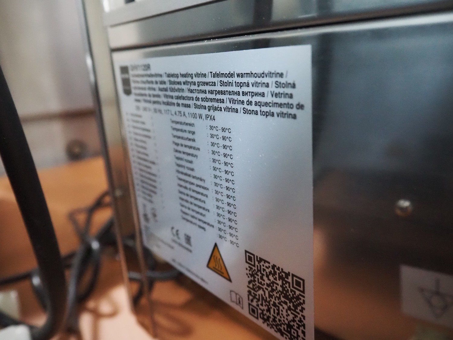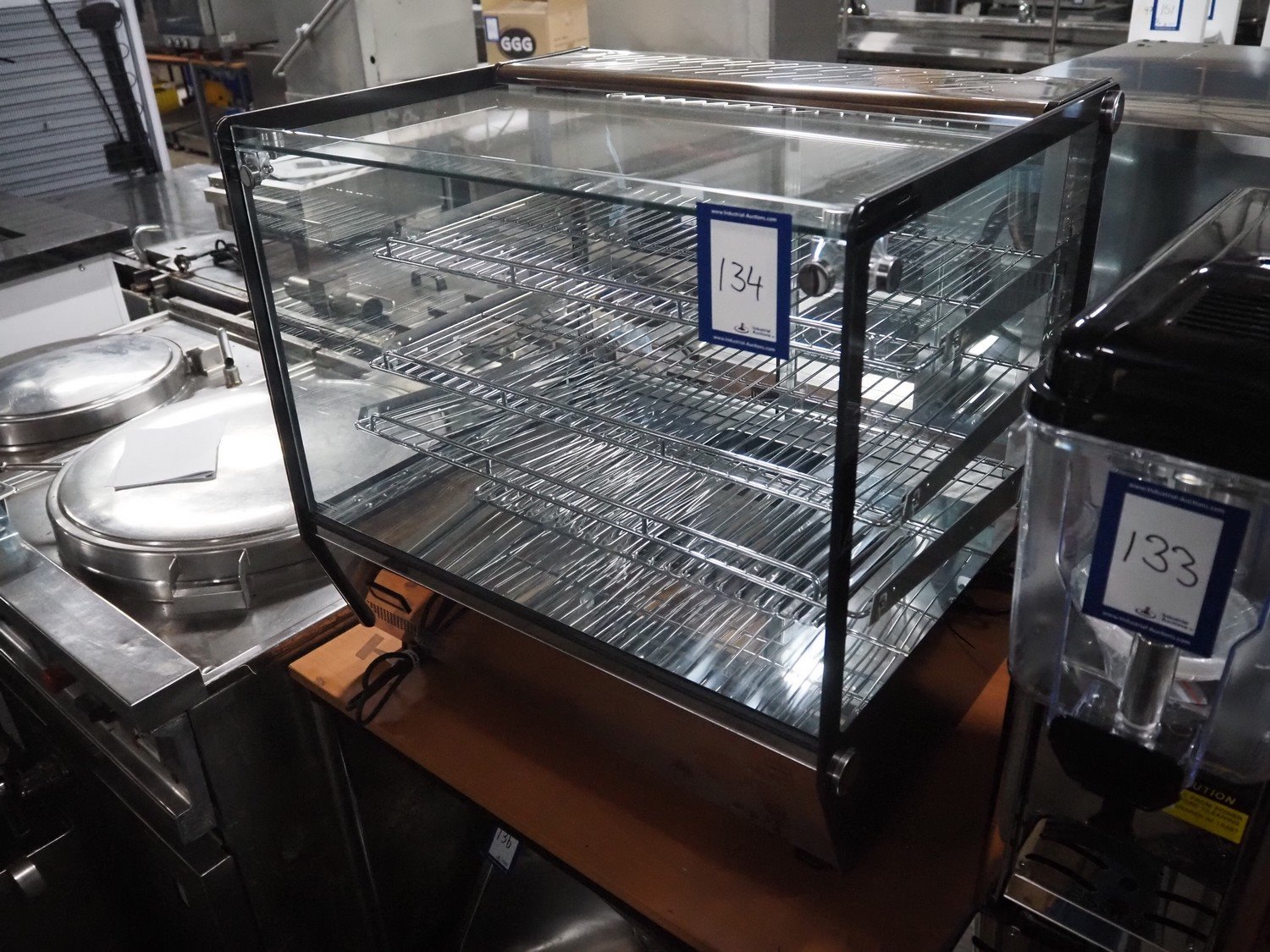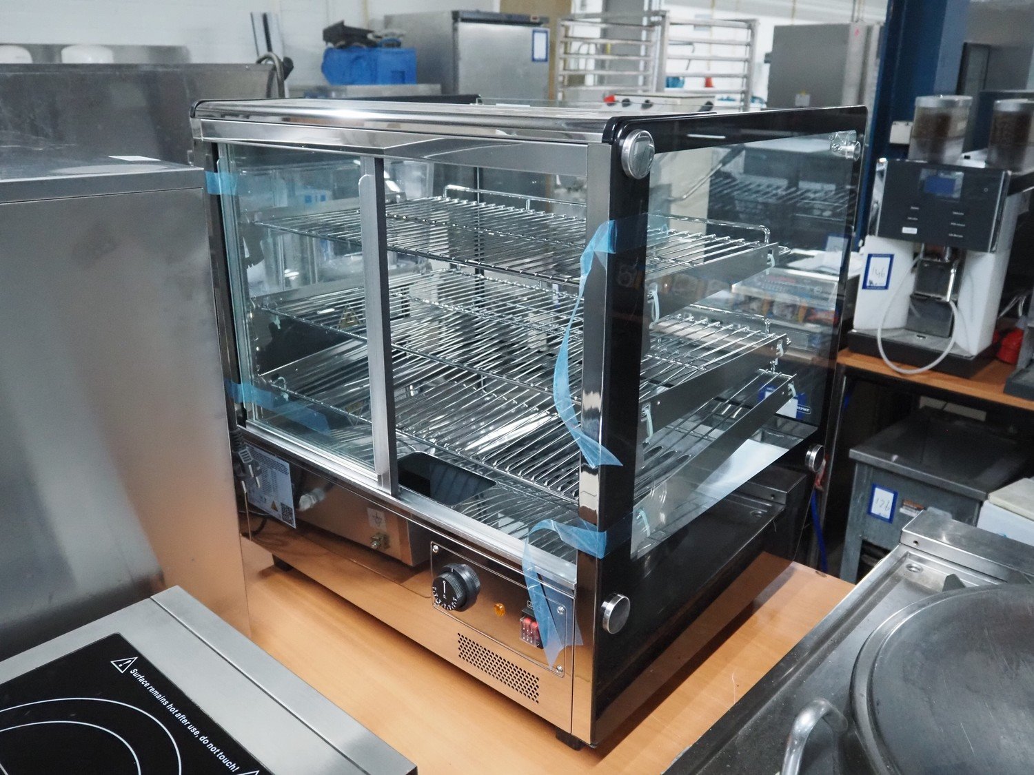 Metro heated showcase, 3 floors, floor dimensions: (3x) 640 mm x 340 mm, total dimensions: 680 mm x 560 mm x 680mm.
