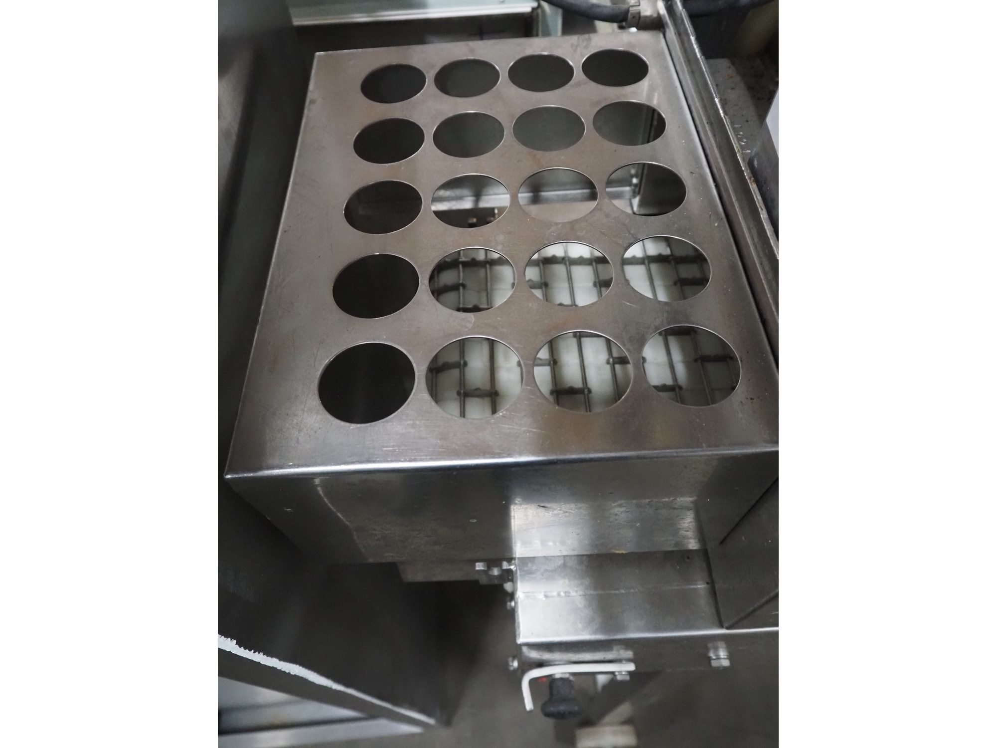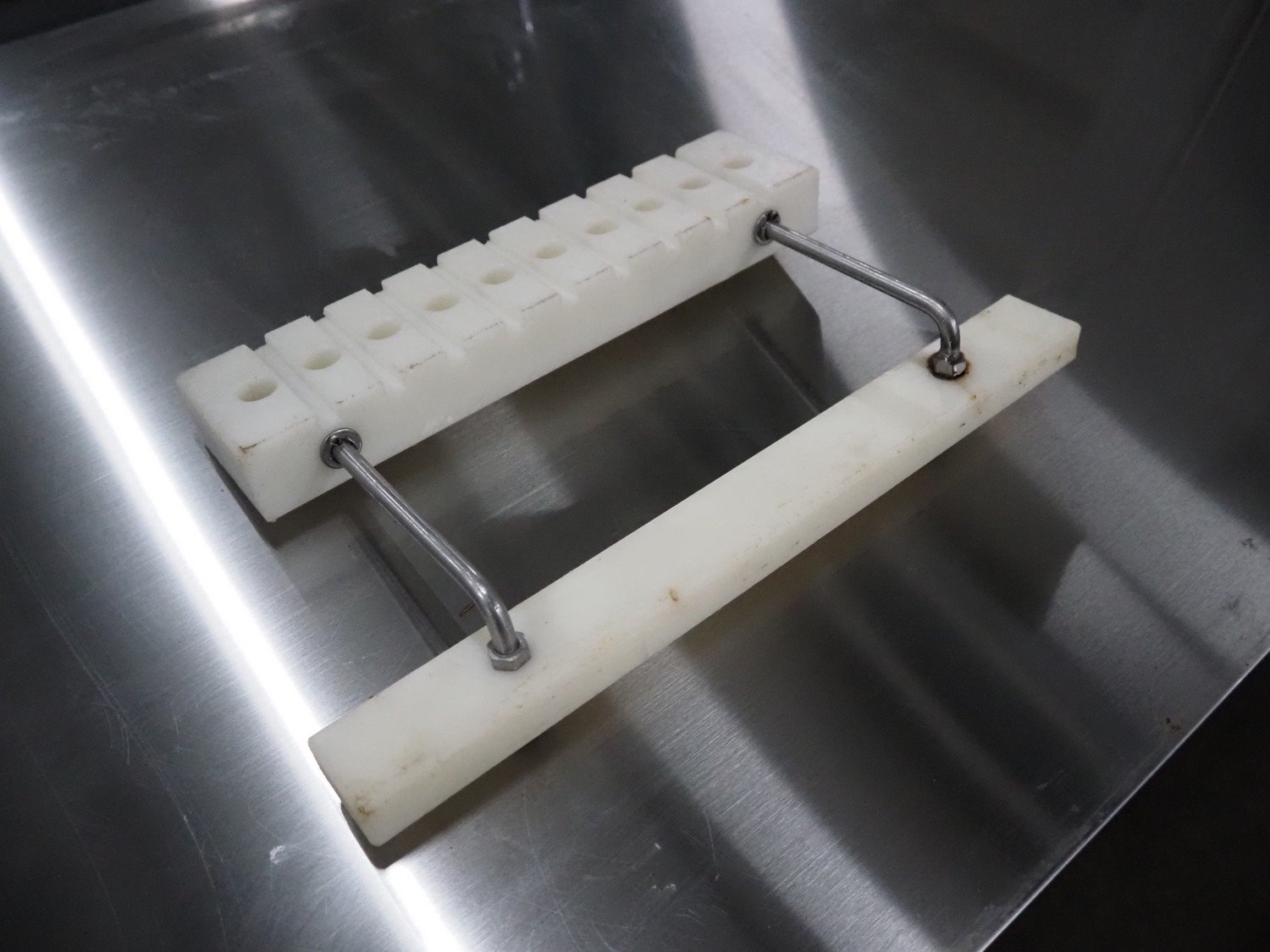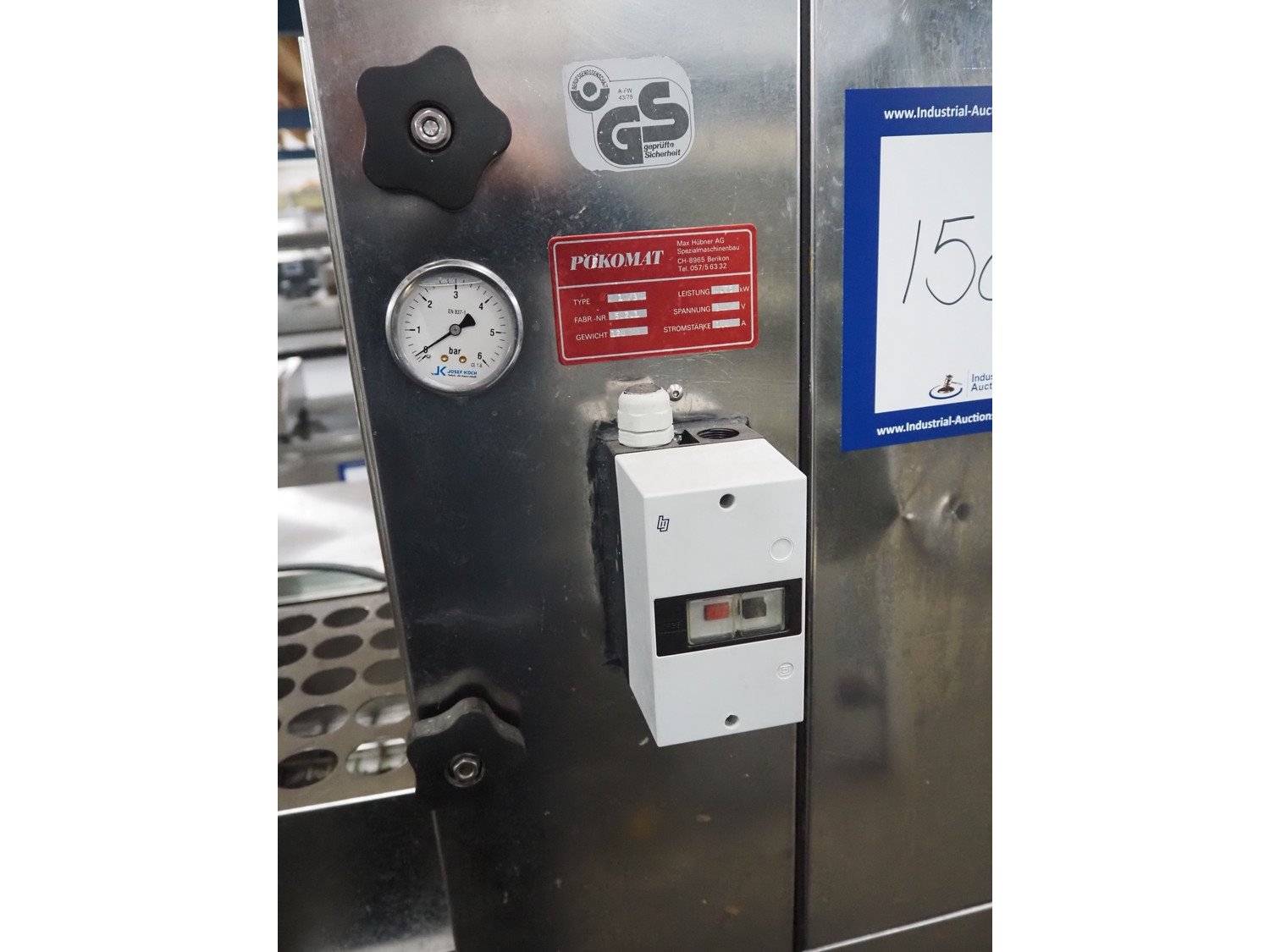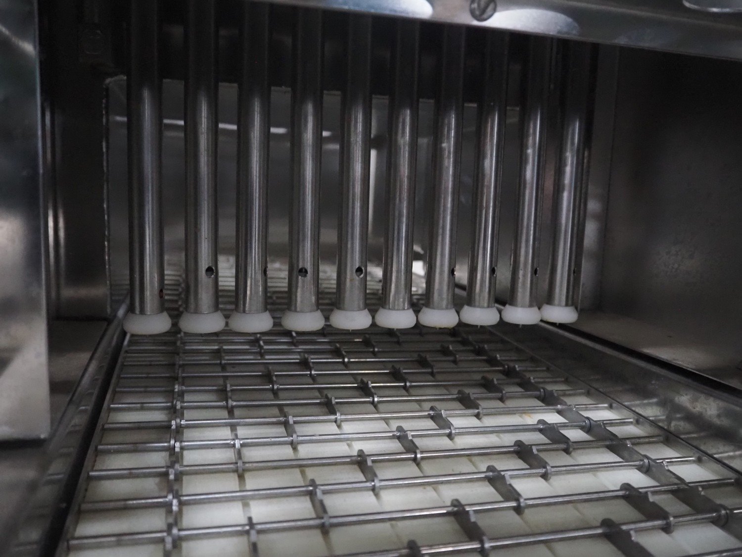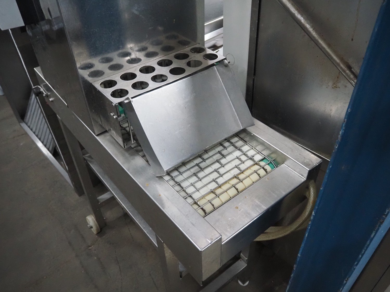 Pökomat mobile injector, type: R10/300, fabrication number: 582.1, 380 V, 1.8 A, 0.75 kW, weight: 126 kg, 10 needles, s/s belt, belt width: 300 mm, clearance: 300 mm x 140 mm, total dimensions: 1170 mm x 430 mm x 1750 mm.