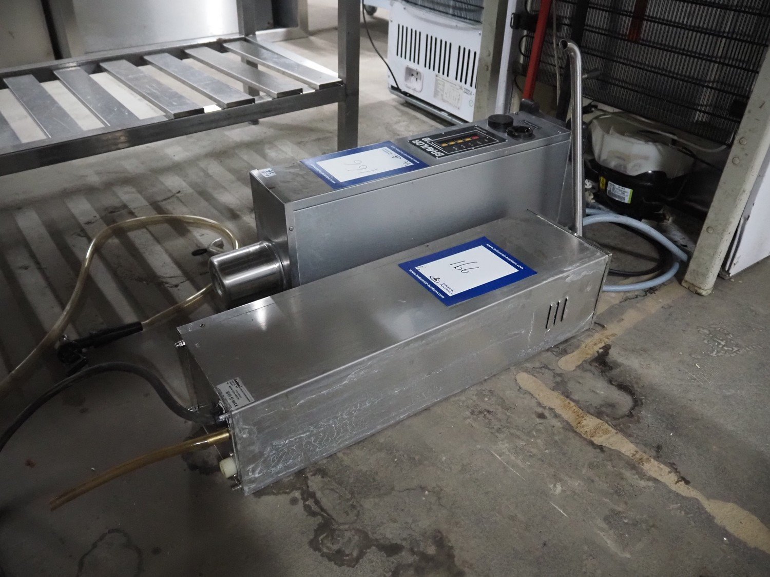 Animo coffee dispenser, type: DWI GL 90, serial number: 20027, 400 V, 3 Ph, 50 Hz, 9800 W, dimensions: 300 mm x 400 mm x 900 mm, Bravilor coffee dispenser, type: 8.321.801.100, 380 V, 3 Ph, 50/60 Hz, 6000 W, dimensions: 300 mm x 400 mm x 900 mm.