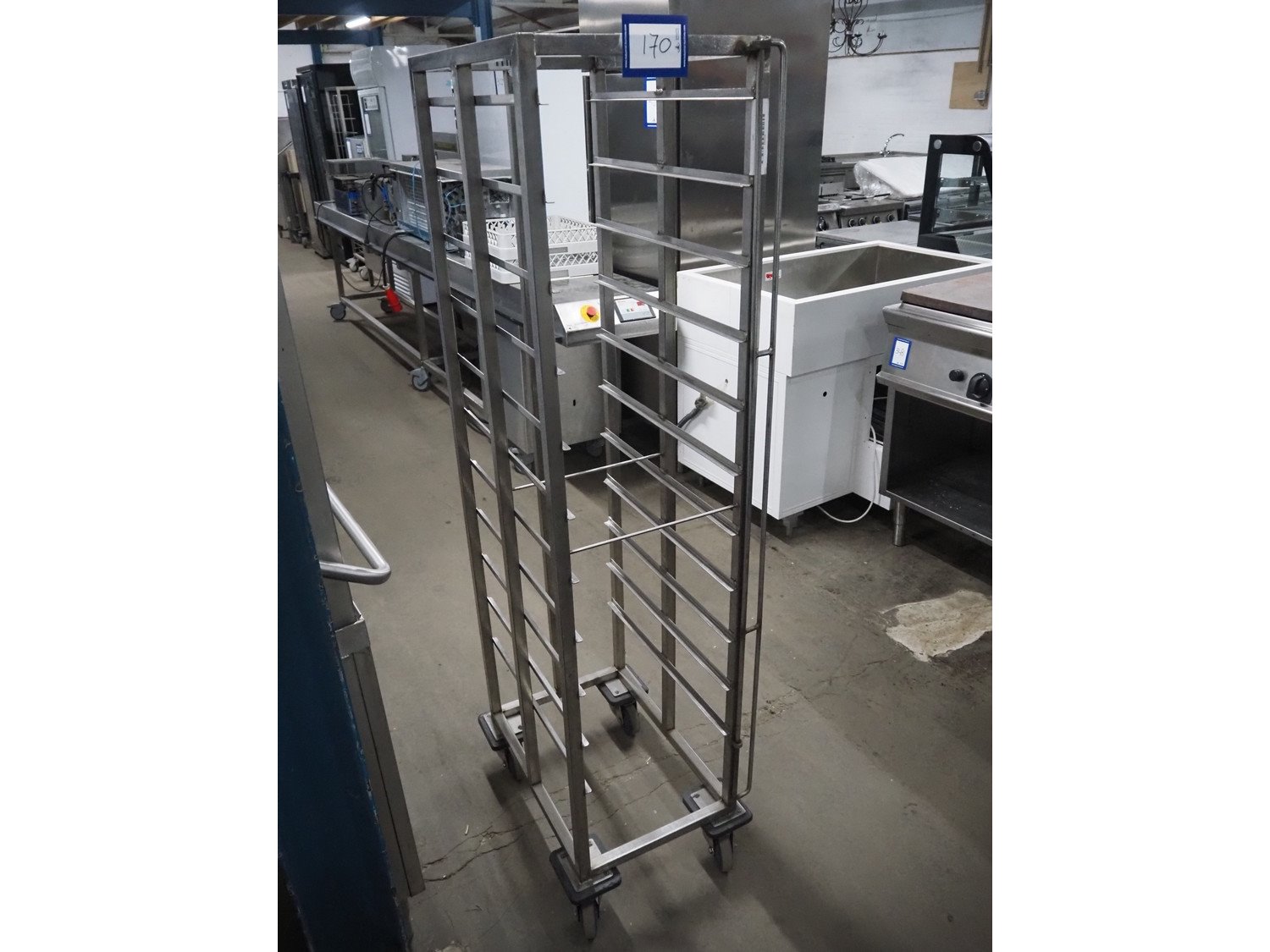 S/s trolley, 11 floors, floor dimensions: (11x) 550 mm x 330 mm, total dimensions: 590 mm x 380 mm x 1670 mm.