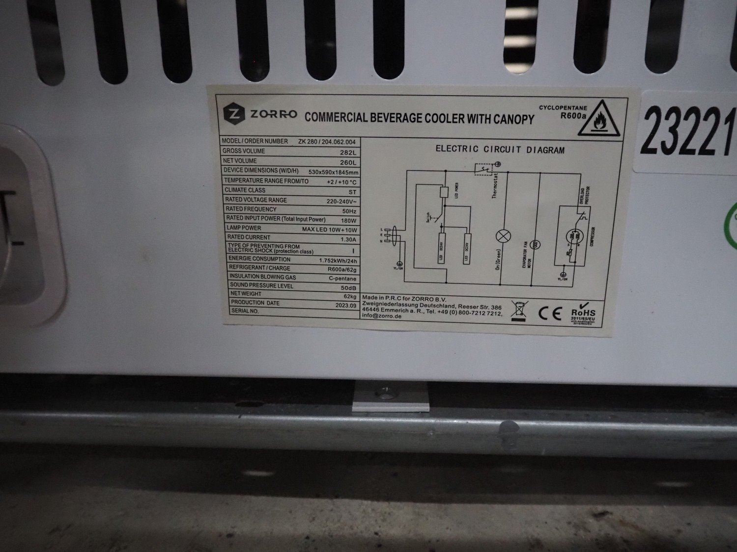 Zorro B.V. refrigerator, model: ZK 280 / 204.062.004, 220-240 V, 50 Hz, 1.3 A, 180 W, refrigerant: R600A/0.062 kg, volume: 282 liter, weight: 62 kg, 7 floors, floor dimensions: (7x) 430 mm x 380 mm, total dimensions: 540 mm x 540 mm x 1850 mm.