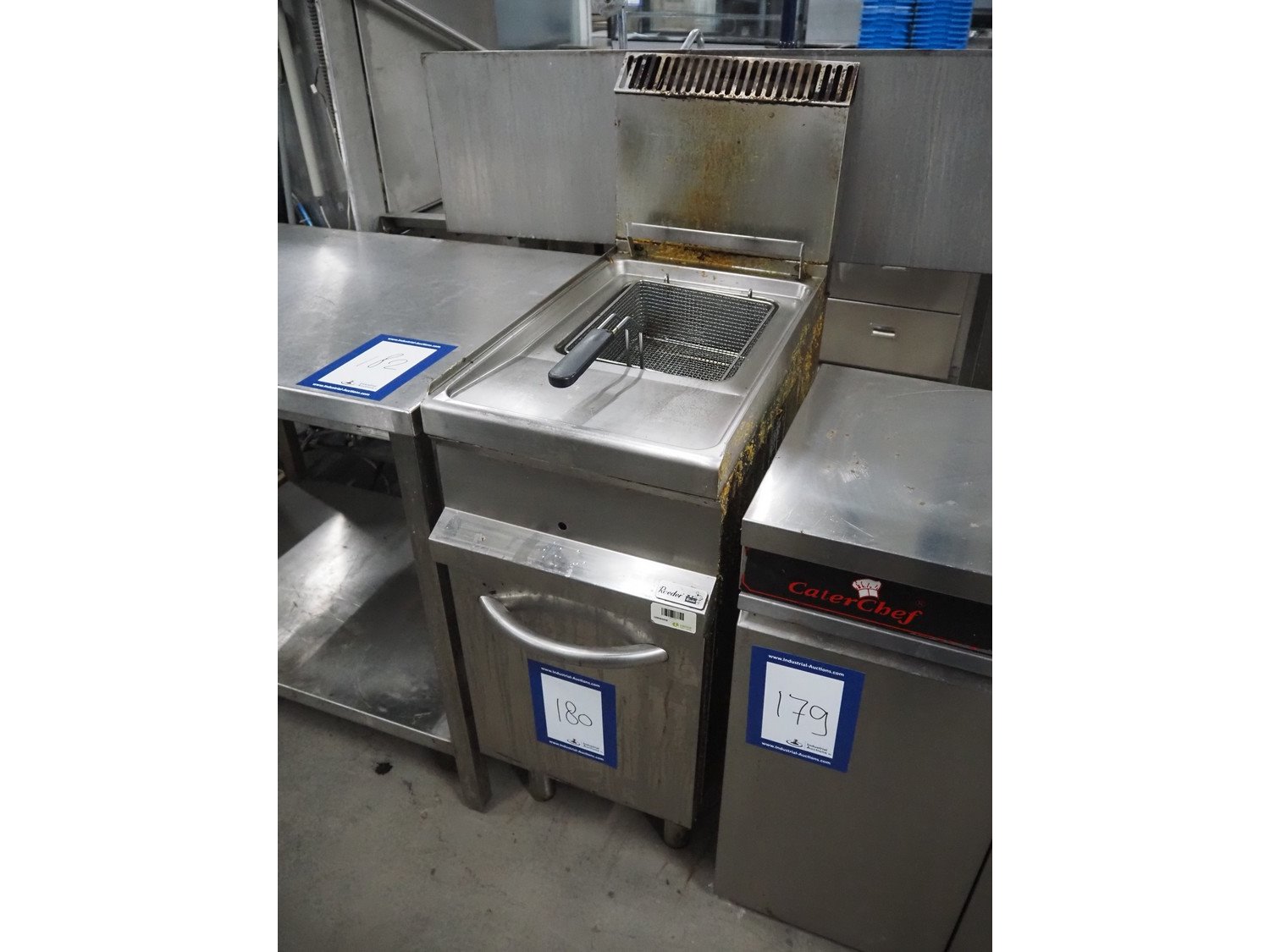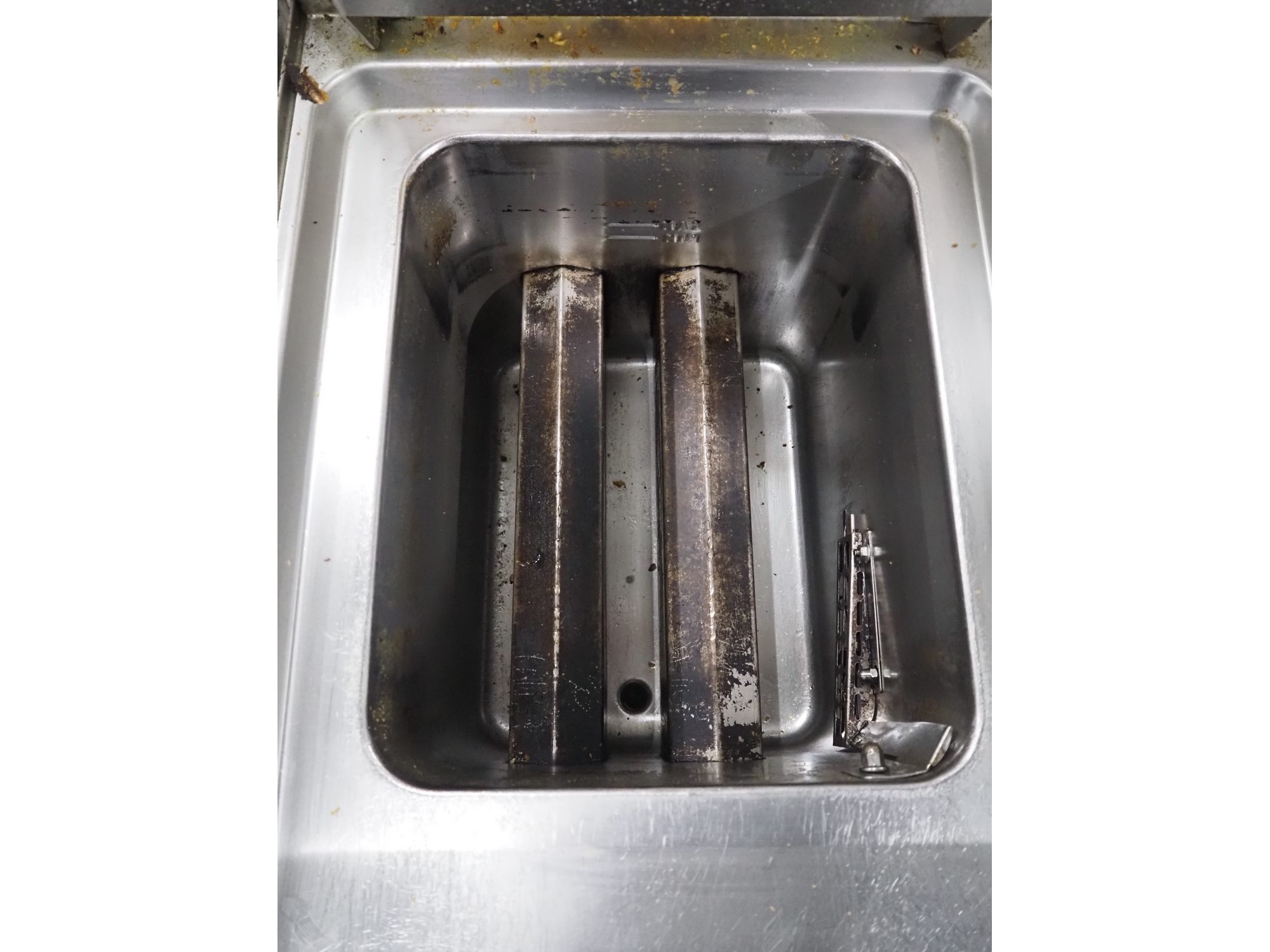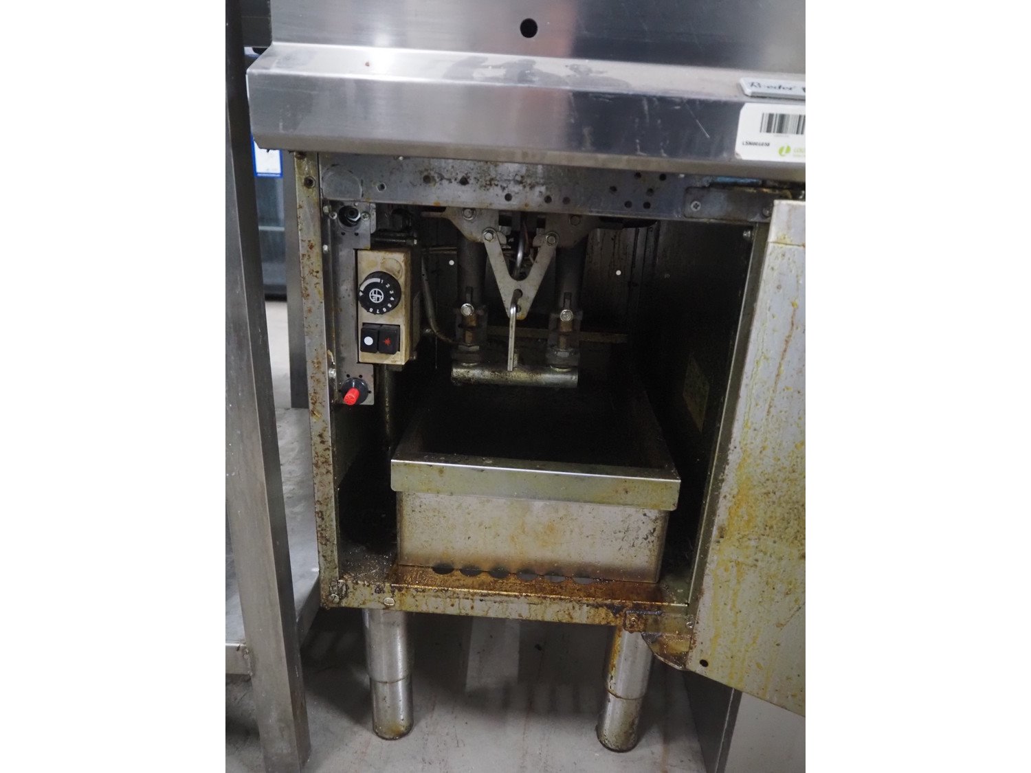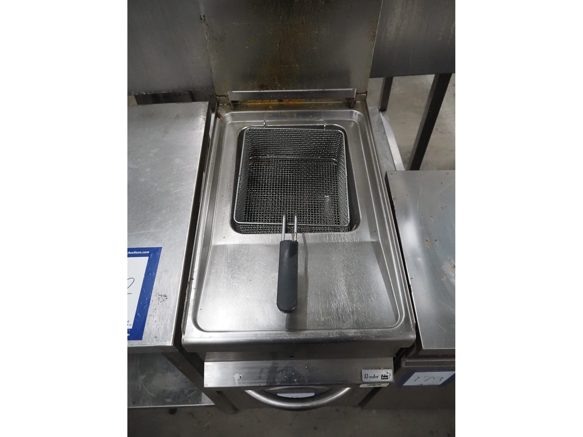 Roeder fryer, model: GF477, inside dimensions: 280 mm x 340 mm x 300 mm, total dimensions: 400 mm x 750 mm x 1270 mm.