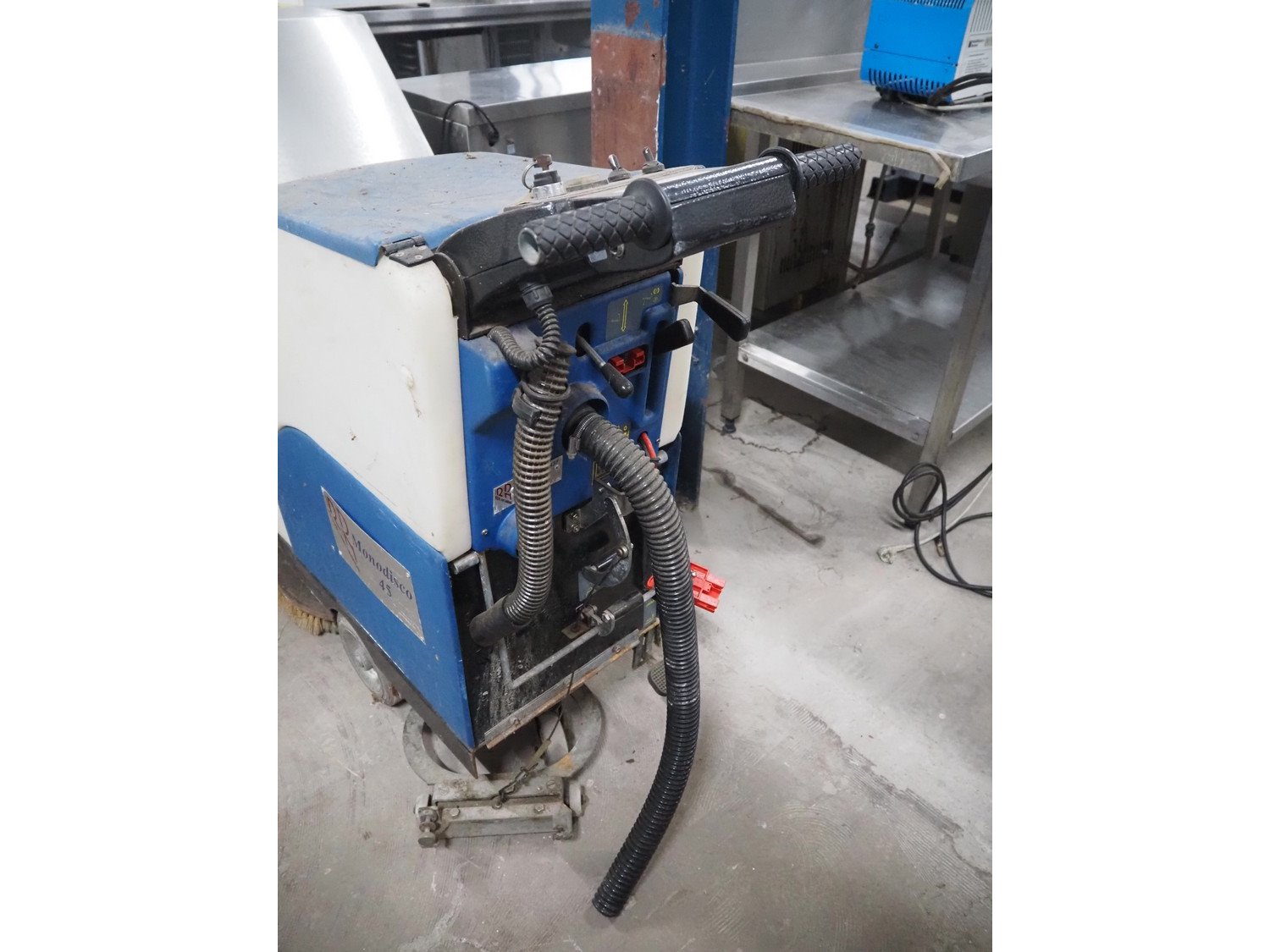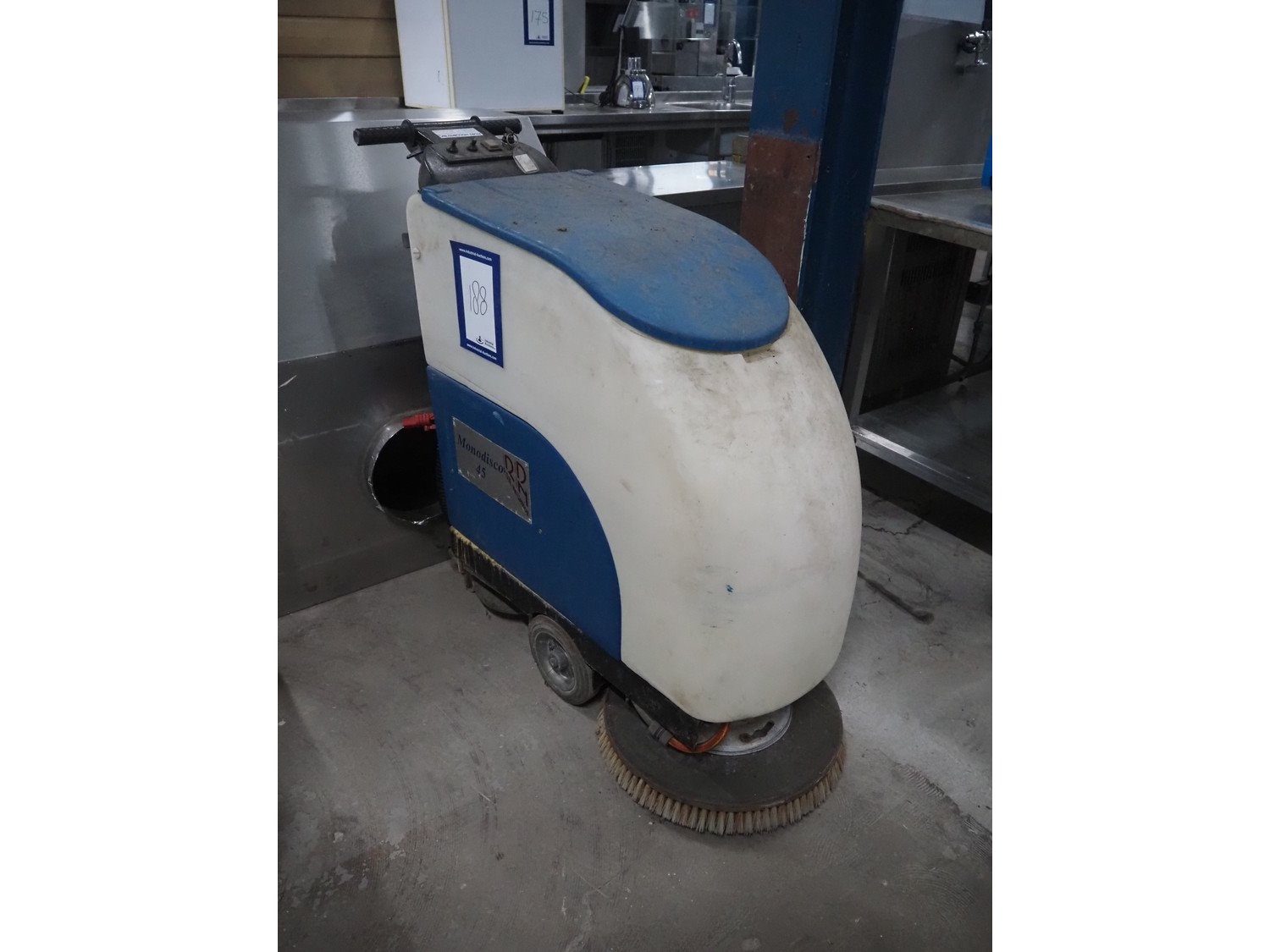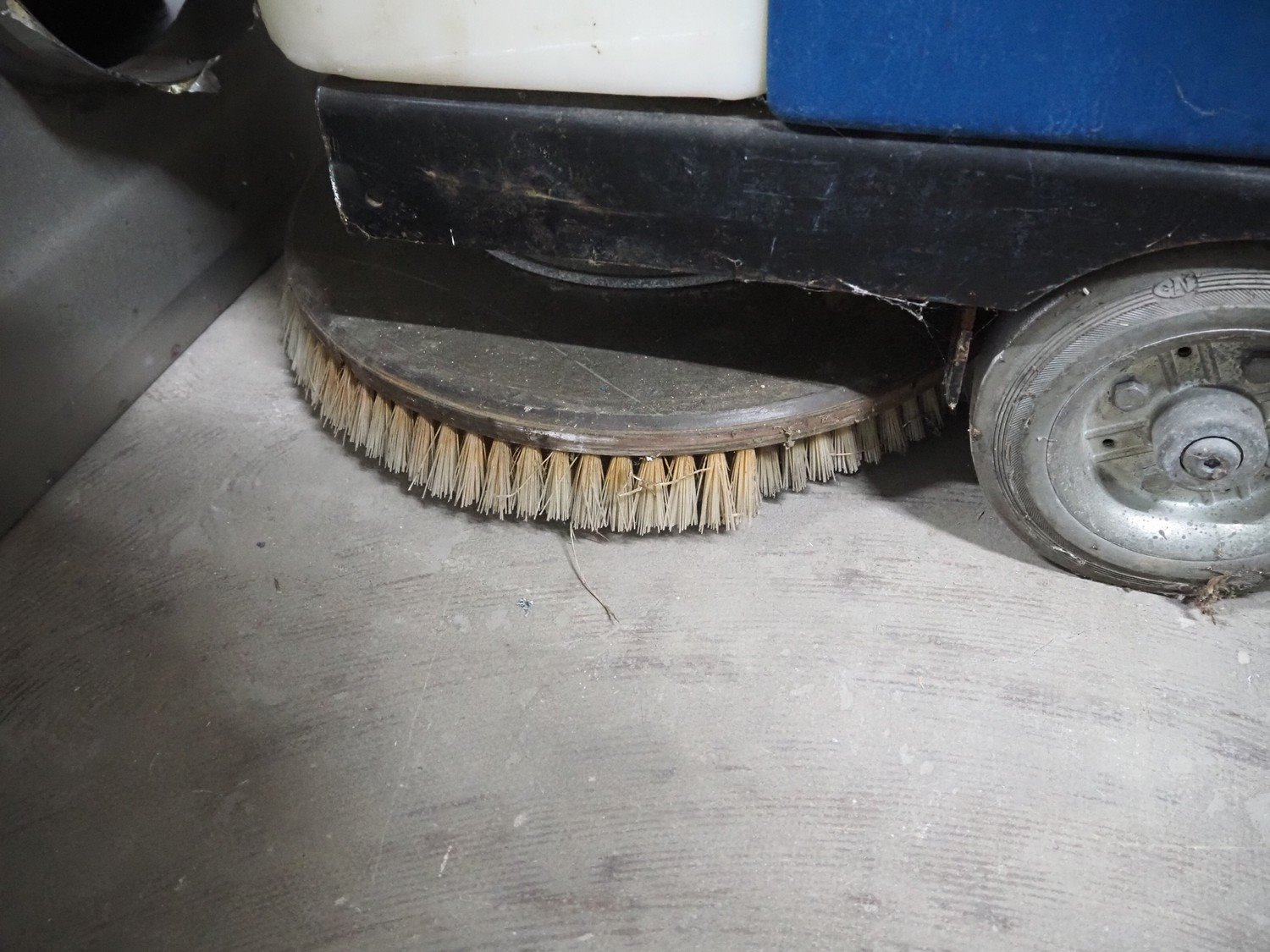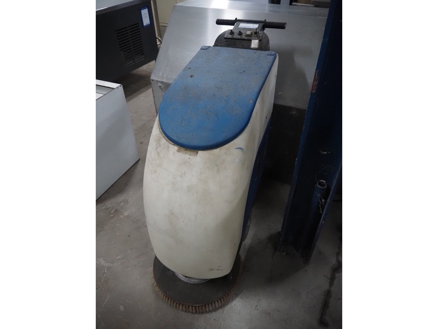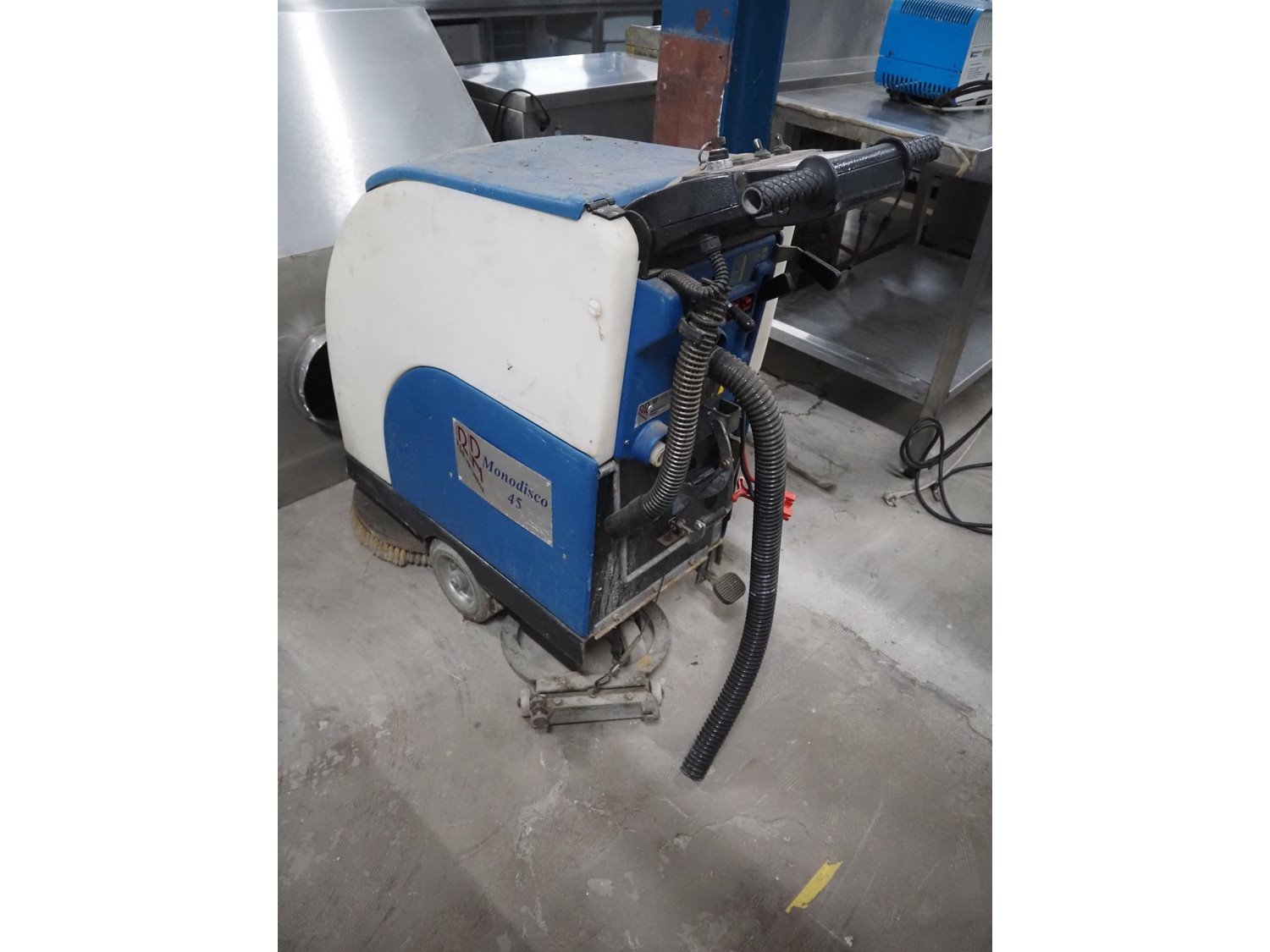 Monodisco floor scrubbing machine, diameter brush: Ø 400 mm, total dimensions: 1100 mm x 400 mm x 1050 mm. Including charger, type: E 24/17, serial number: 36316/0/0009/02/5, 230 V, 1 Ph, 50 Hz, 3.6 A. Missing the sweeping brush and technical condition unknown.