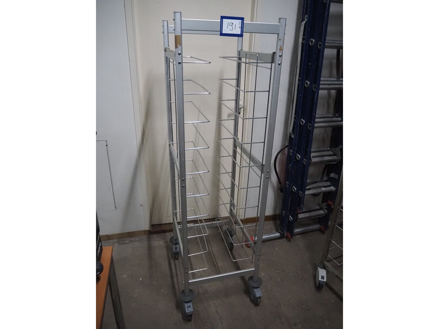 S/s trolley, 10 floors, floor dimensions: (10x) 470 mm x 400 mm, total dimensions: 560 mm x 470 mm x 1660 mm.