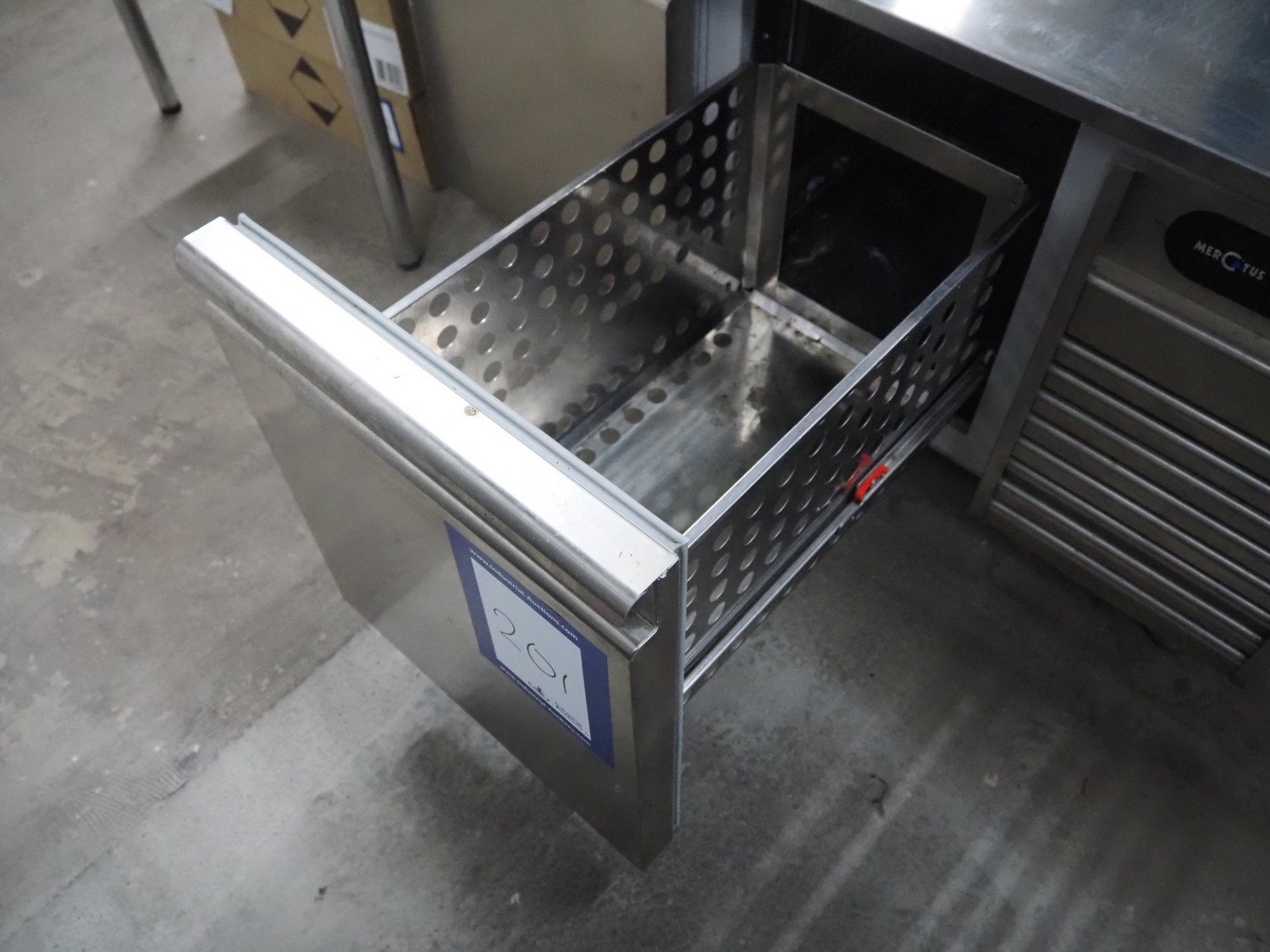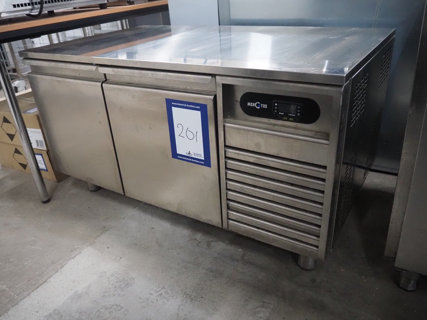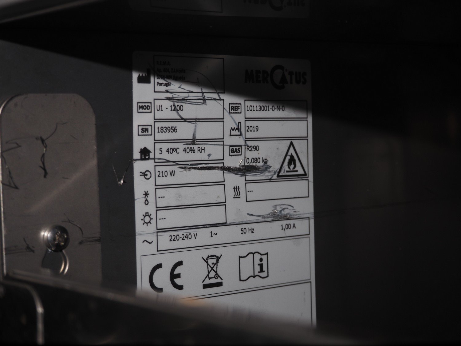 Mercatus refrigerated counter, model: U1-1200, serial number: 183956, year of construction: 2019, 220-240 V, 1 Ph, 50 Hz, 1 A, 210 W, refrigerant: R290/0.080 kg, dimensions: 1200 mm x 700 mm x 670 mm.