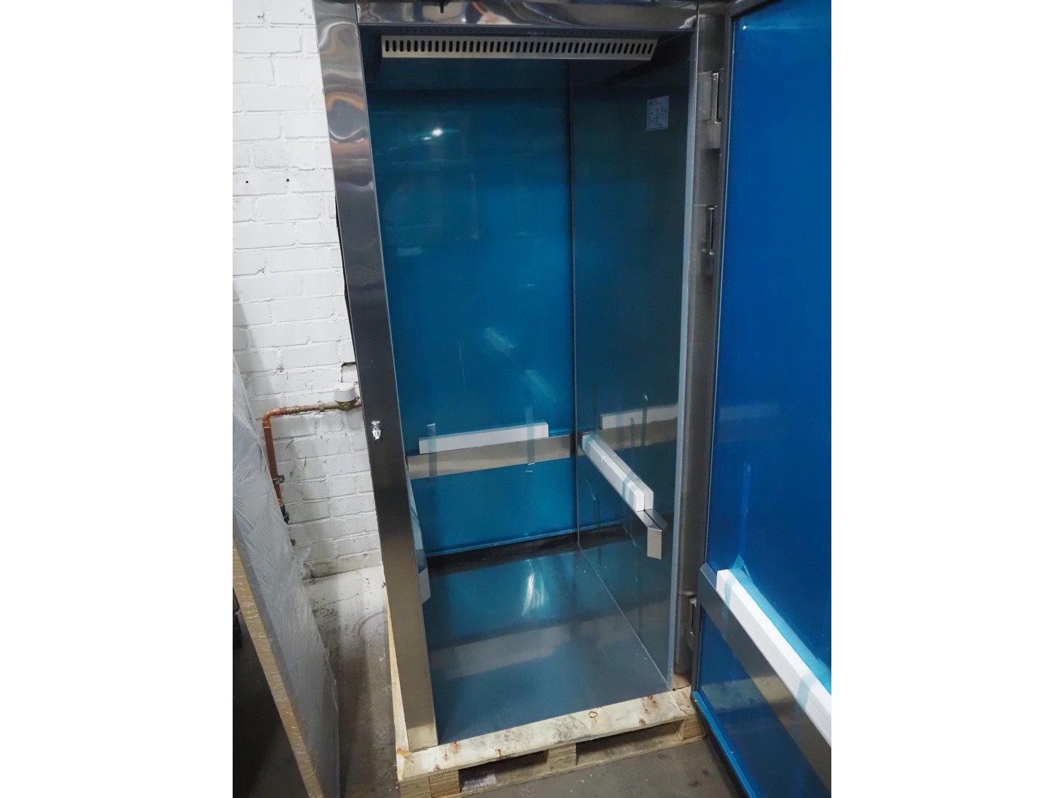 Saro Gastro-Products GmbH drive-in refrigerator, model: RT1, serial number: 23006122, 220-240 V, 50 Hz, 2 A, 300 W, weight: 158 kg, refrigerant: R290 / 0.105 kg, temperature range: 2-10°C, inside dimensions: 800 mm x 650 mm x 1750 mm, total dimensions: 1120 mm x 880 mm x 2200 mm.