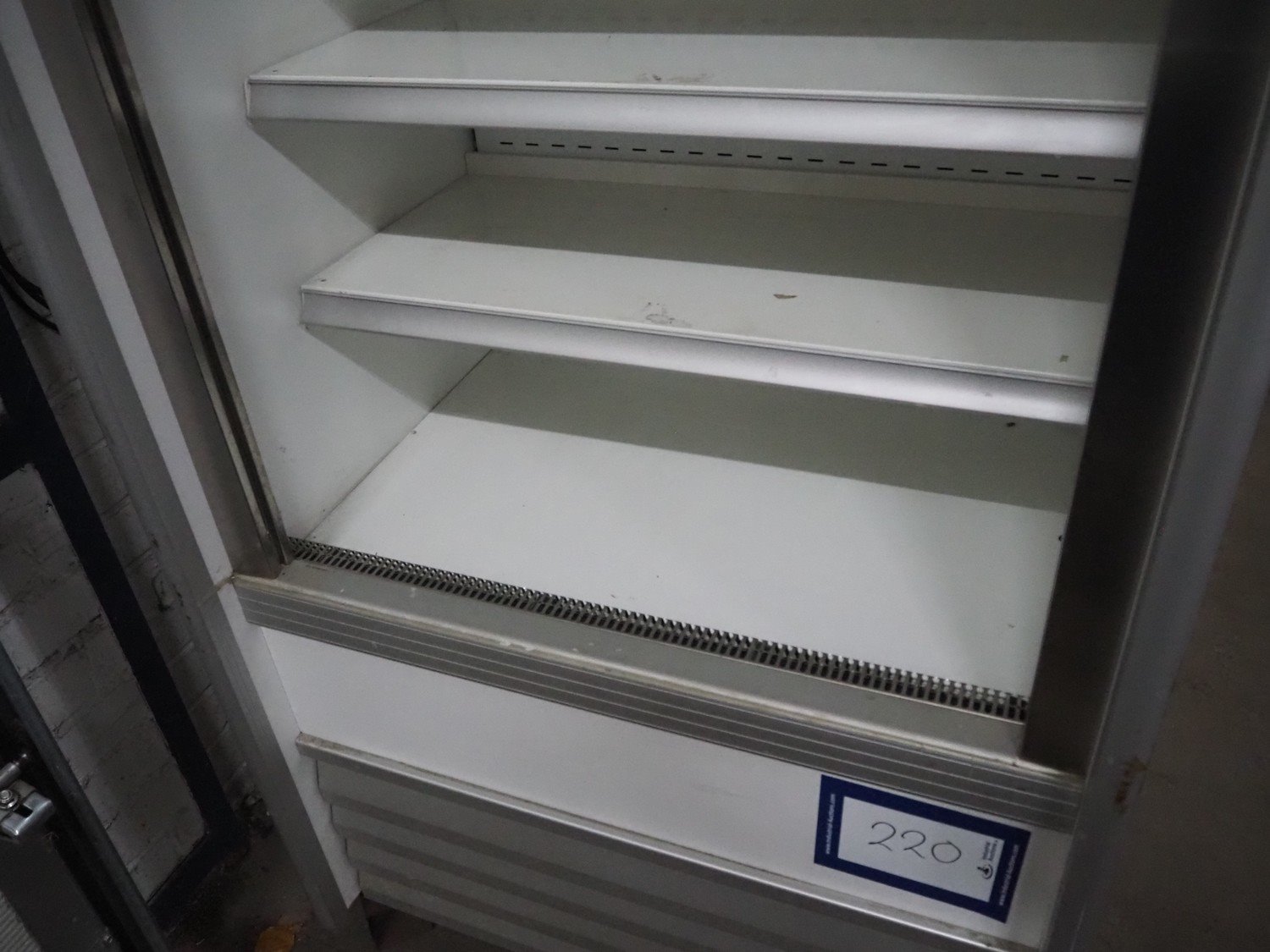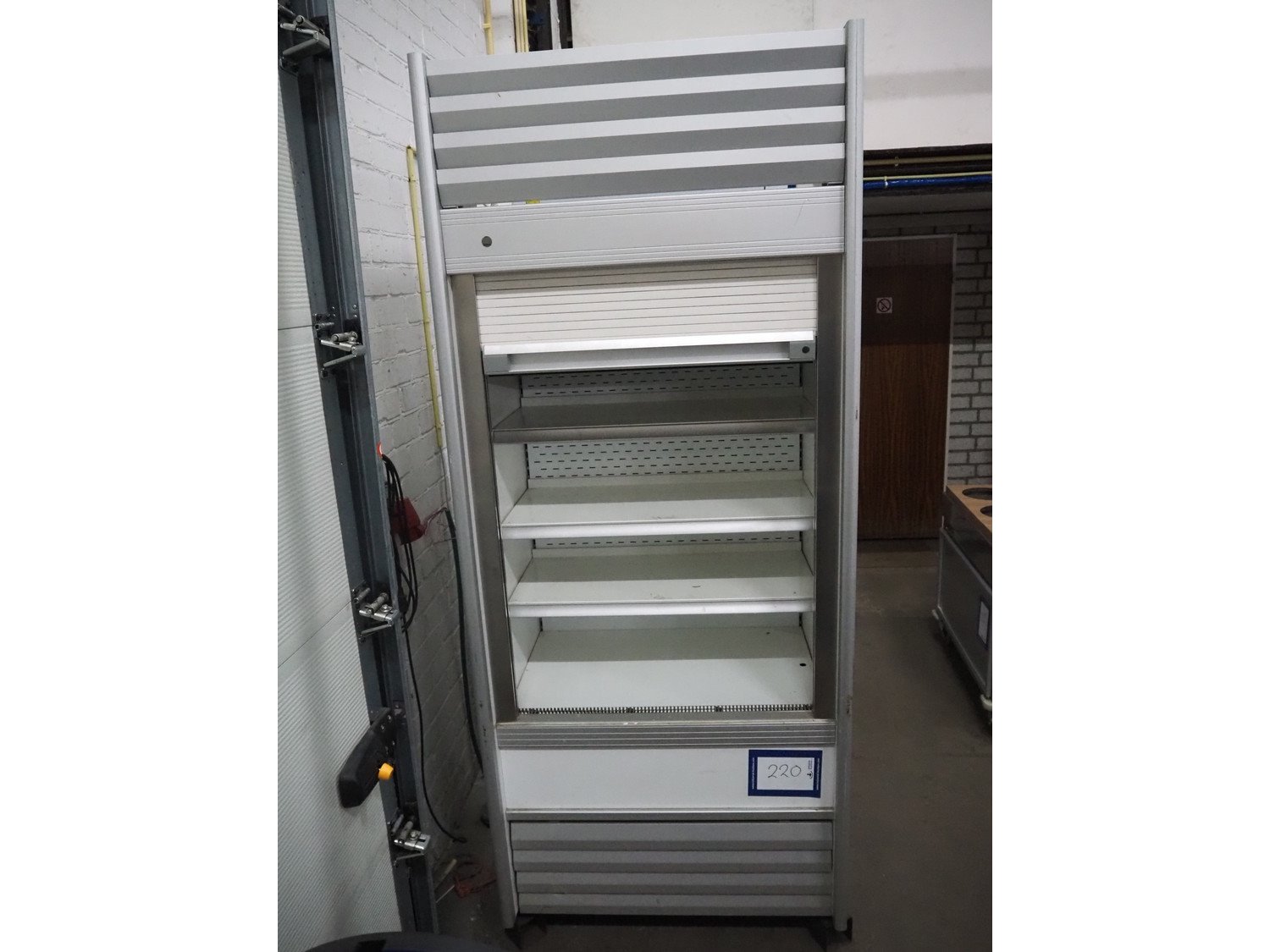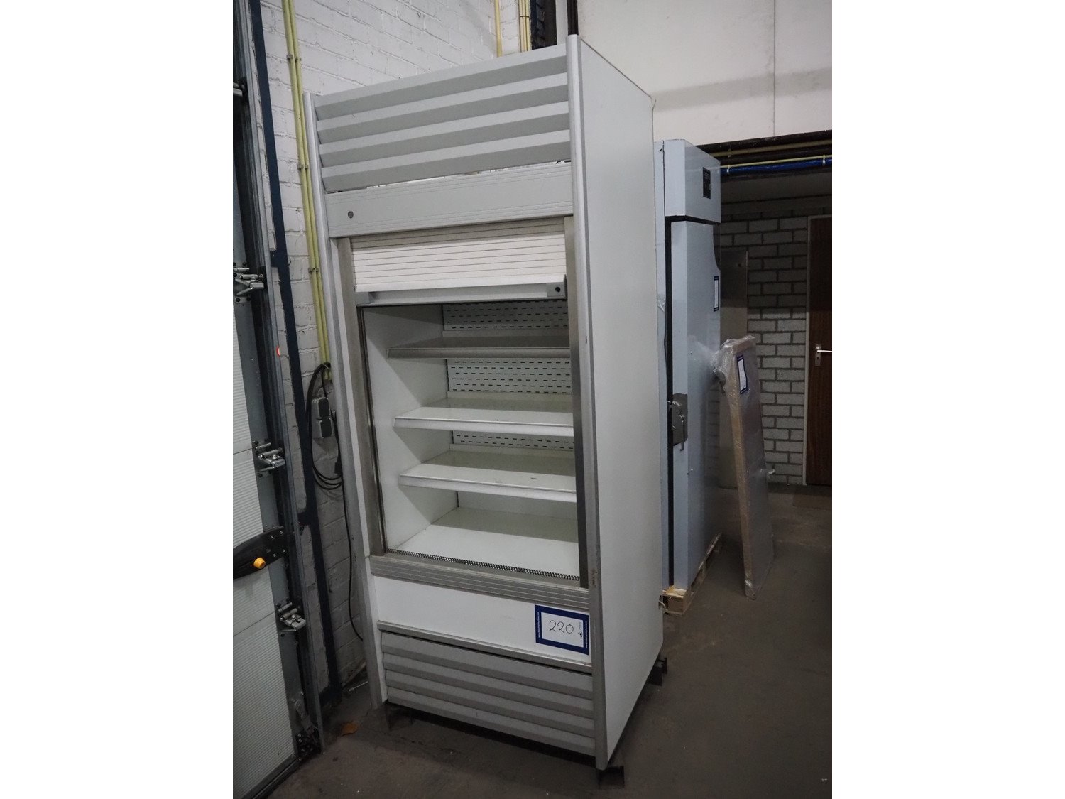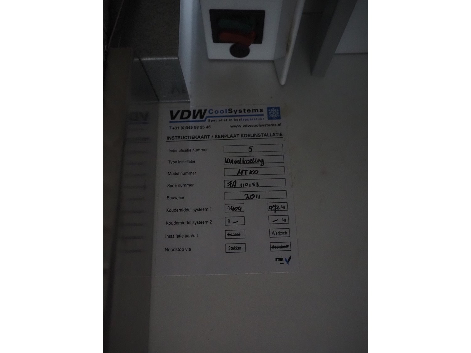 VDW CoolSystems refrigerated showcase, type: Wandkoeling, model: MT100, serial number: FA 110153, year of construction: refrigerant: R404/0.72 kg, 4 floors, floor dimensions: (4x) 900 mm x 400 mm, total dimensions: 970 mm x 830 mm x 2400 mm.