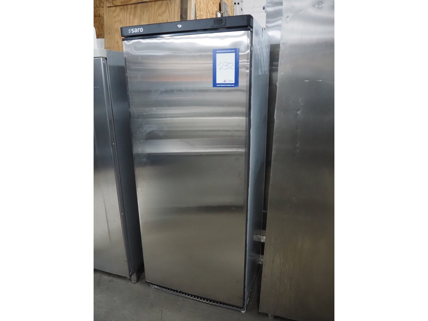 Saro Gastro-Products GmbH refrigerator, model: HK 601 S/S (456-3005), serial number: 4312407060012, 220-240 V, 50 Hz, 1 A, 140 W, refrigerant: R600A/0.070 kg, volume: 473 liter, weight: 78.5 kg, 5 floors, floor dimensions: (5x) 670 mm x 520 mm, total dimensions: 780 mm x 700 mm x 1910 mm.