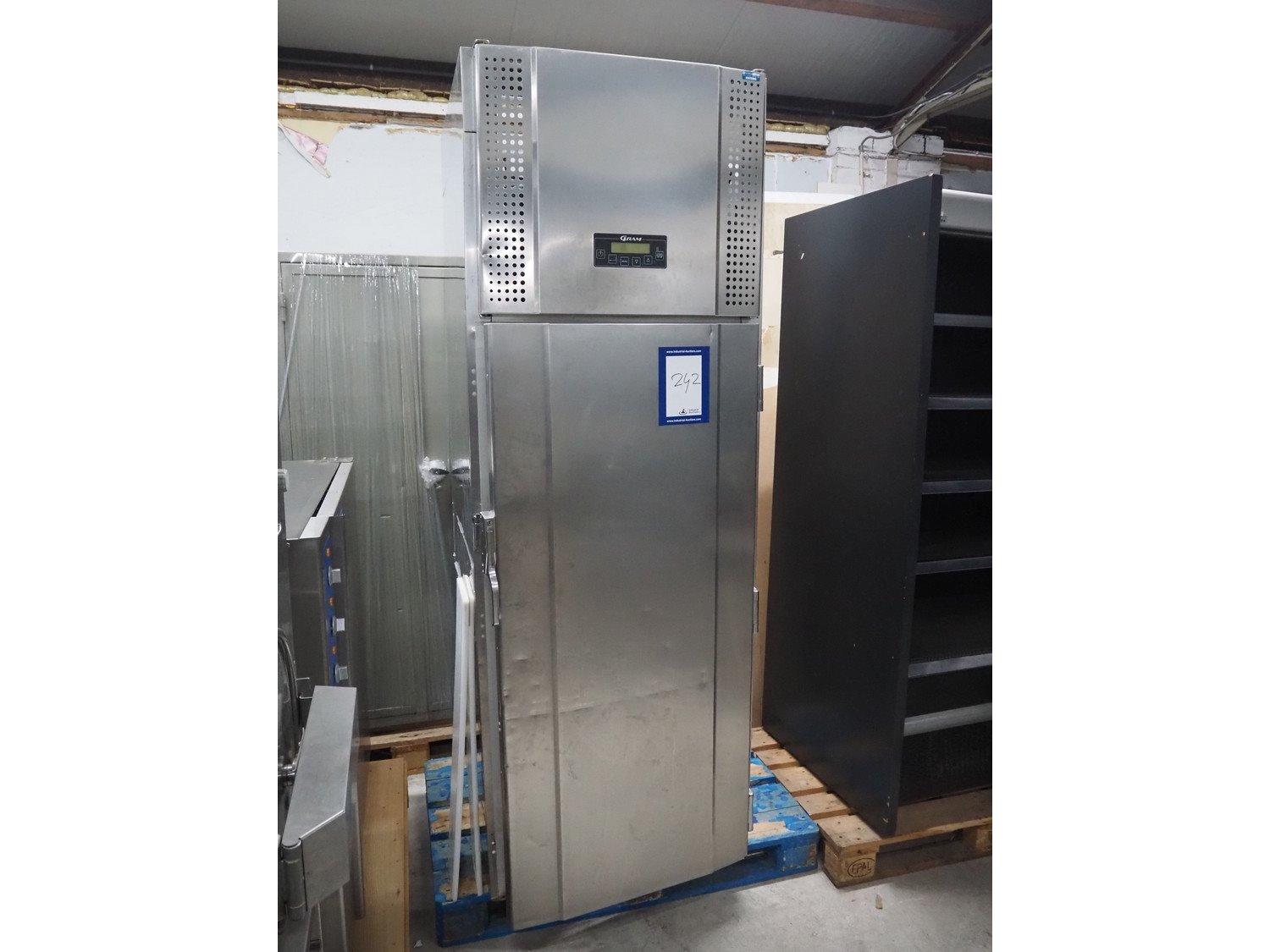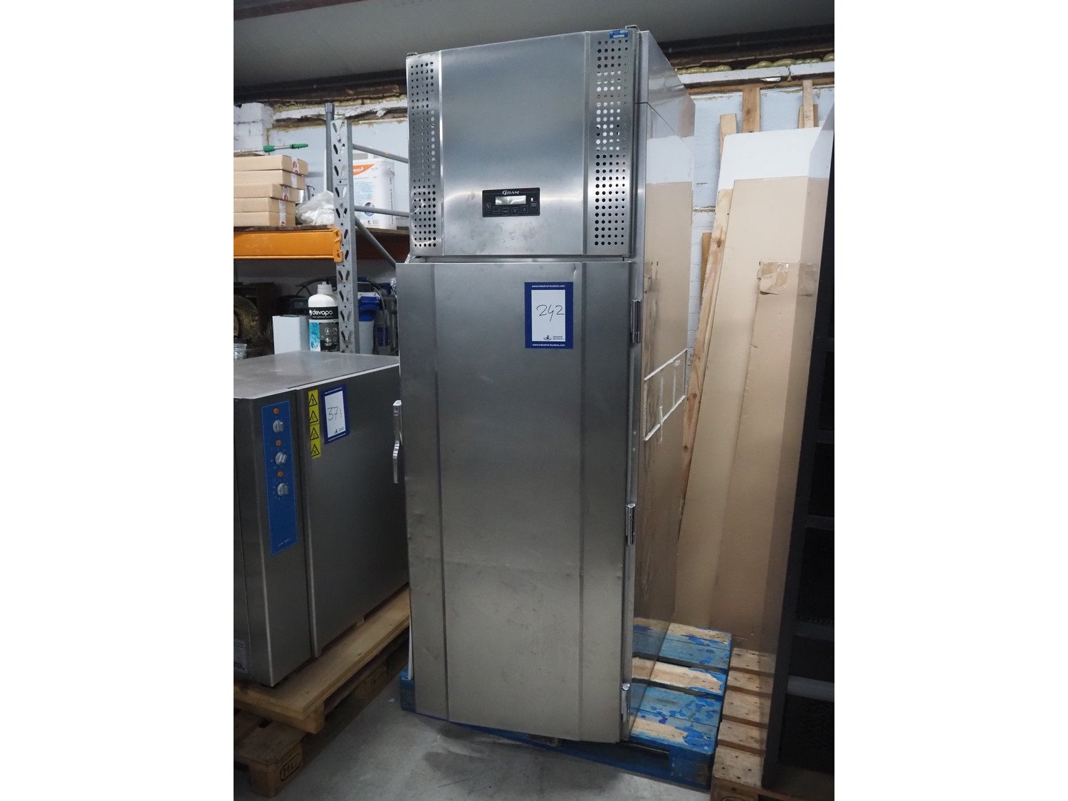 Gram blast chiller, type: KPS 60 CH CW, serial number: 257, 400 V, 50 Hz, 11.64 A, 2331 W, refrigerant: R404A, inside dimensions: 460 mm x 760 mm x 1550 mm, total dimensions: 800 mm x 1020 mm x 2250 mm.