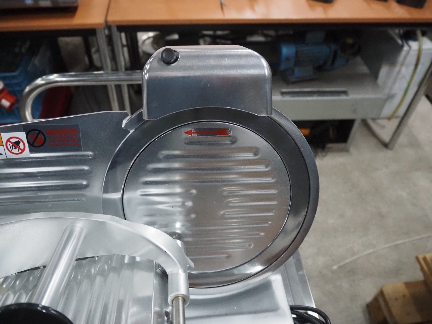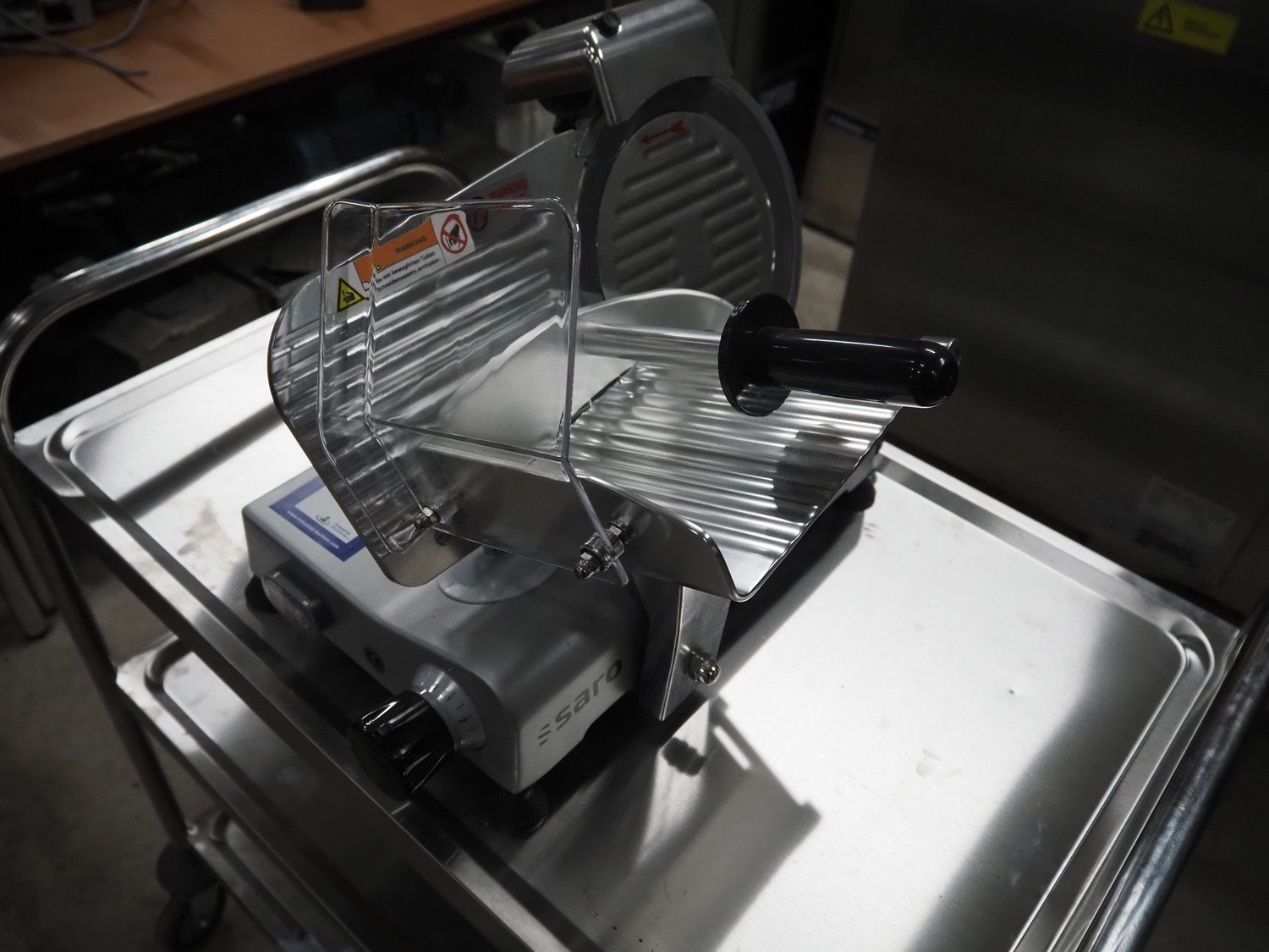 Saro Gastro-Products GmbH slicer, type: IVORNO/418-1003, serial number: 210820020, year of construction: 10.08.2021, 230 V, 1 Ph, 50 Hz, 1 A, 0.23 kW, dimensions: 500 mm x 400 mm x 360 mm.