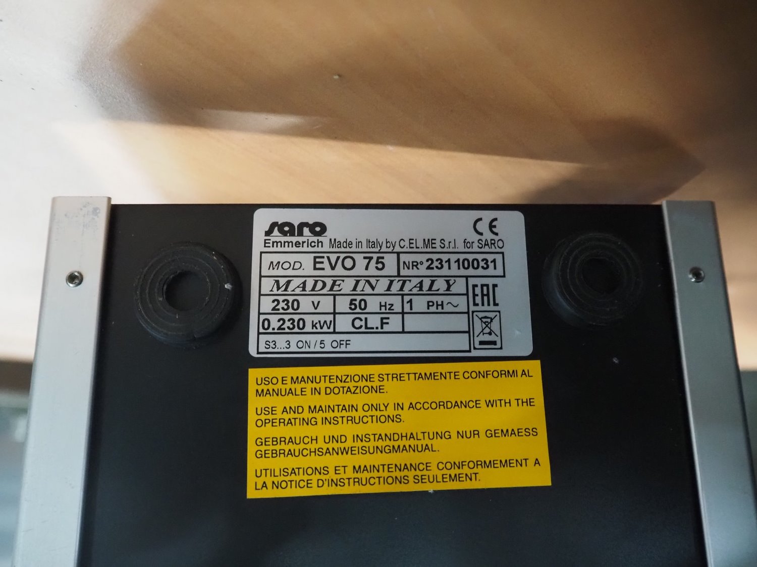 Saro Gastro Products grater, model: EVO 75, working width: 80 mm, dimensions: 240 mm x 160 mm x 260 mm.