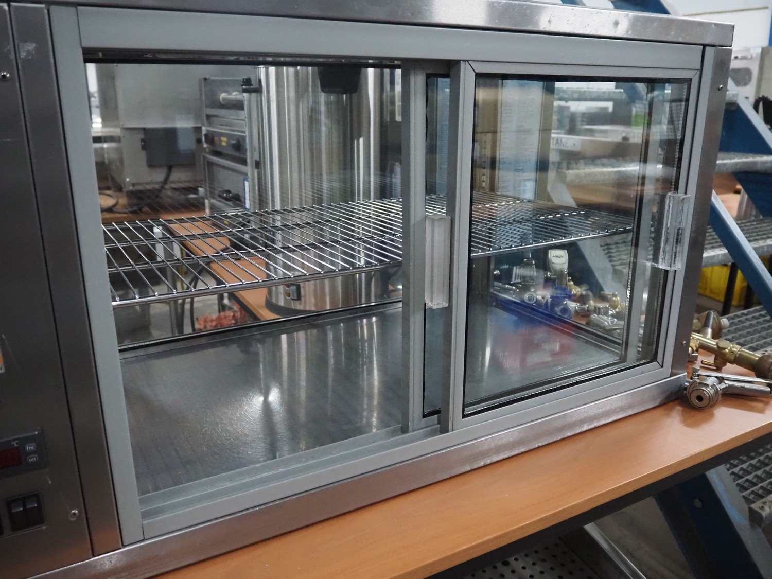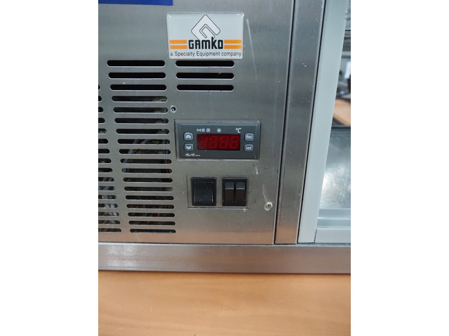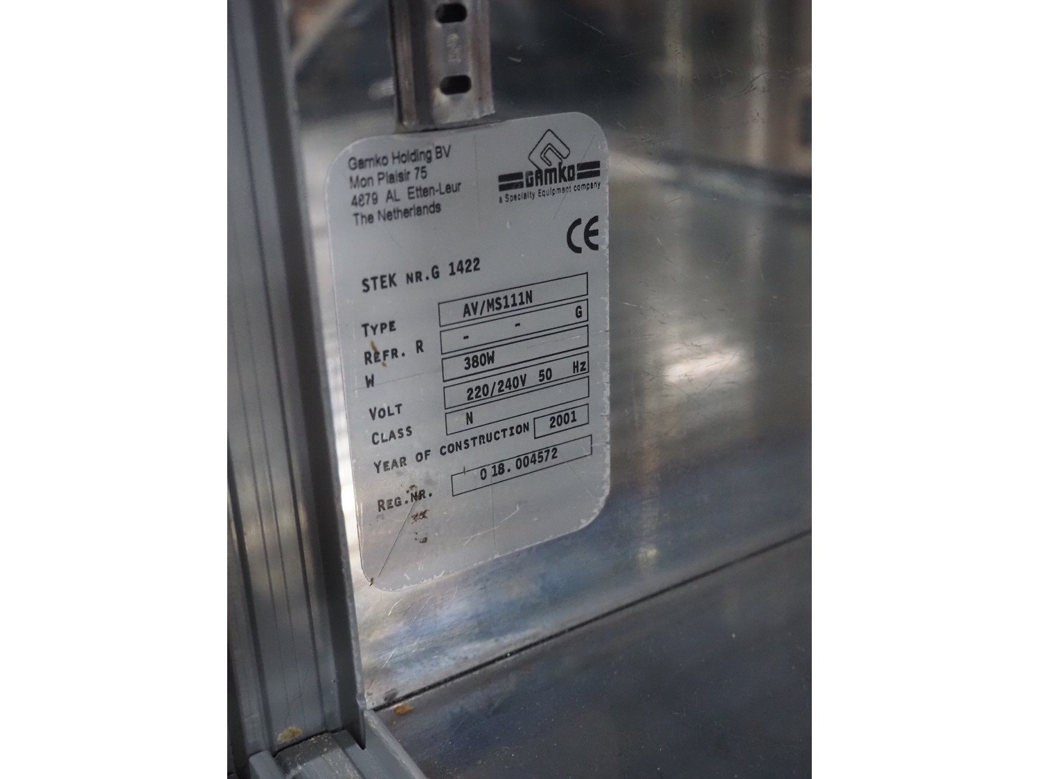 Gamko showcase, type: AV/MS111N, serial number: 018.004572, year of construction: 2001, 220/240 V, 50 Hz, 380 W, 1 floor, floor dimensions: 770 mm x 190 mm, dimensions: 1110 mm x 510 mm x 550 mm.