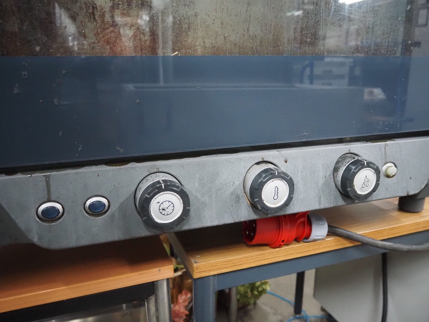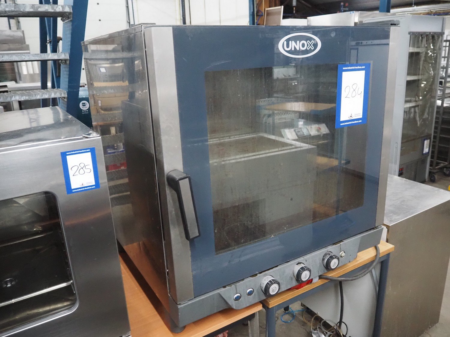 Unox combi steamer, model: XV593, serial number: 2015D0024742, year of construction: 2015, 400 V, 3 Ph, 50/60 Hz, weight: 100.9 kg, 7 floors, floor dimensions: (7x) 530 mm x 300 mm, total dimensions: 870 mm x 880 mm x 910 mm.