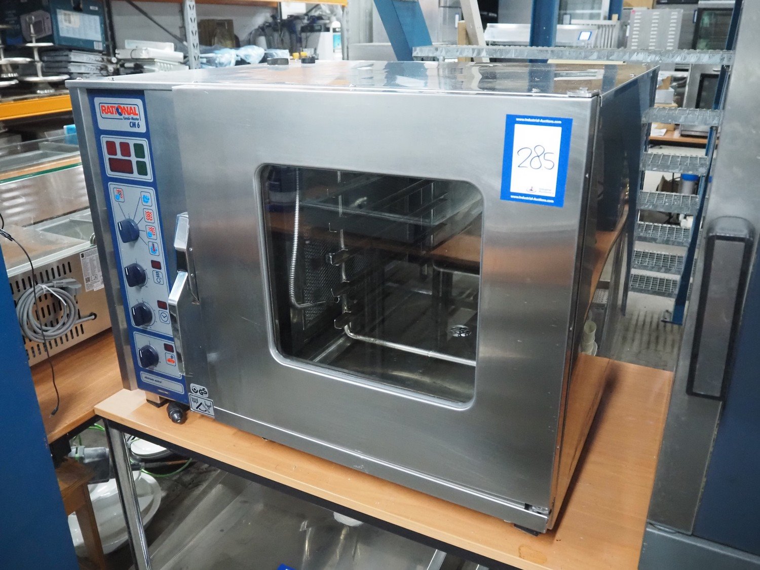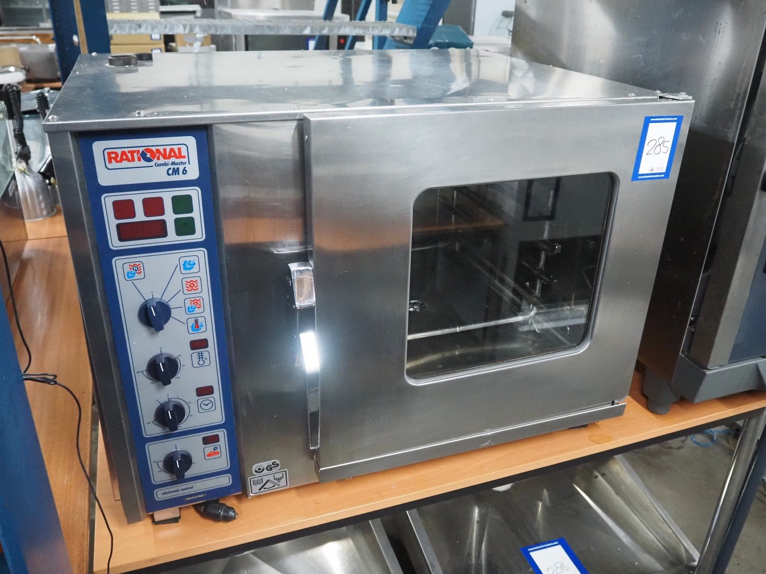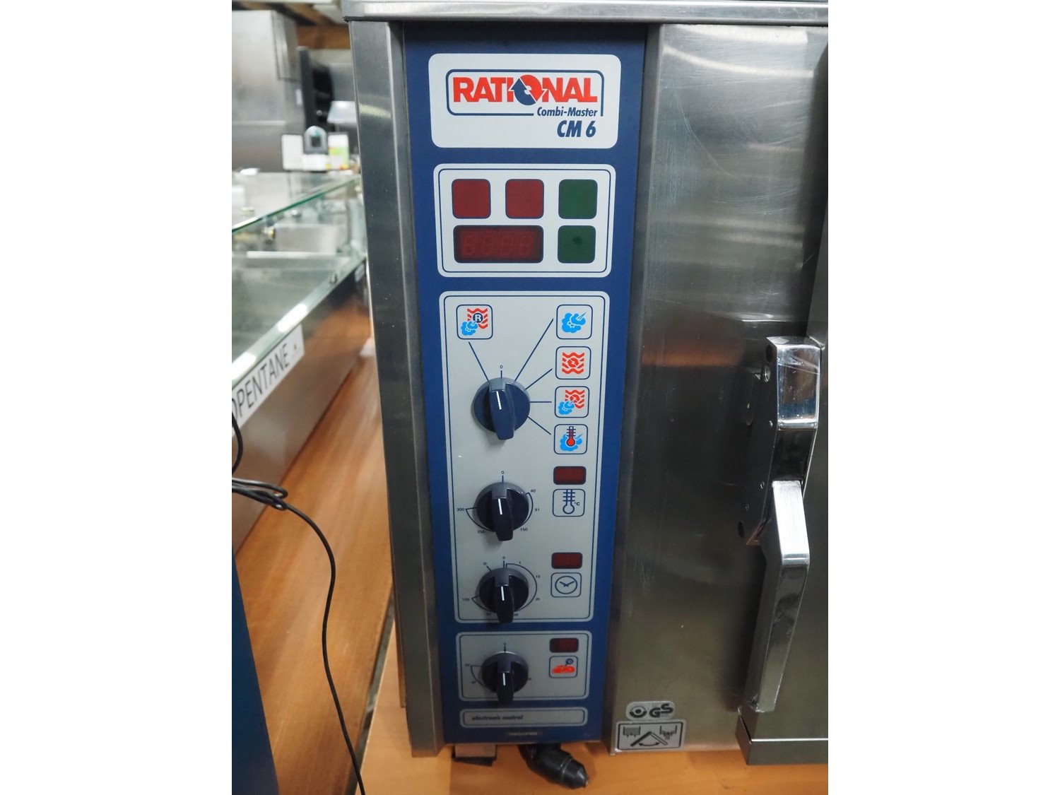 Rational combi steamer, type: CM 6, serial number: 06M 89061834, 380 V, 3 Ph, 50 Hz, 9.4 kW, 6 floors, floor dimensions: (6x) 330 mm x 500 mm, total dimensions: 900 mm x 760 mm x 660 mm.