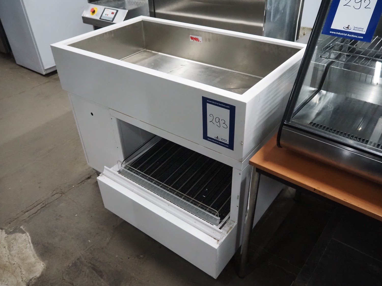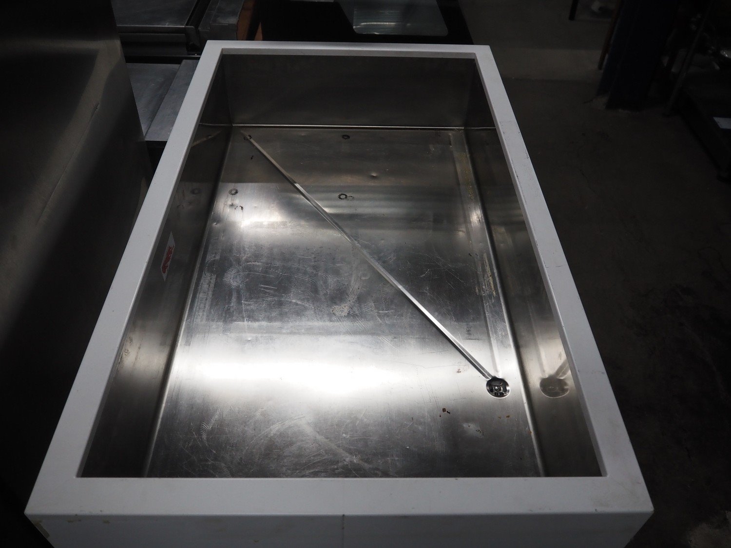 Container for crushed ice with compartment for cooling cans, inside dimensions: 1090 mm x 610 mm x 220 mm, total dimensions: 900 mm x 1180 mm x 960 mm.