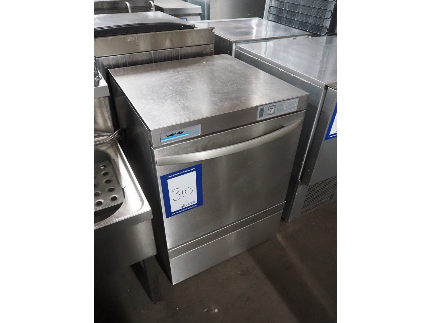 Winterhalter dishwasher, inside dimensions: 500 mm x 500 mm, total dimensions: 600 mm x 660 mm x 810 mm.