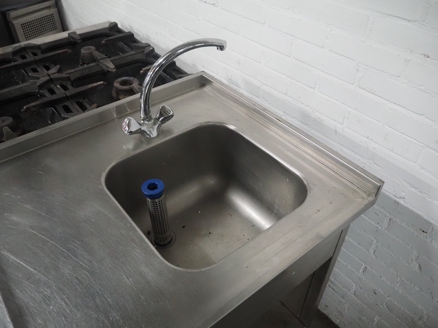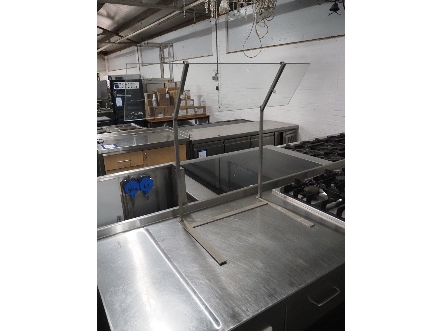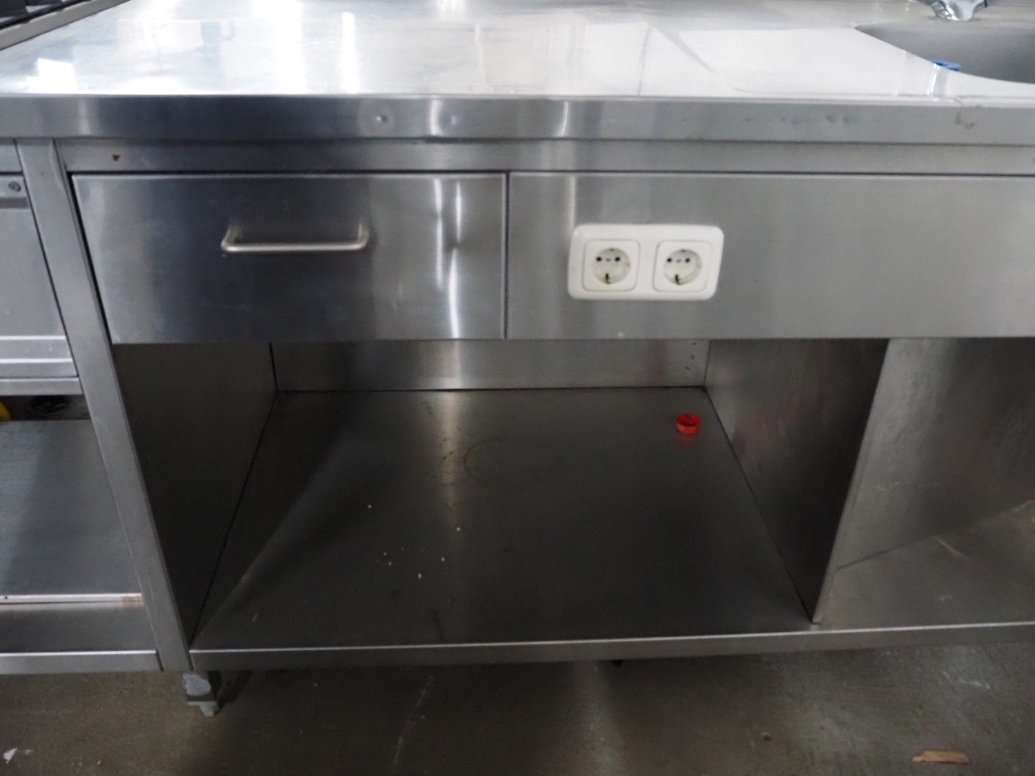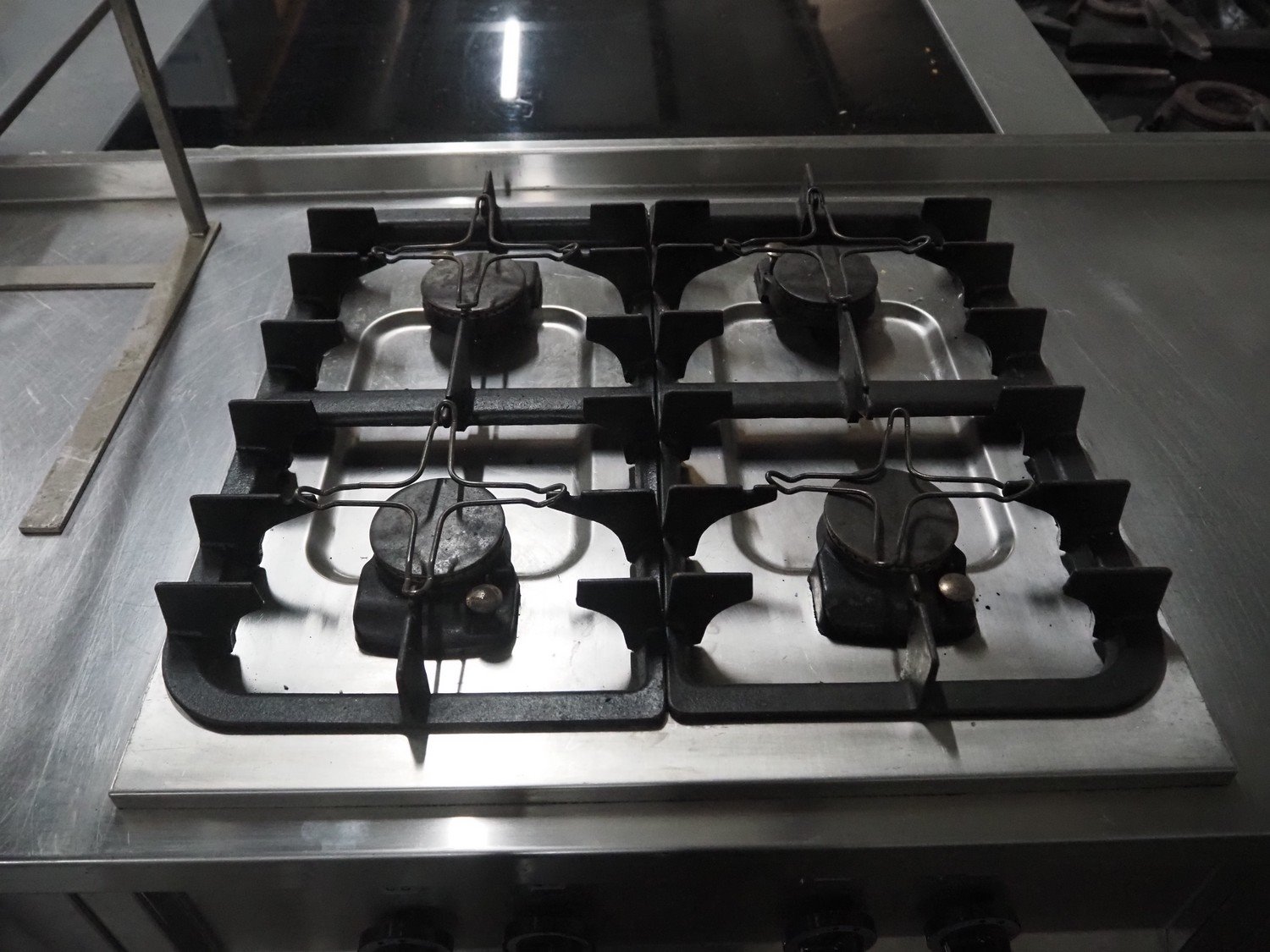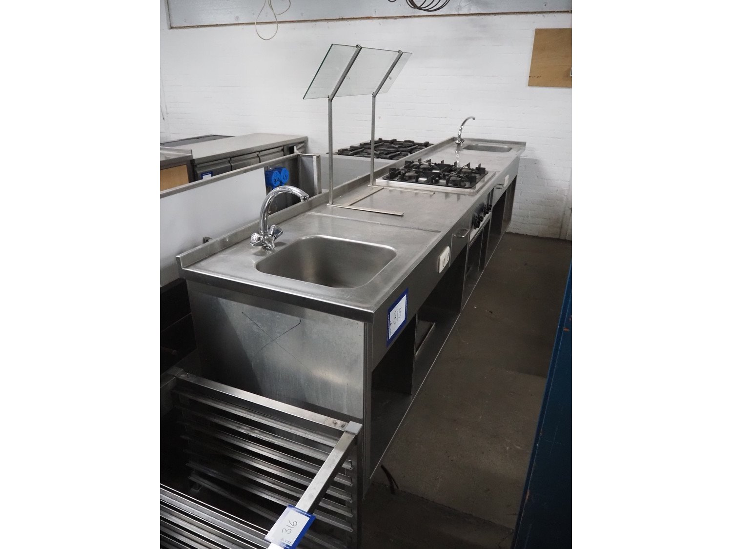 S/s work bench with 4-pits furnace and double sink, dimensions: 3600 mm x 700 mm x 950 mm.
