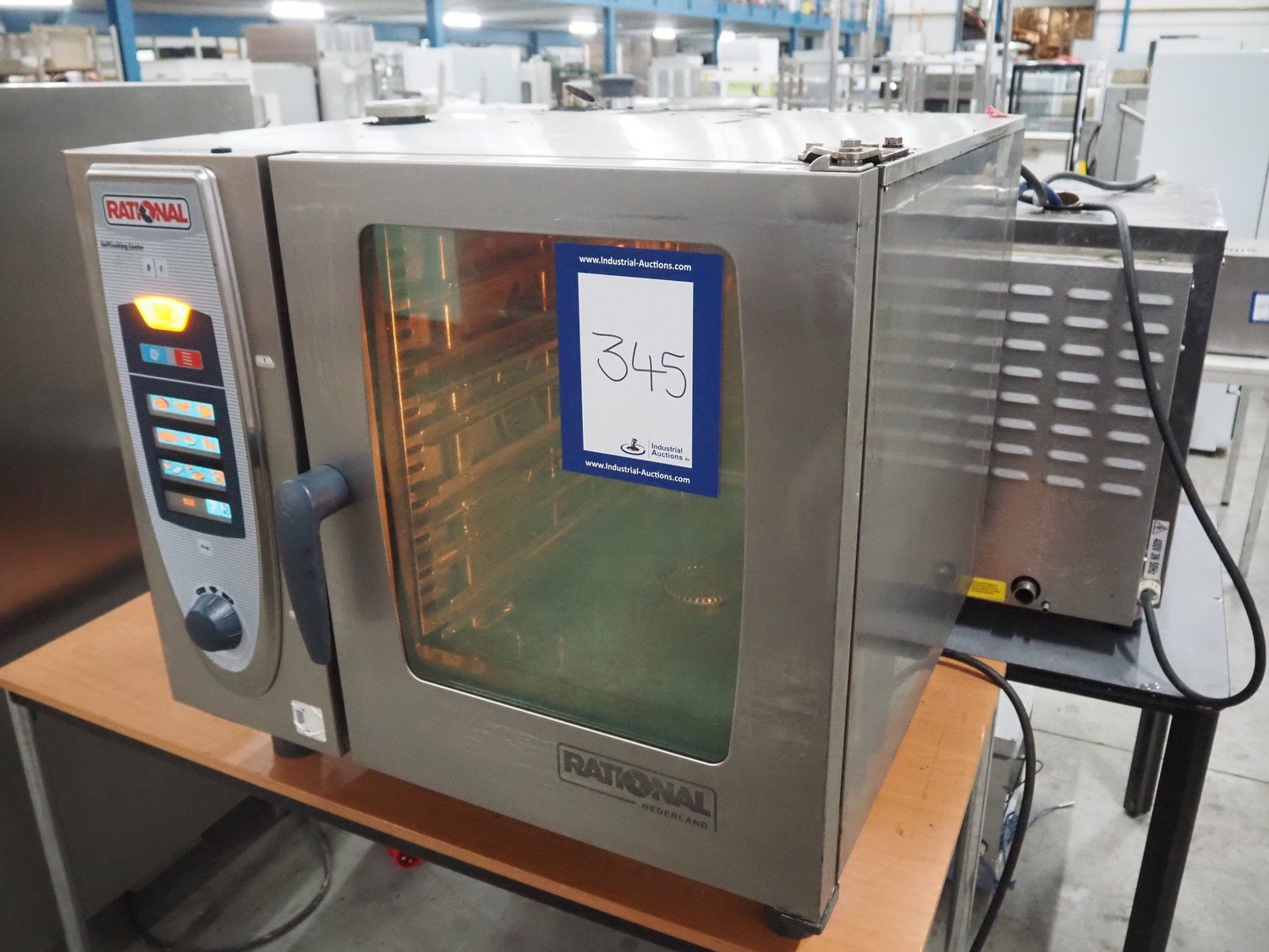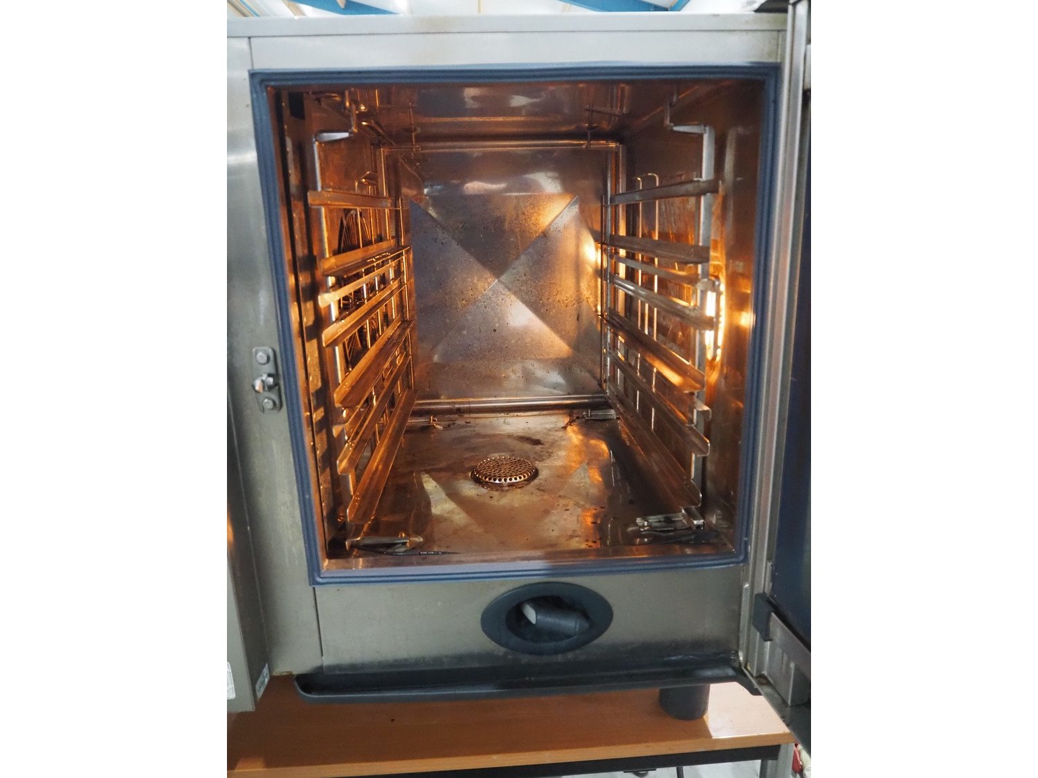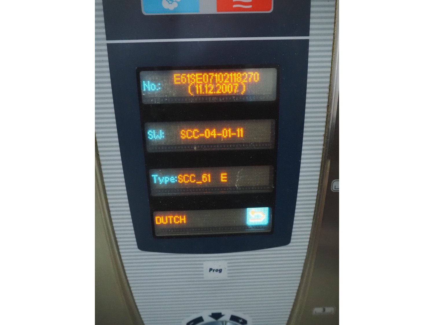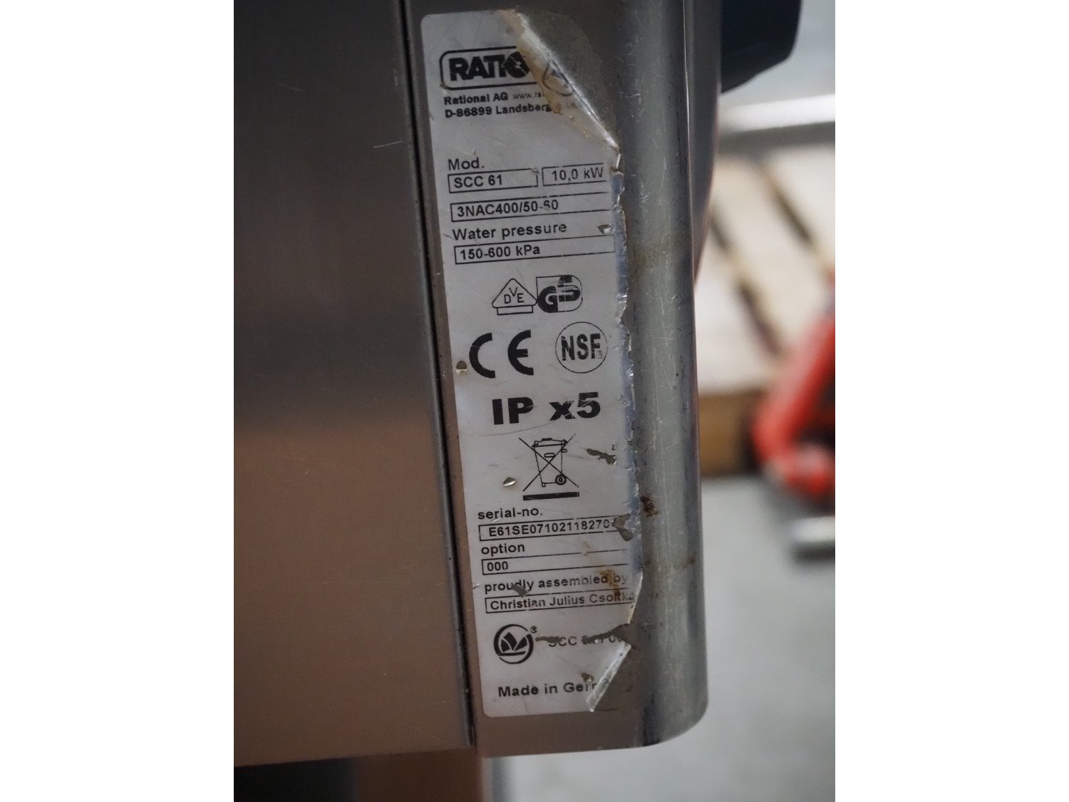 Rational combi steamer, model: SCC 61, serial number: E61SE07102118270, year of construction: 2007, 400 V, 3 Ph, 50-60 Hz, 6 floors, floor dimensions: (6x) 400 mm x 580 mm, total dimensions: 850 mm x 830 mm x 830 mm.