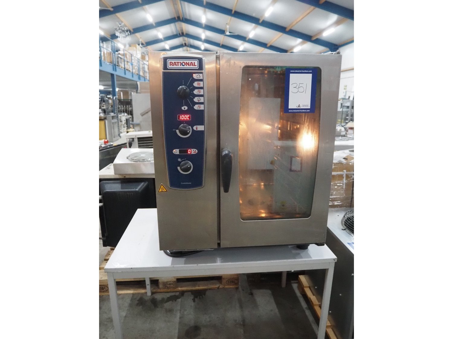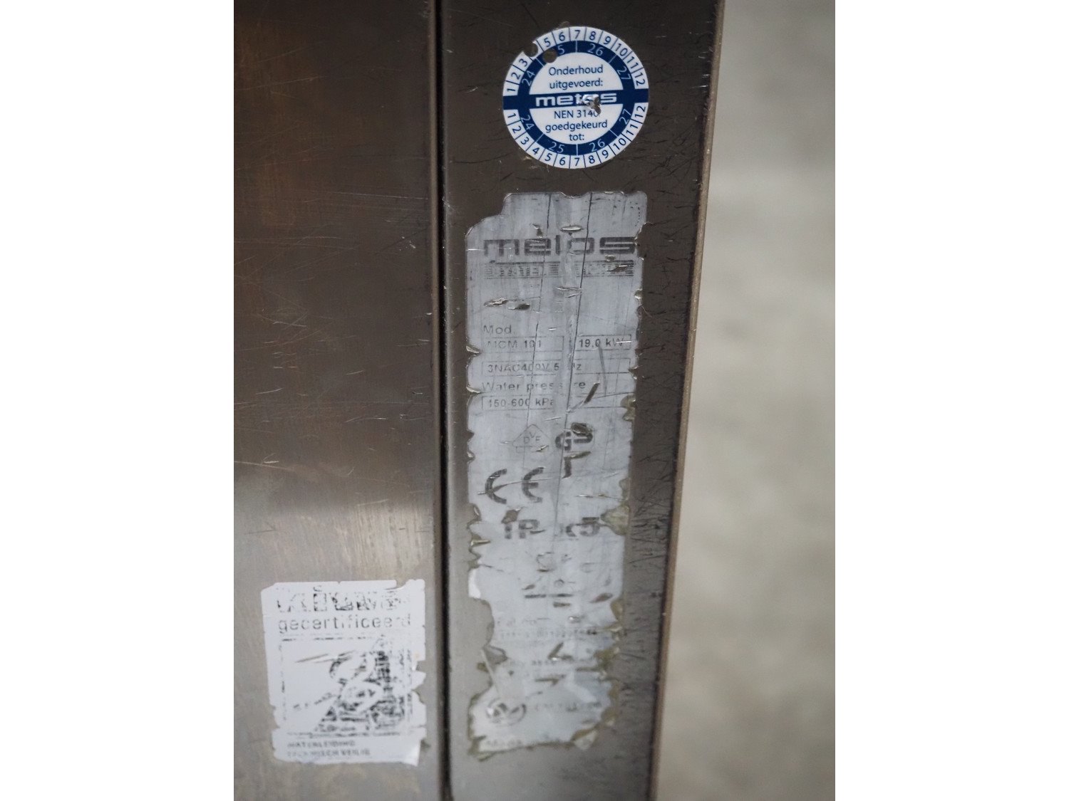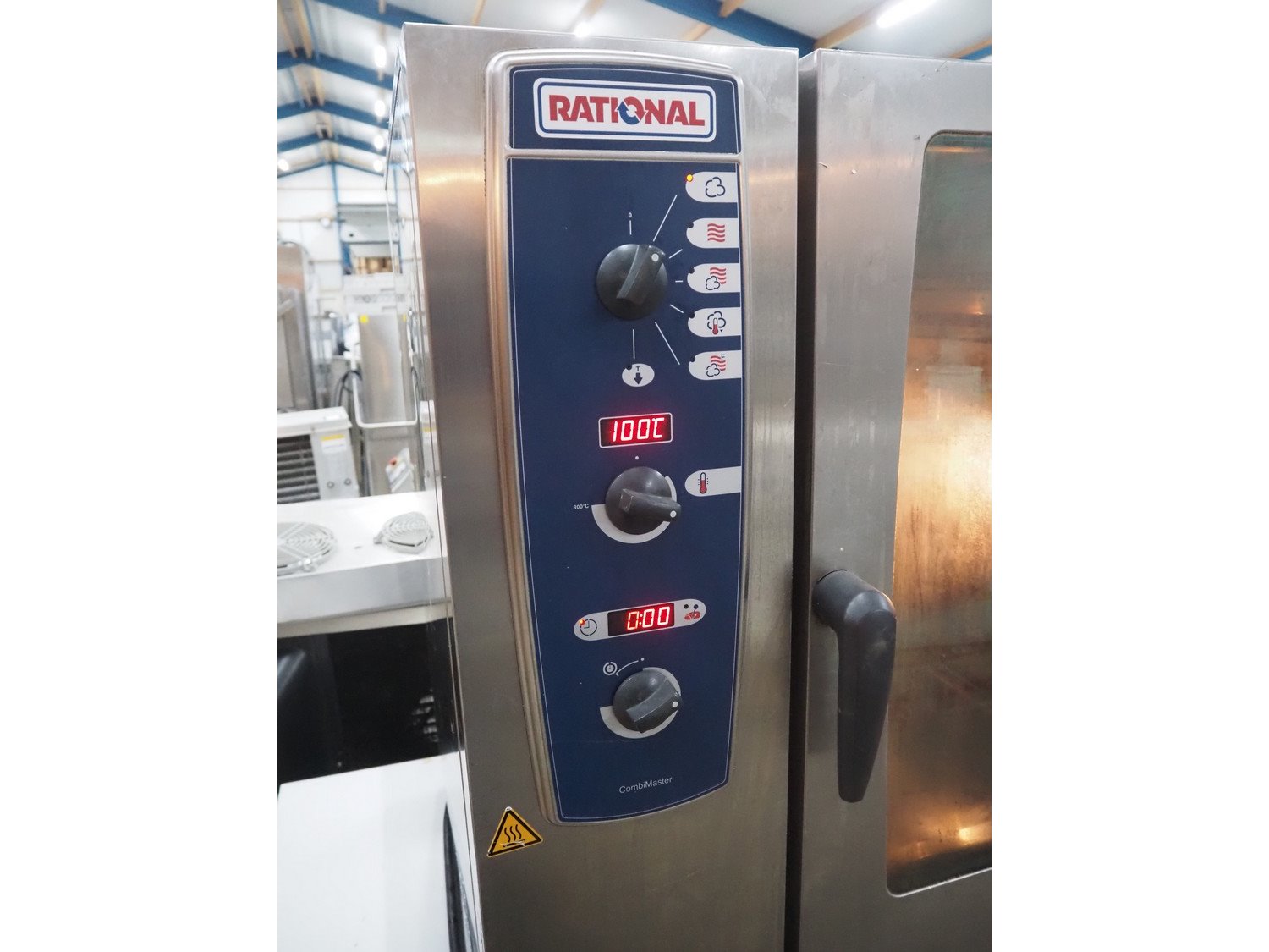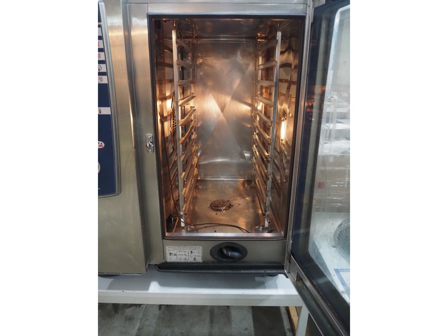 Rational combi steamer, type: MCM 101, 400 V, 3 Ph, 50/60 Hz, 19.0 kW, water pressure: 150–600 kPa, 10 floors, floor dimensions: (10x) 330 mm x 530 mm, total dimensions: 850 mm x 800 mm x 1050 mm.