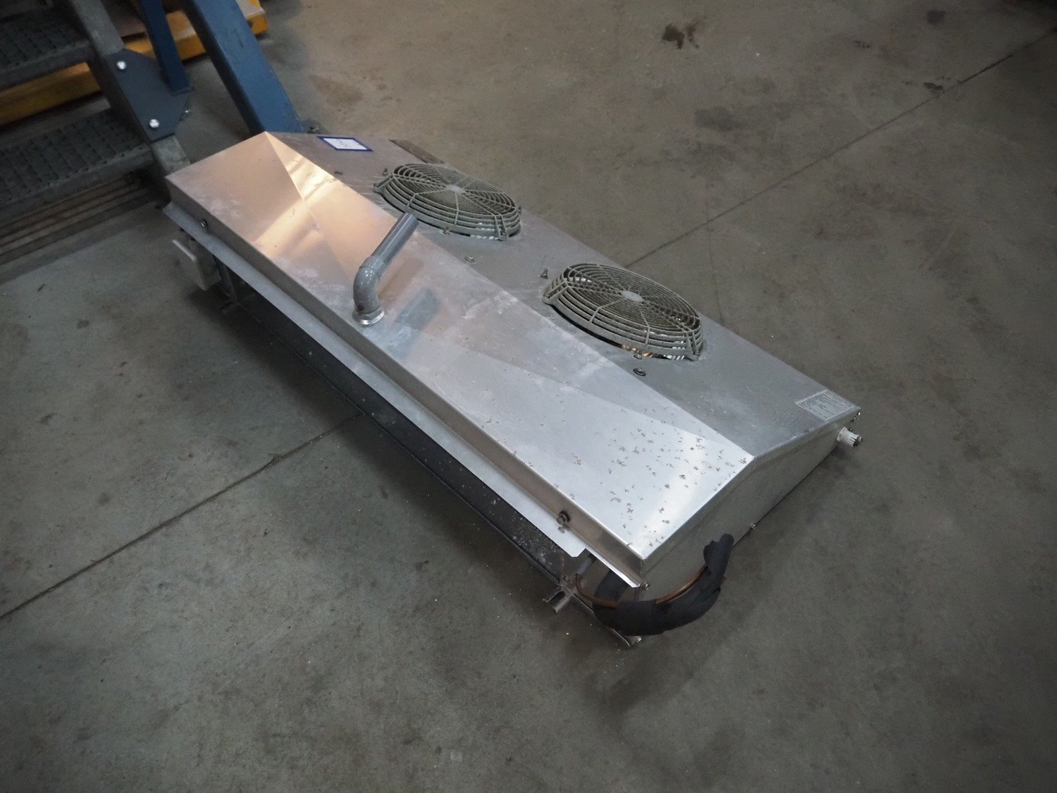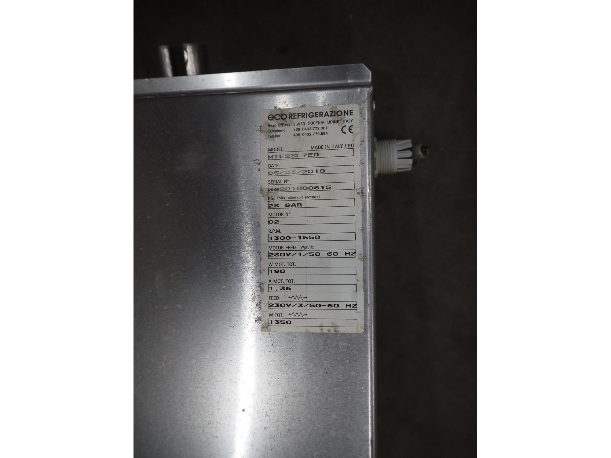 ECO Refrigerazione evaporator, model: MTE23L7ED, serial number: 8G201000615, year of construction: 05/03/2010, 230 V, 3 Ph, 50-60 Hz, 1350 W, 1300-1550 rpm, max pressure: 28 bar, dimensions: 1190 mm x 570 mm x 250 mm.
