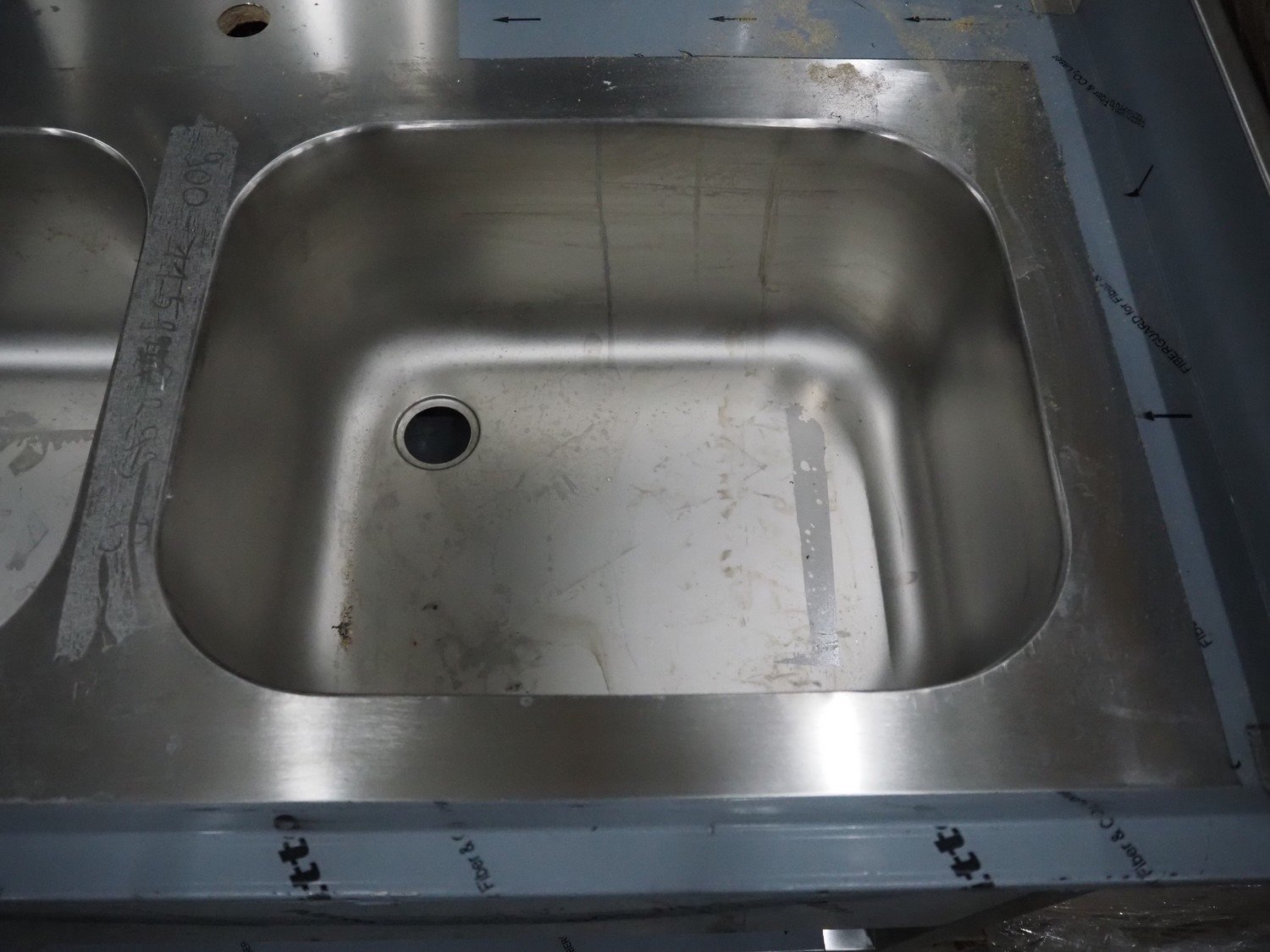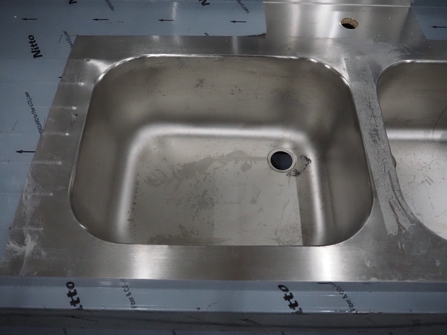 Saro Gastro-Products GmbH s/s double sink, dimensions: 2020 mm x 710 mm x 950 mm.