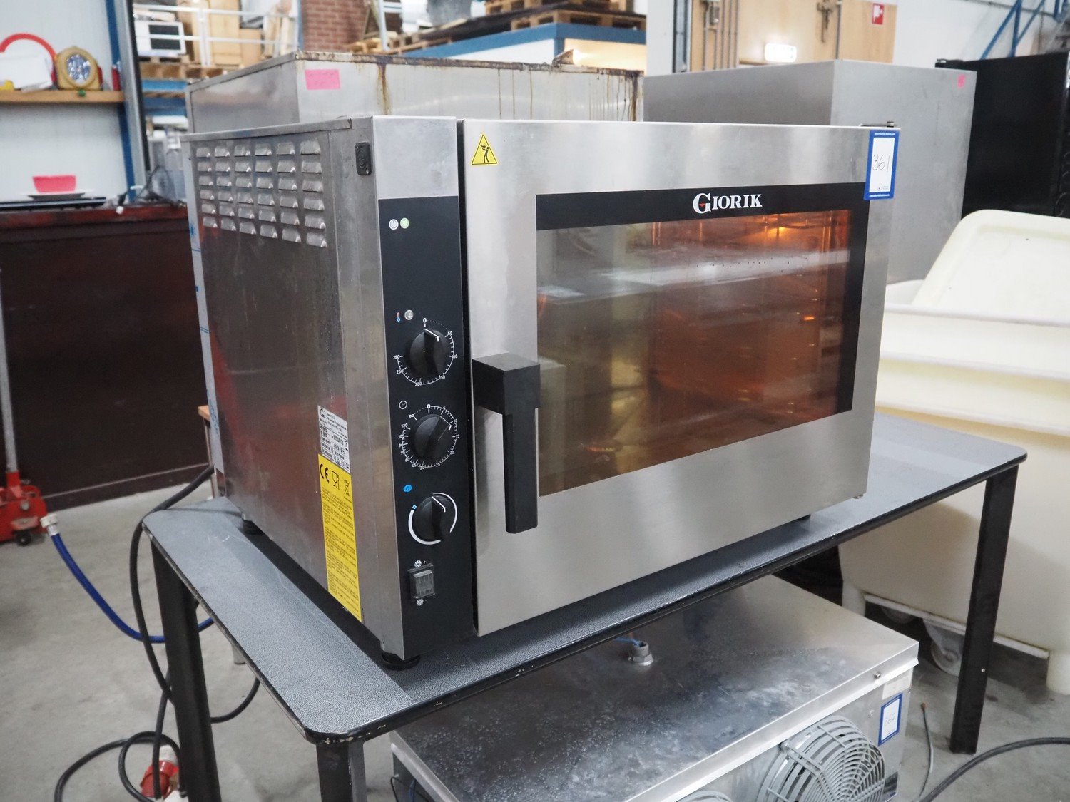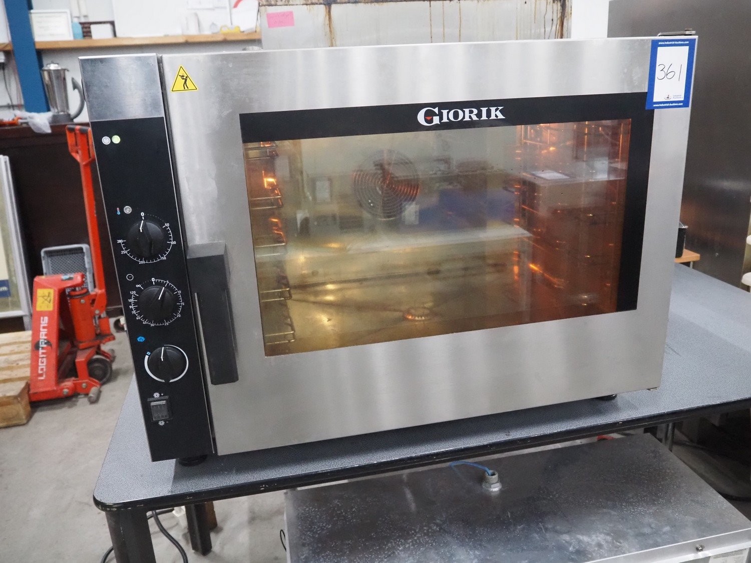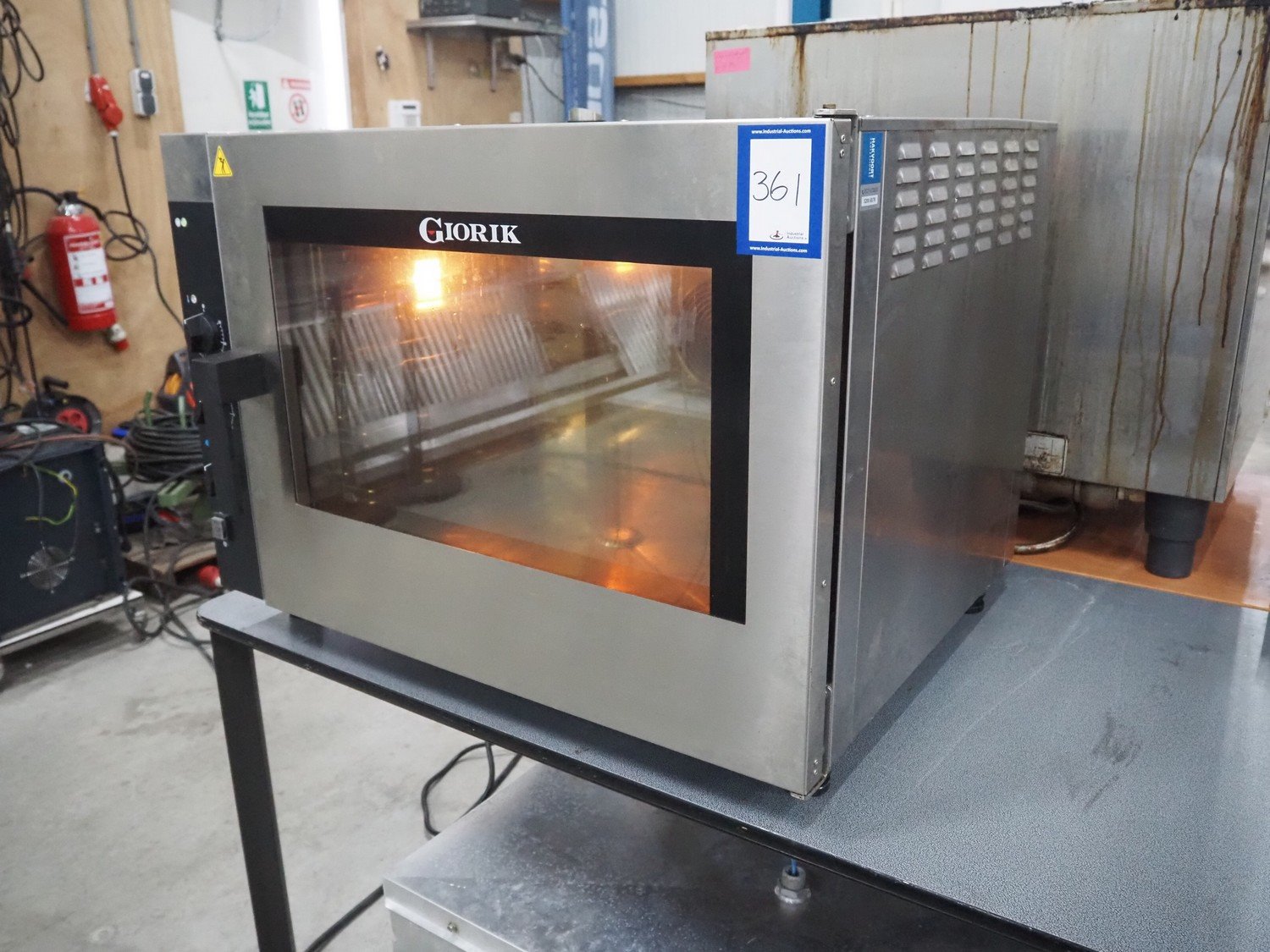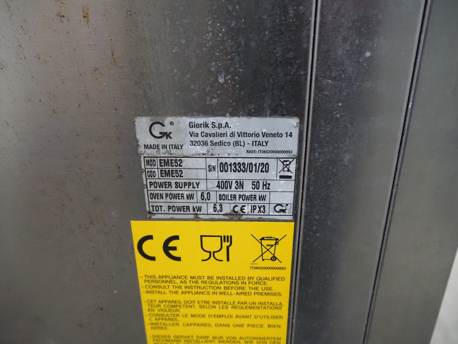 Giorik S.p.A. combi steamer, model: EME52, serial number: 001333/01/20, 400 V, 3 Ph, 50 Hz, 6.3 kW, 5 floors, floor dimensions: (5x) 600 mm x 380 mm, total dimensions: 870 mm x 740 mm x 650 mm.