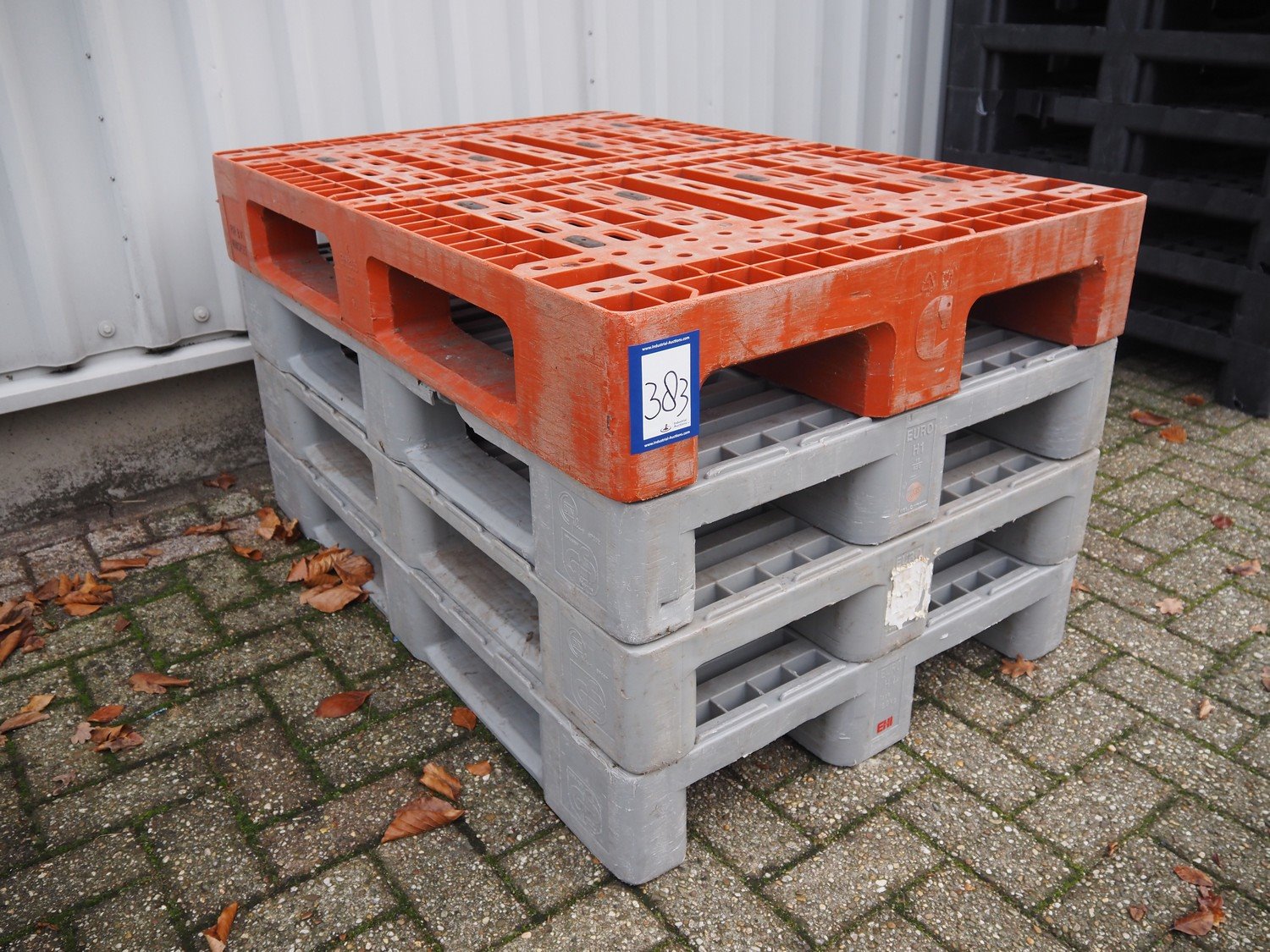 4 plastic EURO H1-pallets, dimensions: (4x) 1200 mm x 800 mm x 180 mm.