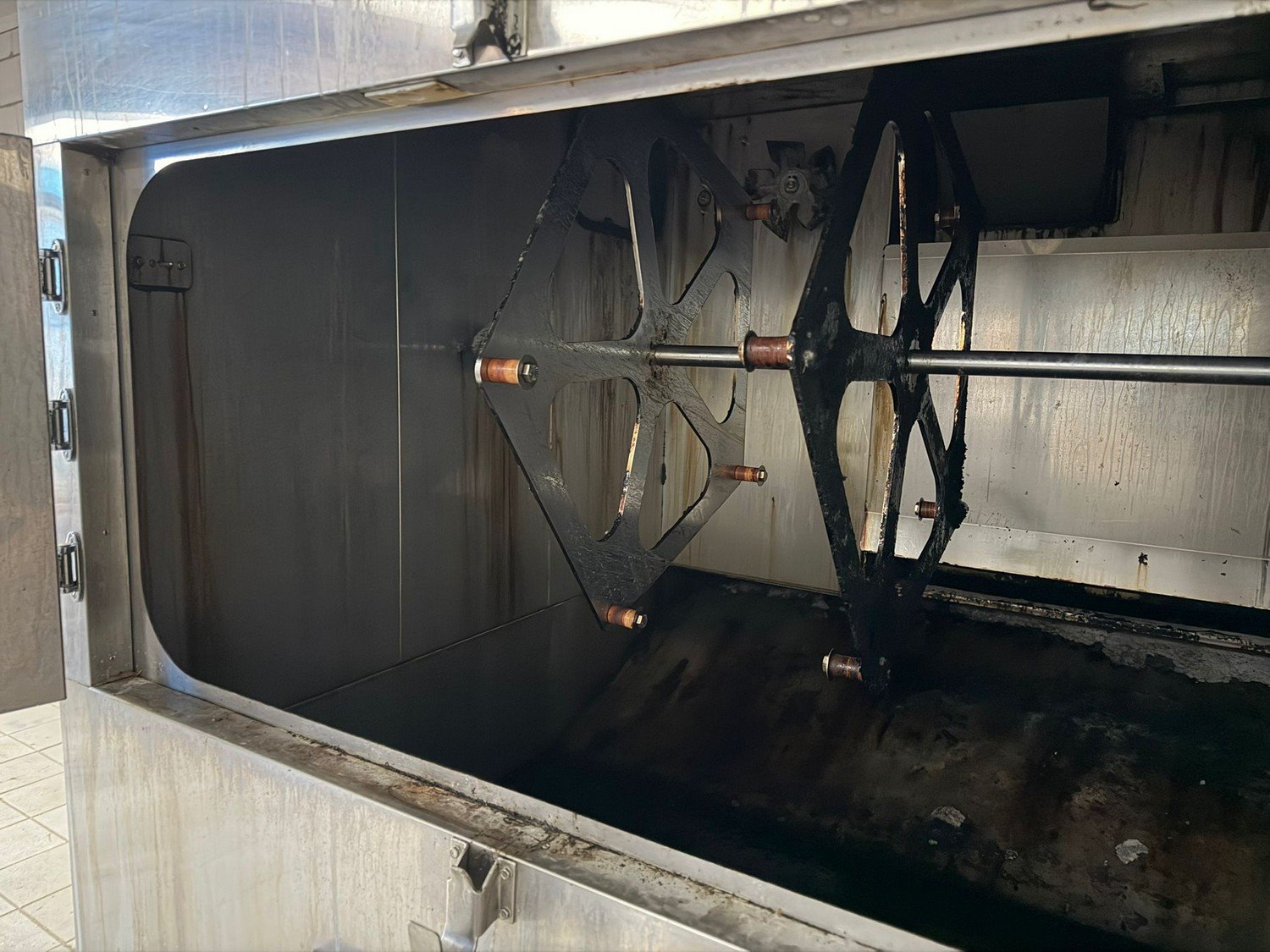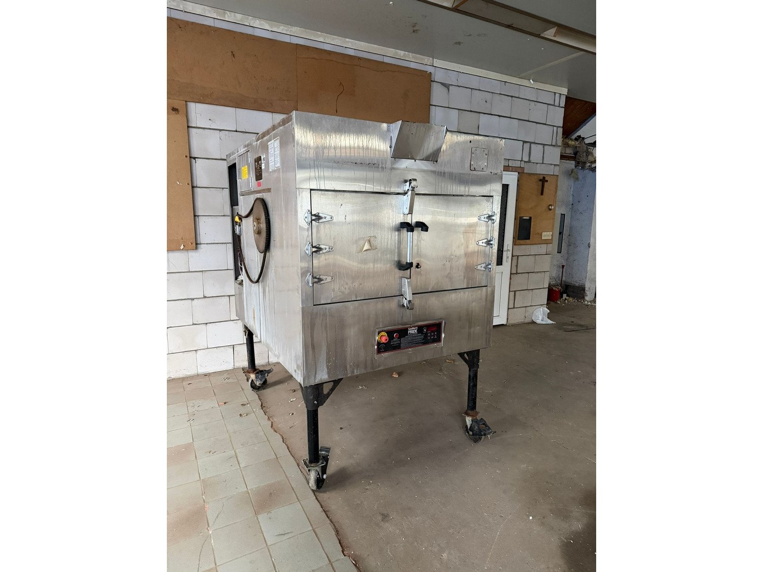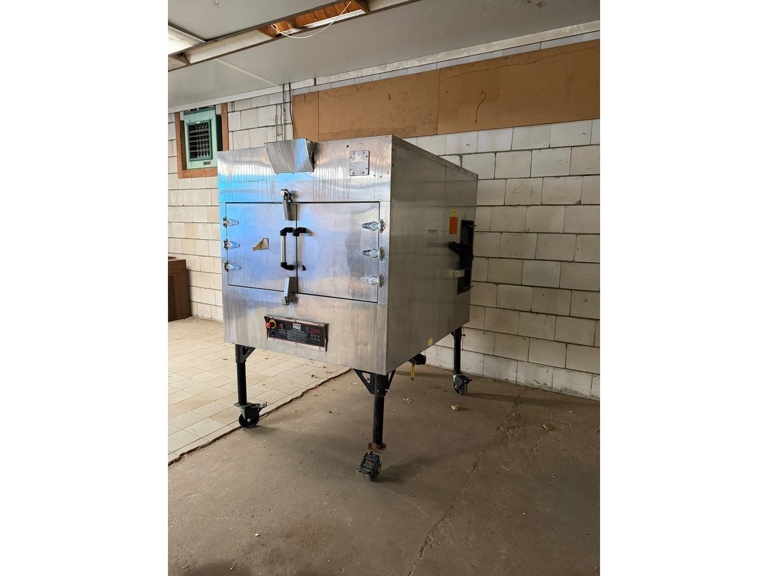Southern Pride rotisserie smoker, model: SPK-500, serial number: K5001042FU, year of construction: 8/2013, 230 V, 1 Ph, 60 Hz, 5 A, gas heated, dimensions: 1500 mm x 1850 mm x 2000 mm. Incomplete.