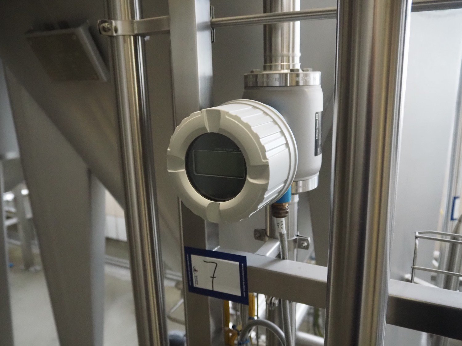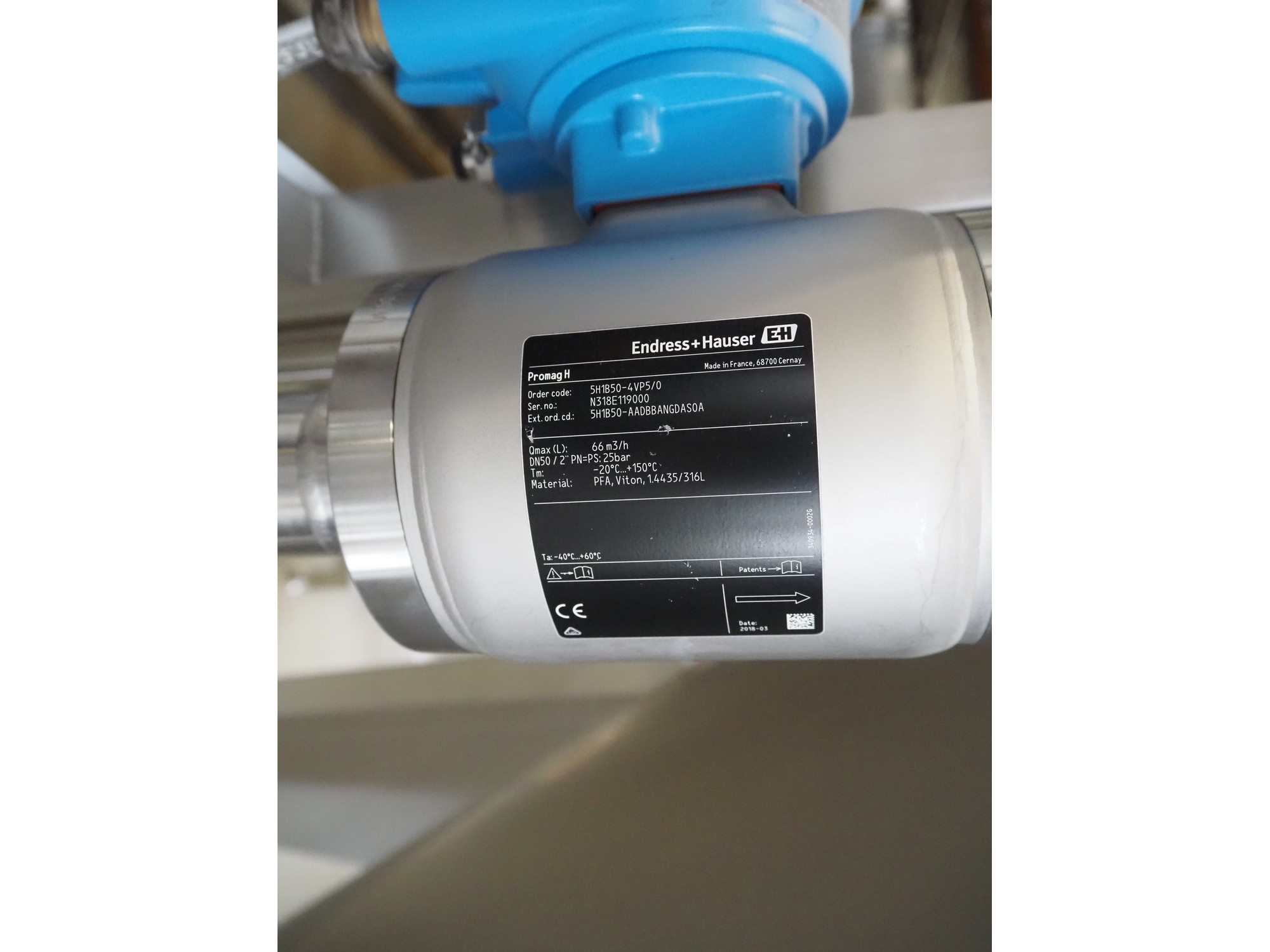 S/s skid with manifold, consisting of: 7 Kieselmann valves and Endress+Hauser flow meter, type: Promag H, serial number: N318E119000, dimensions: 1500 mm x 490 mm x 1700 mm.