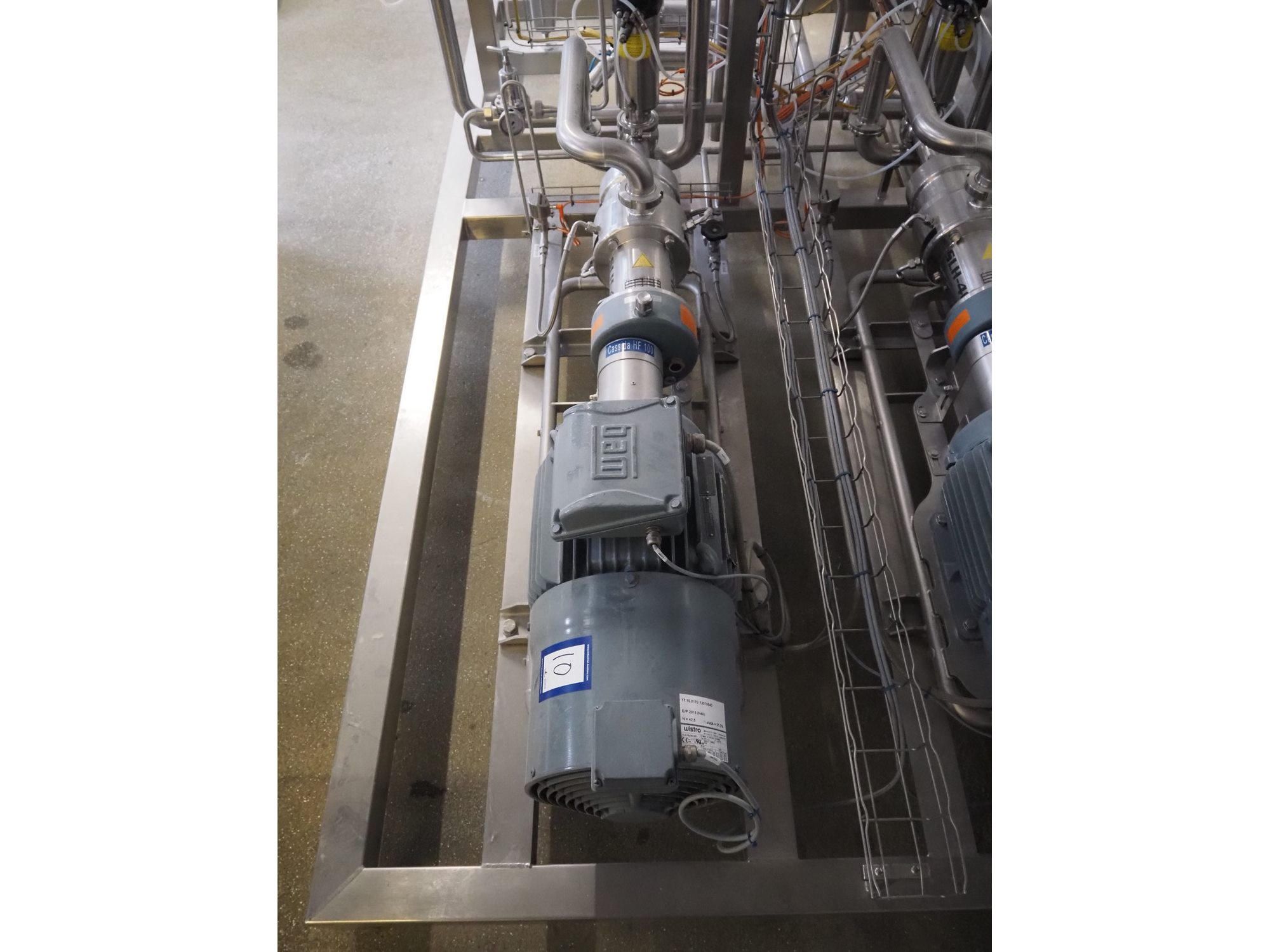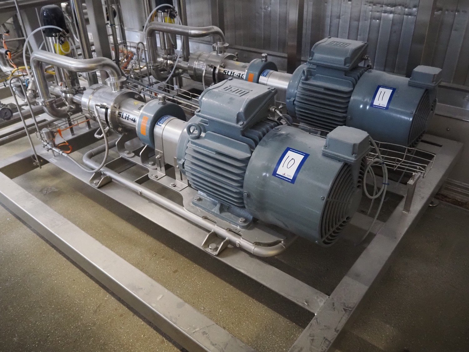 Bornemann hygienic twin screw pump, type: SLH-4G-2050, serial number: 121901, year of construction: 2018, 0.90 kW, capacity: 2 m³/h, pressure difference: 5 bar, 272 rpm, viscosity: 4000 cst, dimensions: 1700 mm x 500 mm x 500 mm.