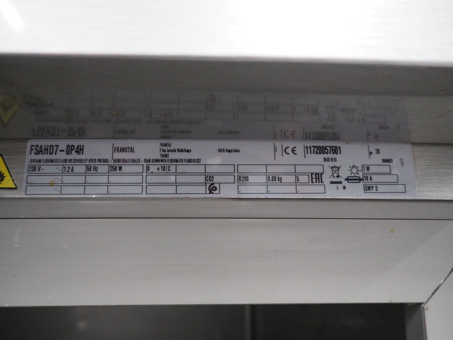 Franstal refrigerator, type: FSAHD7-OP4H, serial number: 11720057601, 230 V, 50 Hz, 1.2 A, 250 W, 4 floors, dimensions each floor: 650 mm x 520 mm, total dimensions: 720 mm x 800 mm x 2000 mm.