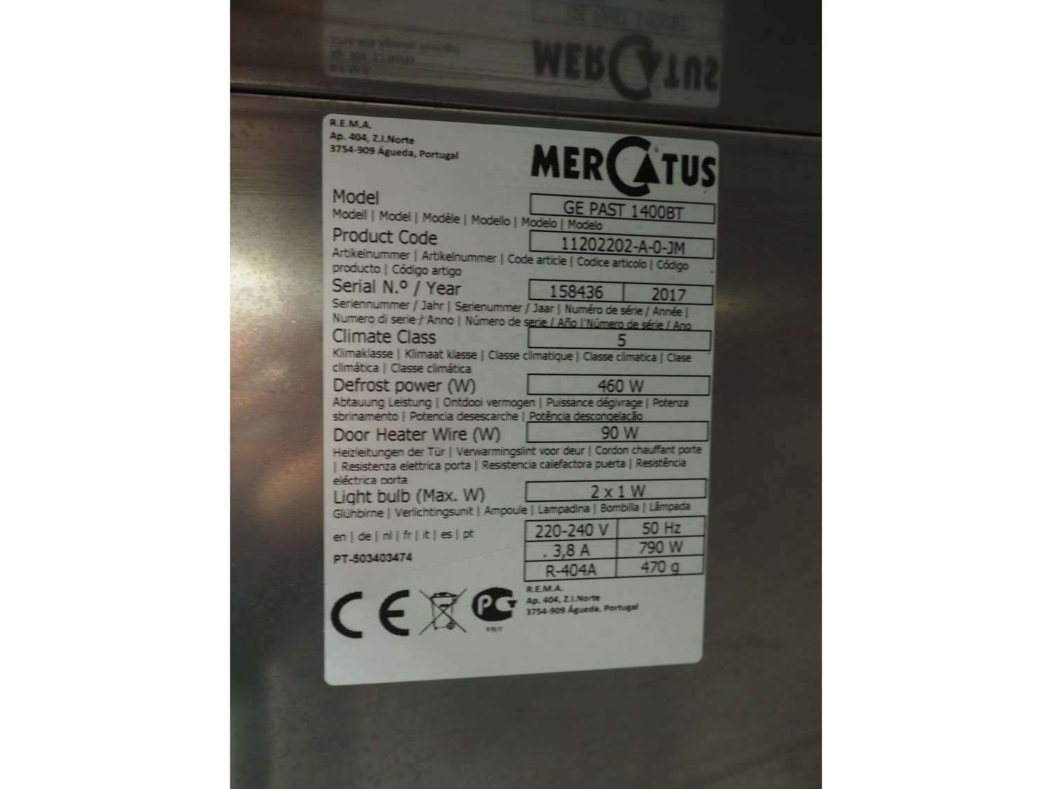 Mercatus refrigerator, model: GE PAST 1400BT, serial number: 158436, year of construction: 2017, 220-240 V, 50 Hz, 3.8 A, 790 W, refrigerant: R-404A, (2x) 17 floors, dimensions each floor: 600 mm x 400 mm, total dimensions: 1440 mm x 850 mm x 2050 mm.