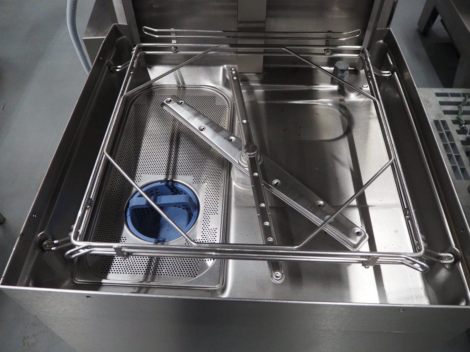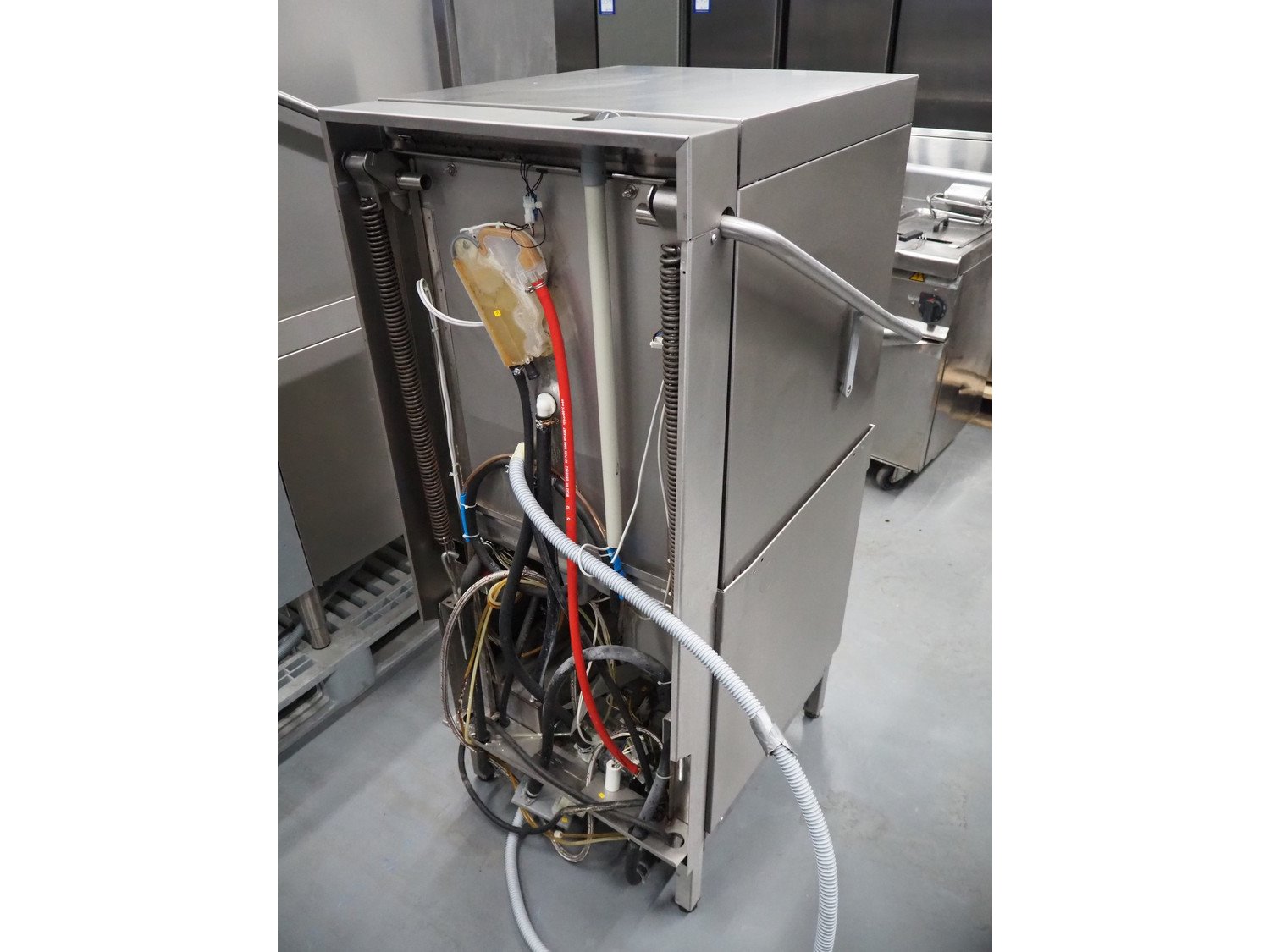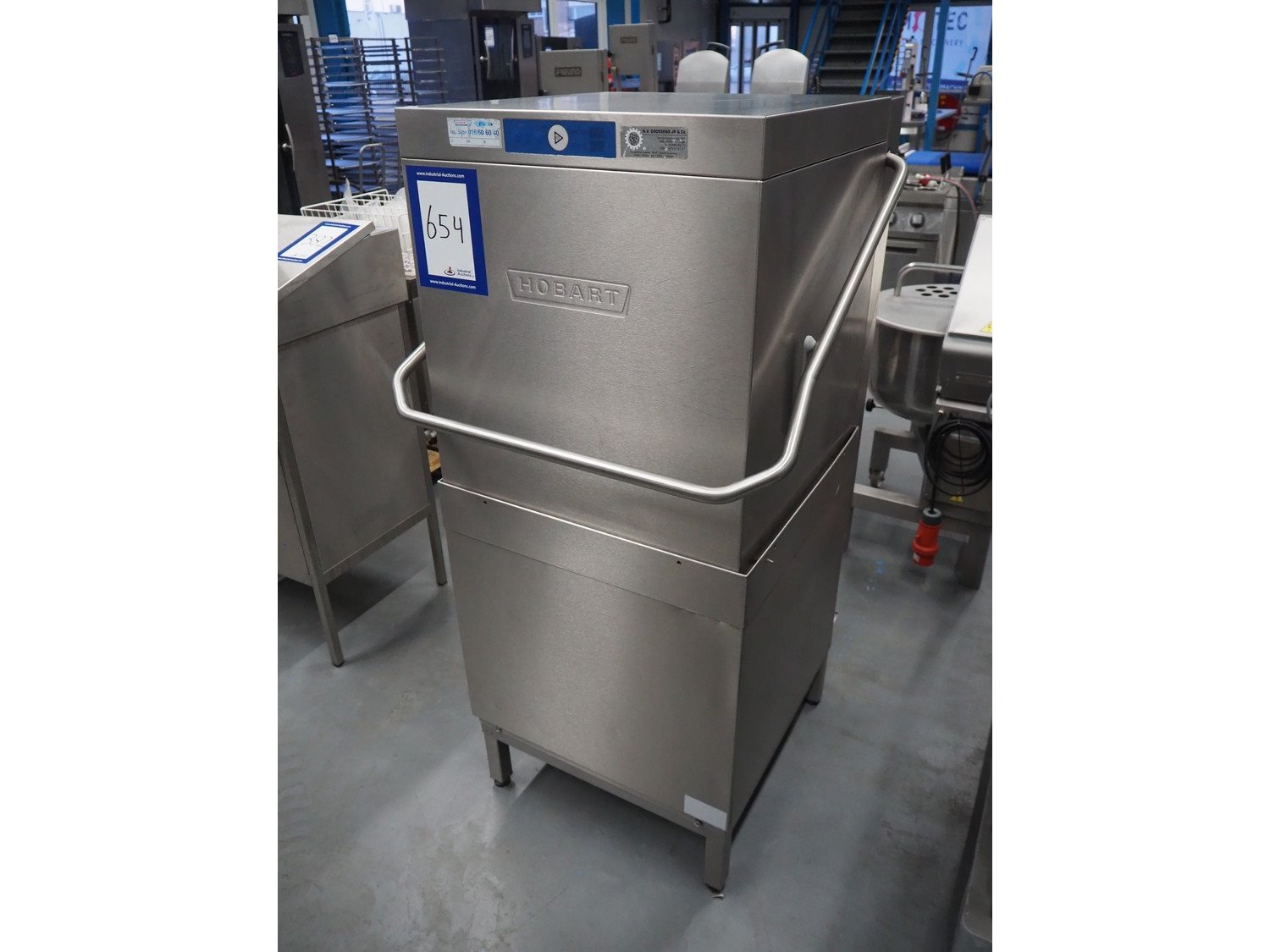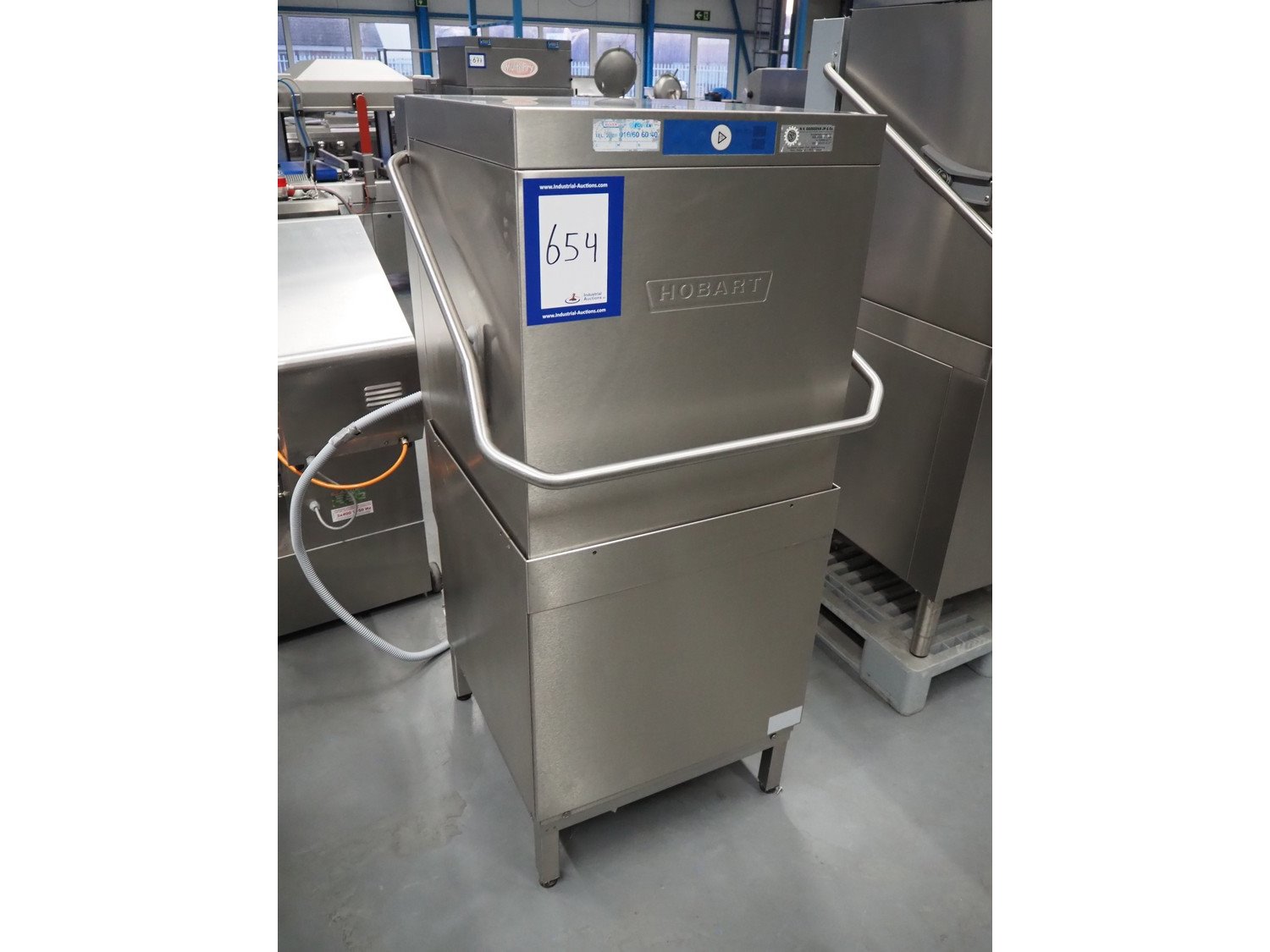 Hobart dishwasher, crate dimensions: 490 mm x 490 mm, total dimensions: 900 mm x 760 mm x 1500 mm. Missing hood.